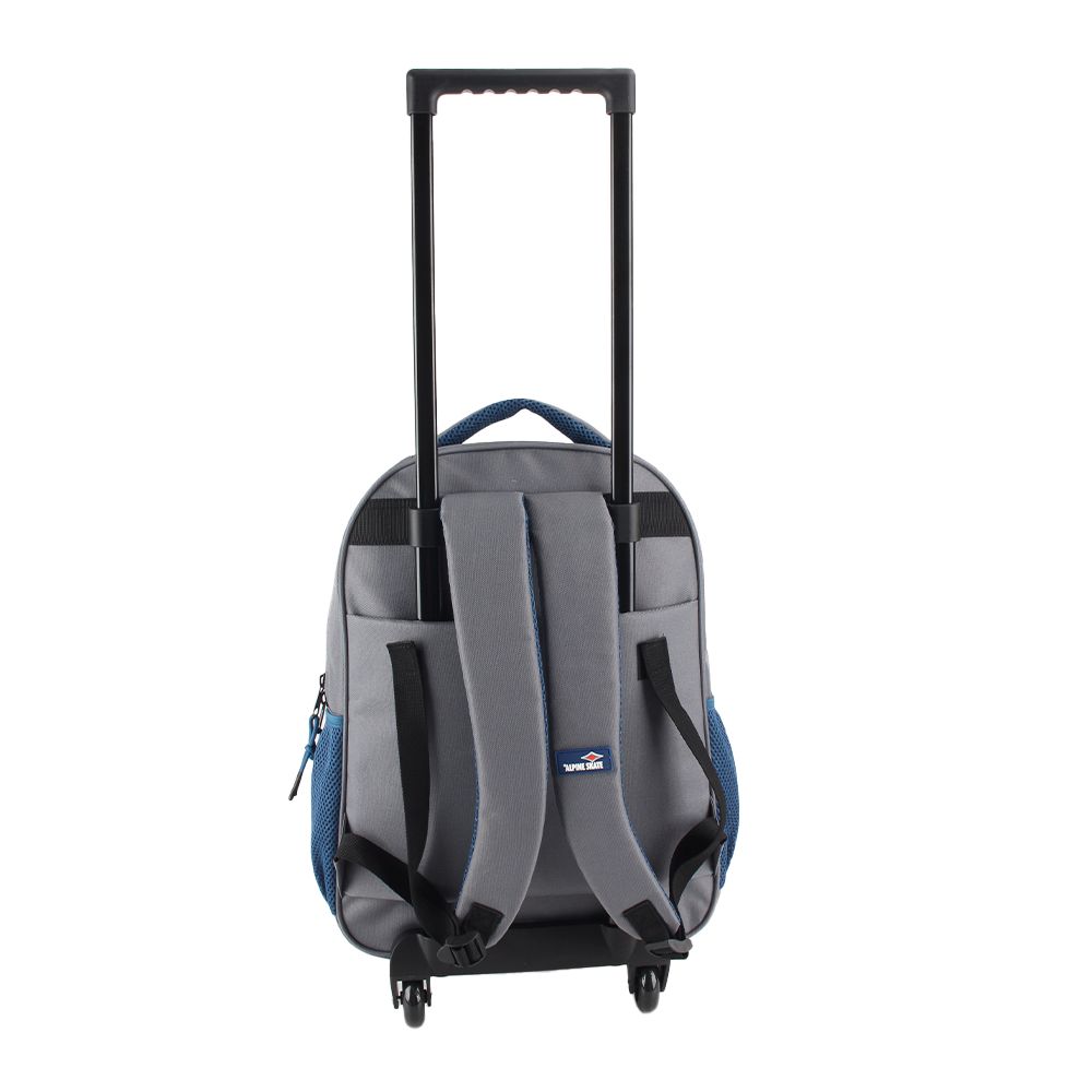 Descripción: - Mochila con carro Extensible. - Amplio compartimiento Principal. - Bolsillo Frontal con Cierre. - Dos Ruedas de Silicona Reforzadas. - Bolsillos Laterales porta Botella. - Material Reforzado Anti desgarre. - Tiras Acolchadas Air Mesh. - Asa superior Reforzada. - Manija regulable en Altura para usar como Carro. - Base Rígida. - Interior Forrado. - Modelo Ultra Liviano y fácil de transportar. - Tiras acolchadas para el cuidado los hombros. - Confeccionado en Tela reforzada Anti Desgarre. - Medidas: 45cm x 26cm x 17cm.