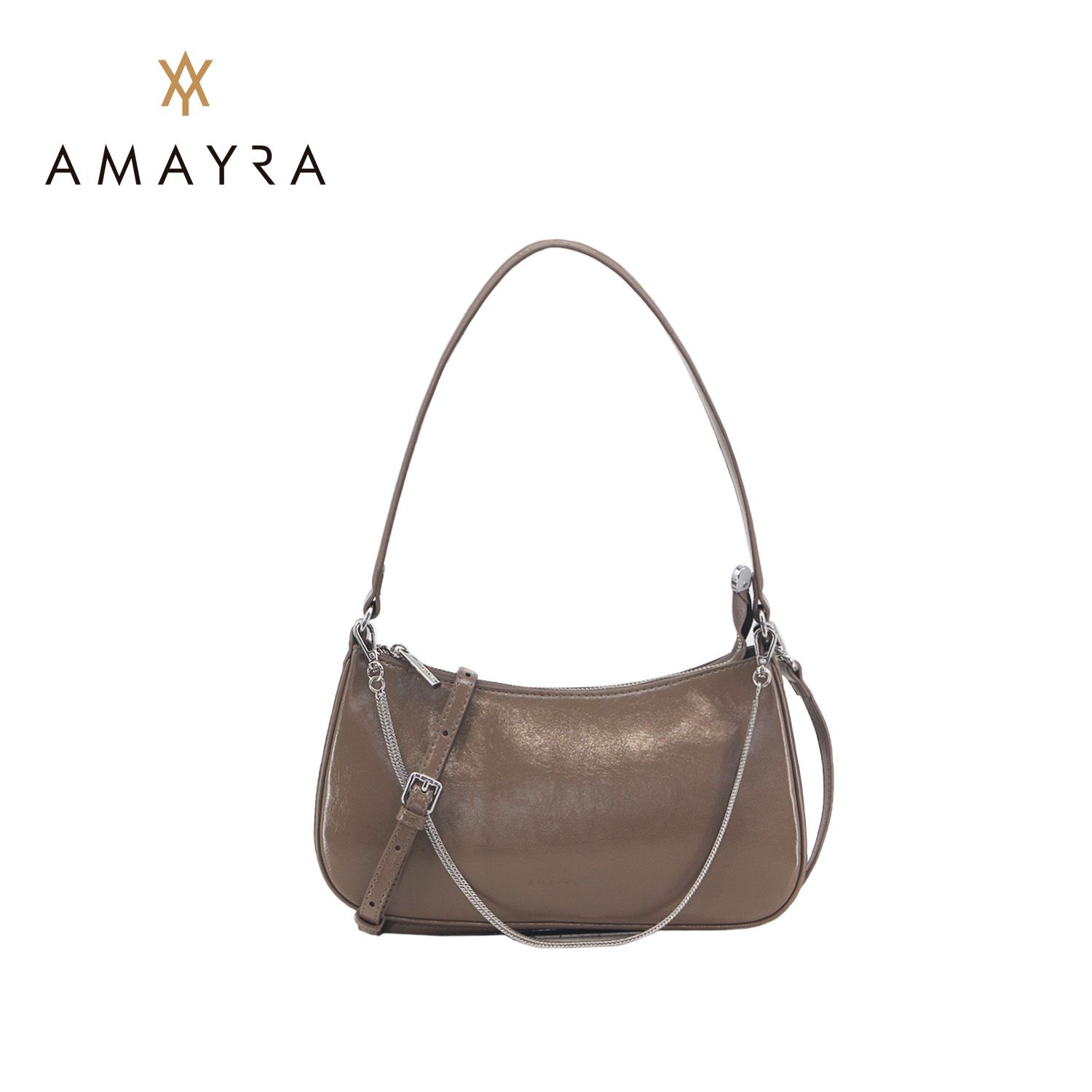 Descripción: Cartera de estilo baguette, ideal para todos los momentos del día y trasladar lo esencial. Material: Cuero sintetico PU. Presenta compartimiento principal con cierre. Posee una correa desmontable de cadena. Medidas: 29 cm. de largo, 15 cm. de alto y 6 cm. de profundidad.