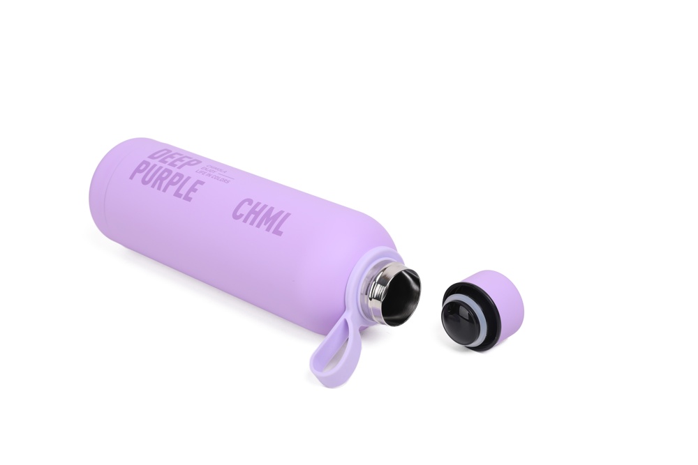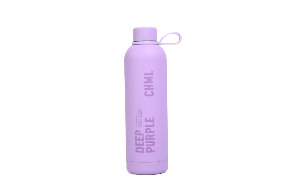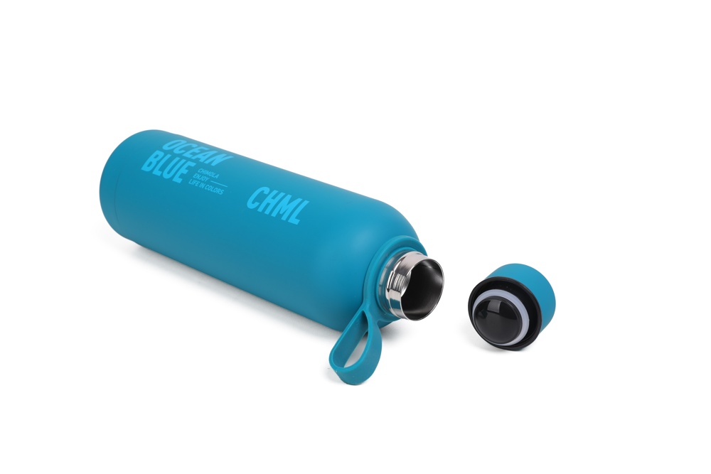 Tiene acabado soft-touch, tapa a rosca y manija flexible para que sea cómoda de llevar y fácil de usar.
