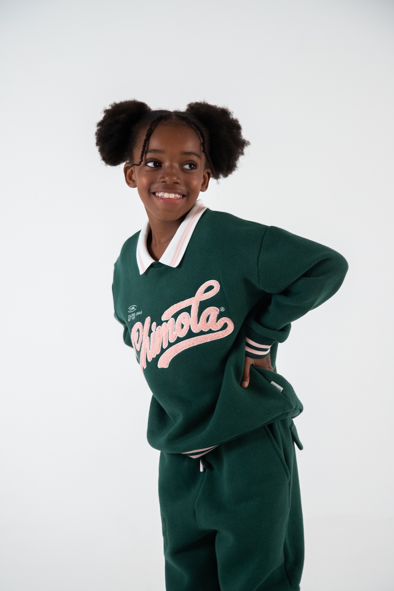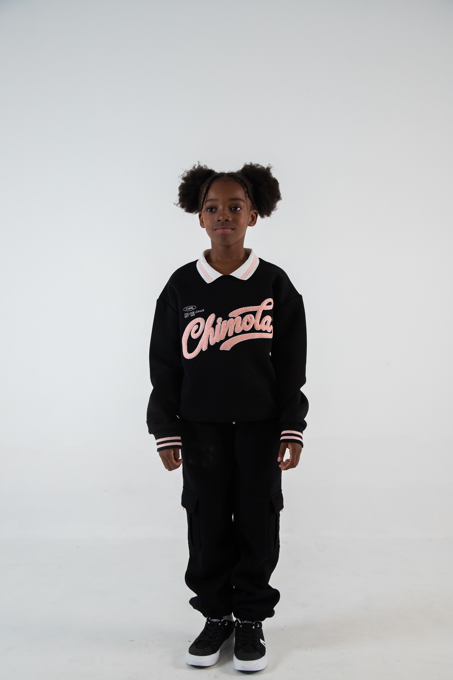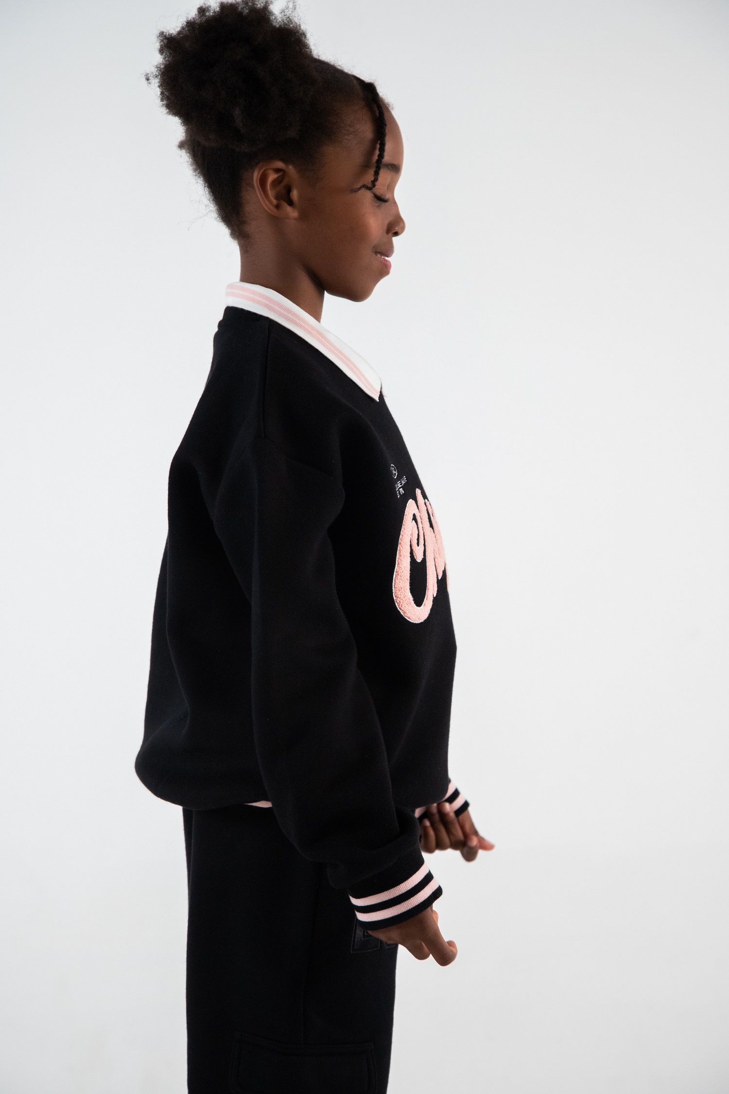 Descripción: El Universo Preppy, ahora disponible para vos! El "Buzo Grace" cuenta con un cuello estilo chomba, diseño frontal con textura peluche y elástico en sus puños y cintura. Composición 100% algodón. Lo encontrás en verde, negro y rosa. TABLA DE TALLE: A) Largo Delantero; B) Ancho de Hombros; C) Largo de Manga. *T4: A) 45, B) 39, C) 35,5 *T6: A) 47, B) 41, C) 37,5 *T8: A) 50,5, B) 42,5 , C) 41,5 *T10: A) 54, B) 44, C) 45,5 *T12: A) 57,5 , B) 45,5, C) 49,5 *T14:A) 61, B) 47, C) 53,5