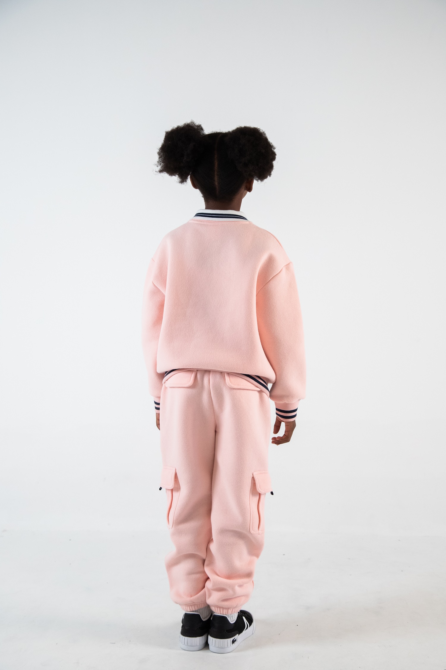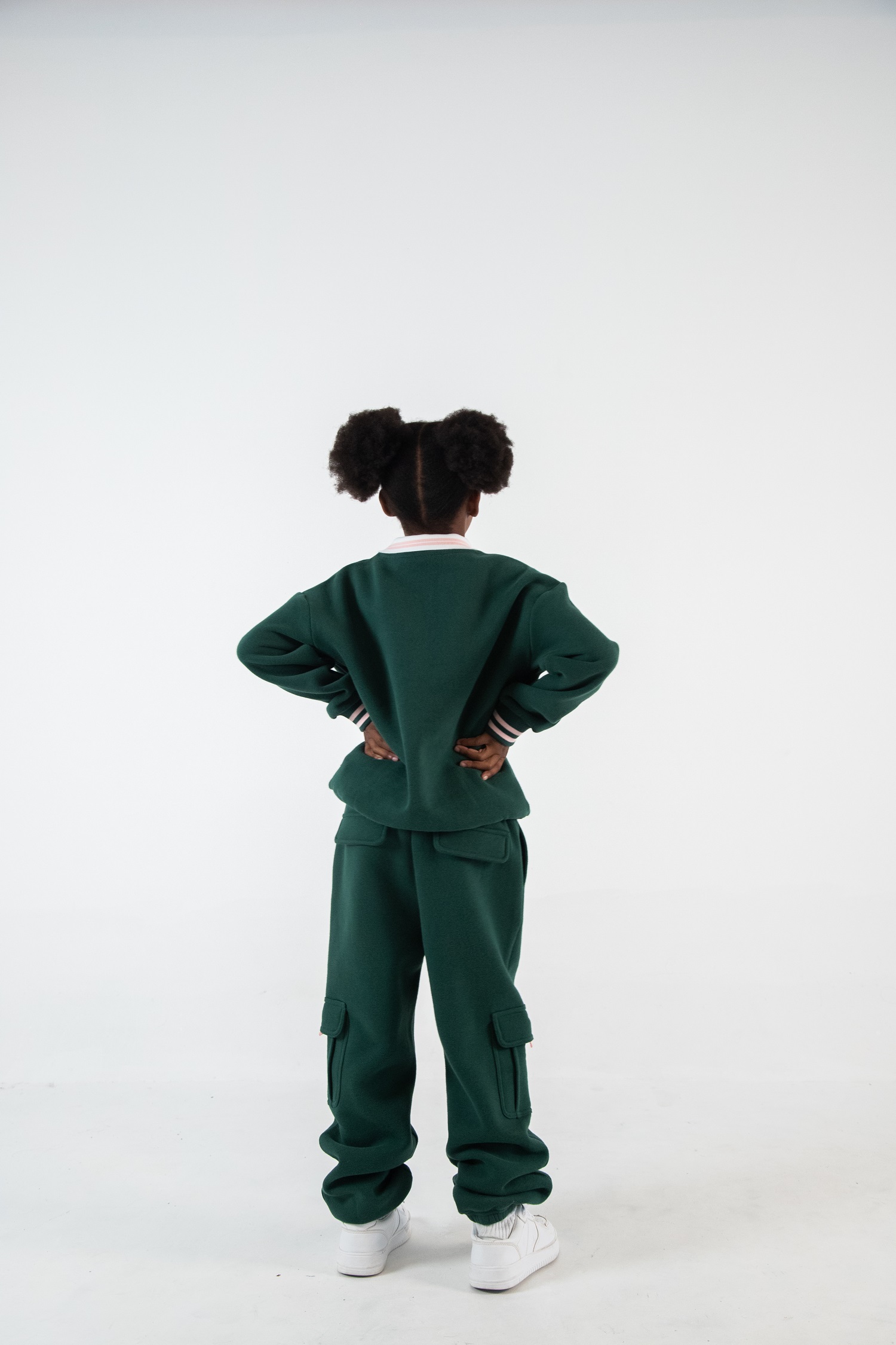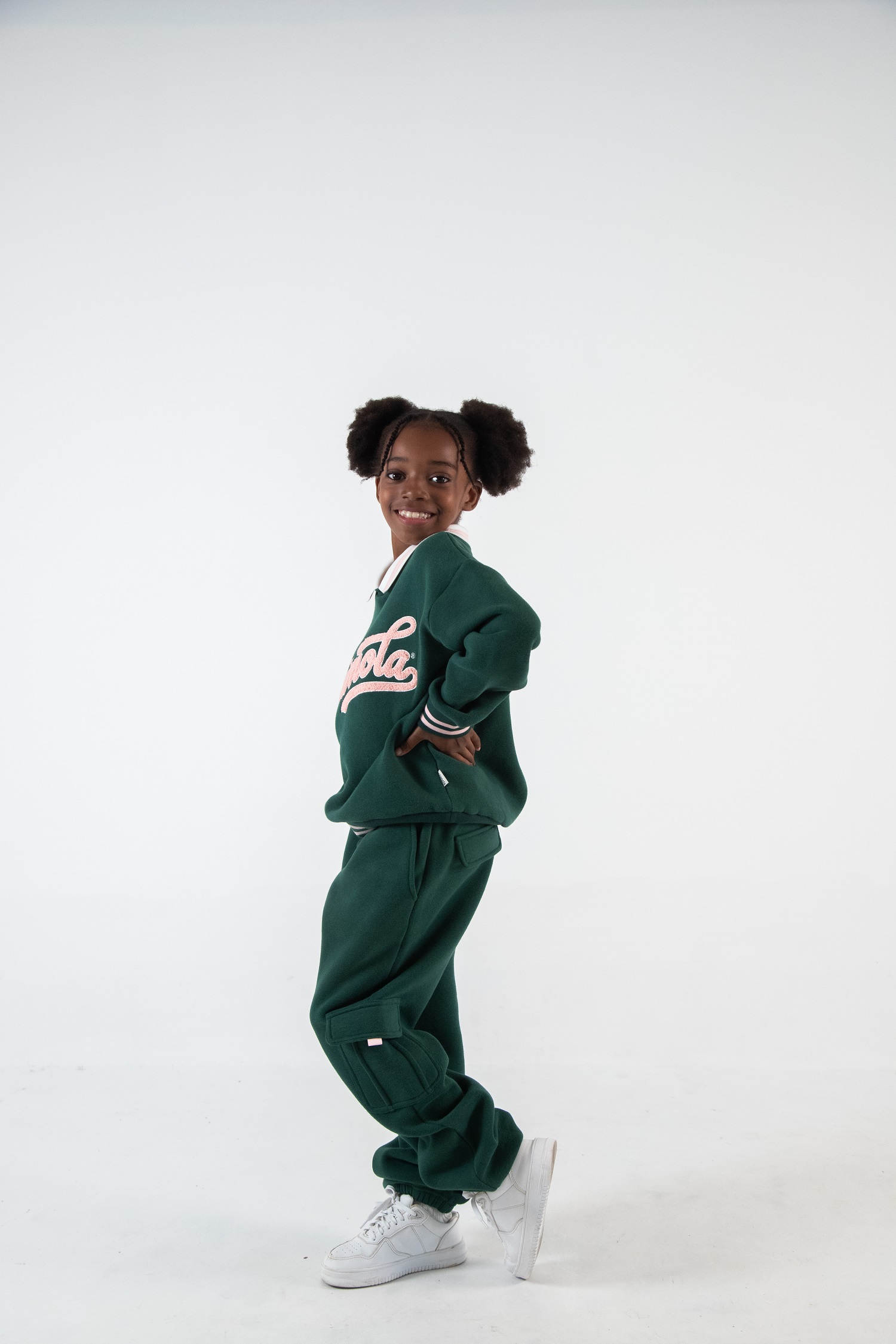 Descripción: El Universo Preppy, ahora disponible para vos! El "Buzo Grace" cuenta con un cuello estilo chomba, diseño frontal con textura peluche y elástico en sus puños y cintura. Composición 100% algodón. Lo encontrás en verde, negro y rosa. TABLA DE TALLE: A) Largo Delantero; B) Ancho de Hombros; C) Largo de Manga. *T4: A) 45, B) 39, C) 35,5 *T6: A) 47, B) 41, C) 37,5 *T8: A) 50,5, B) 42,5 , C) 41,5 *T10: A) 54, B) 44, C) 45,5 *T12: A) 57,5 , B) 45,5, C) 49,5 *T14:A) 61, B) 47, C) 53,5