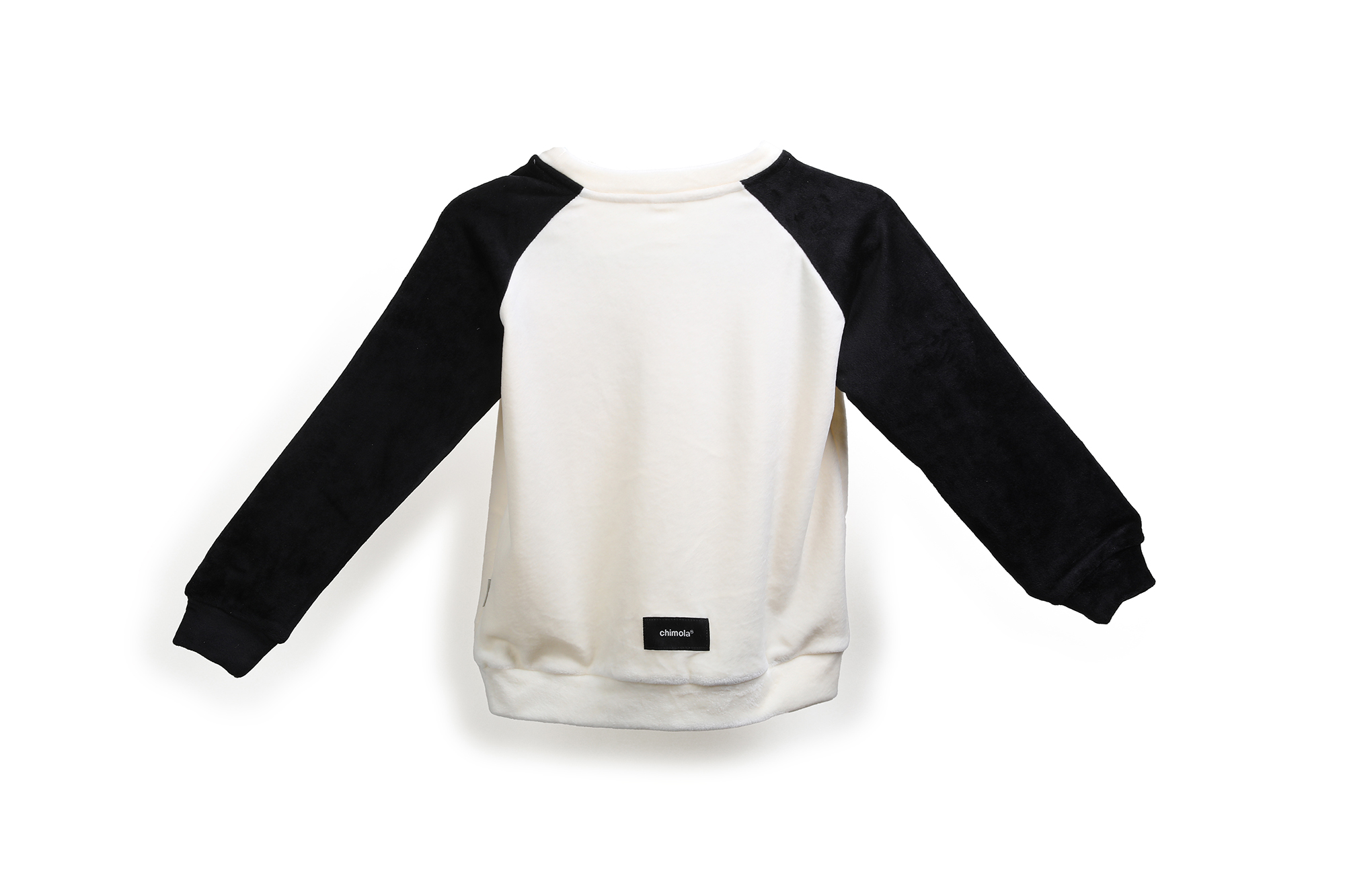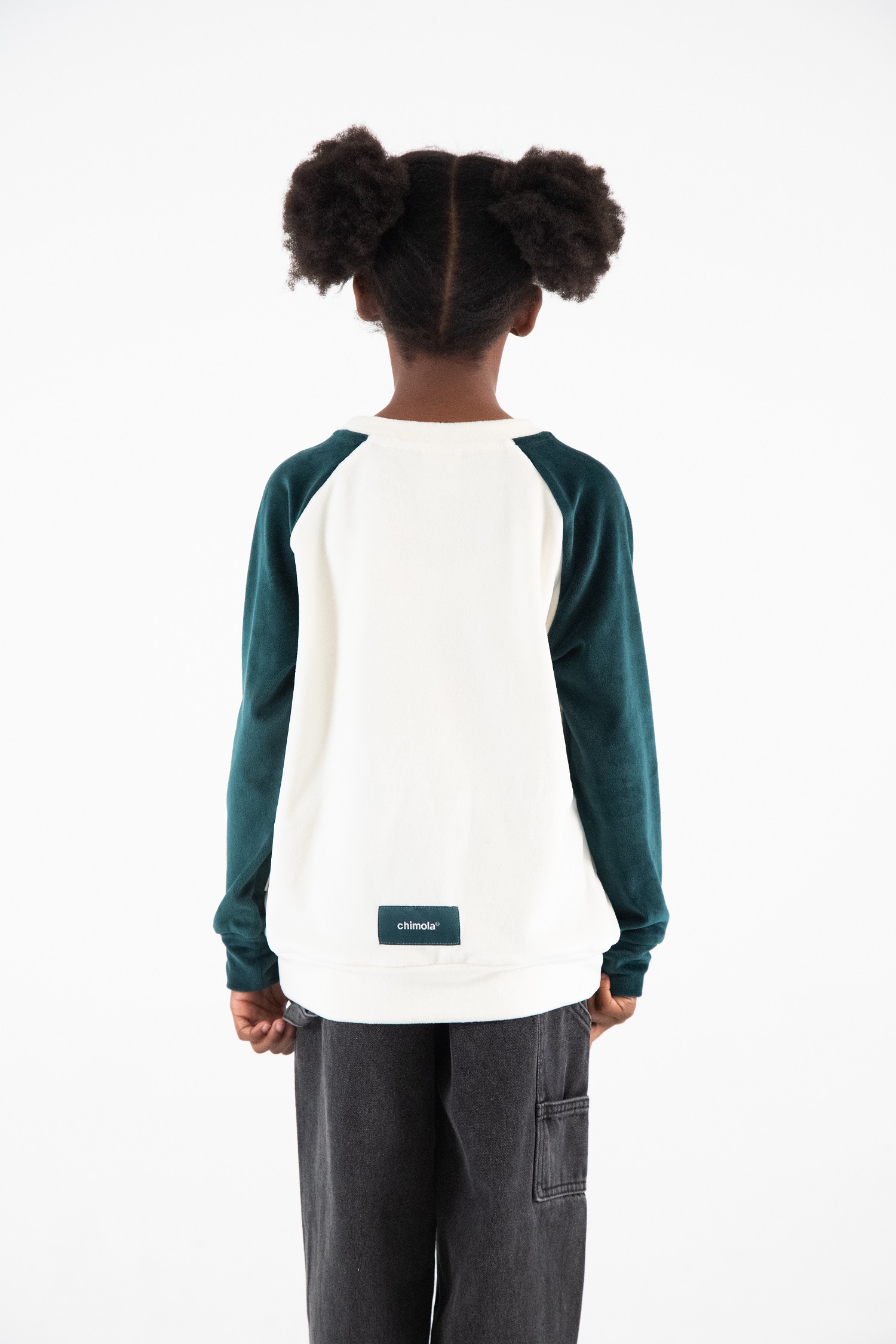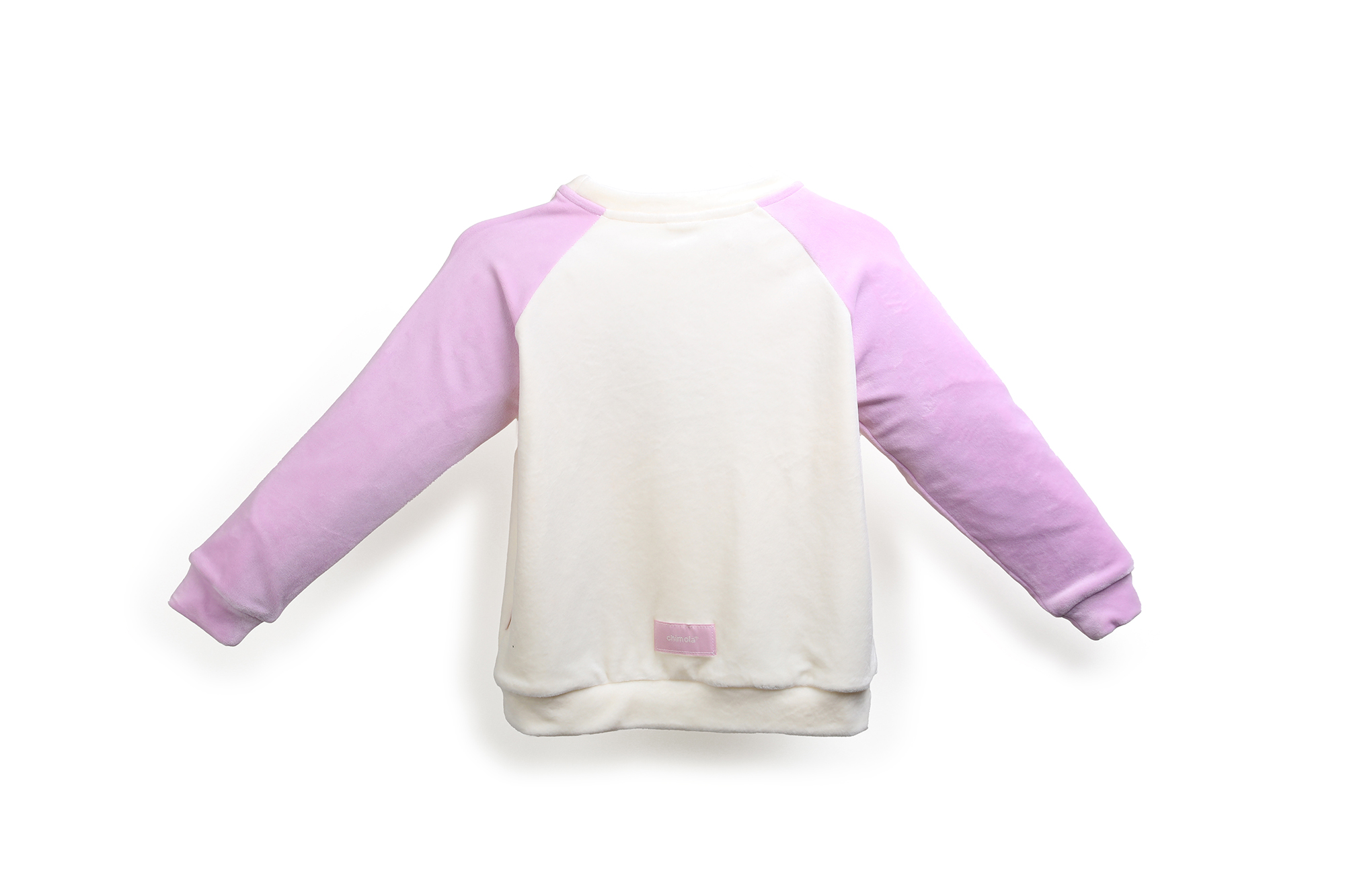 Descripción: "Buzo Plush Kora", con mangas de colores y un tierno bordado delantero. Composición 95% terylene y 5% spandex. Disponible en lila, verde y negro. TABLA DE TALLE: A) Largo Delantero; B) Ancho de Hombros; C) Largo de Manga. *T4: A) 43, C) 46,5 *T6: A) 47, C) 49,5 *T8: A) 50,5 , C) 53,5 *T10: A) 54, C) 57,5 *T12: A) 57,5 , C) 61,5