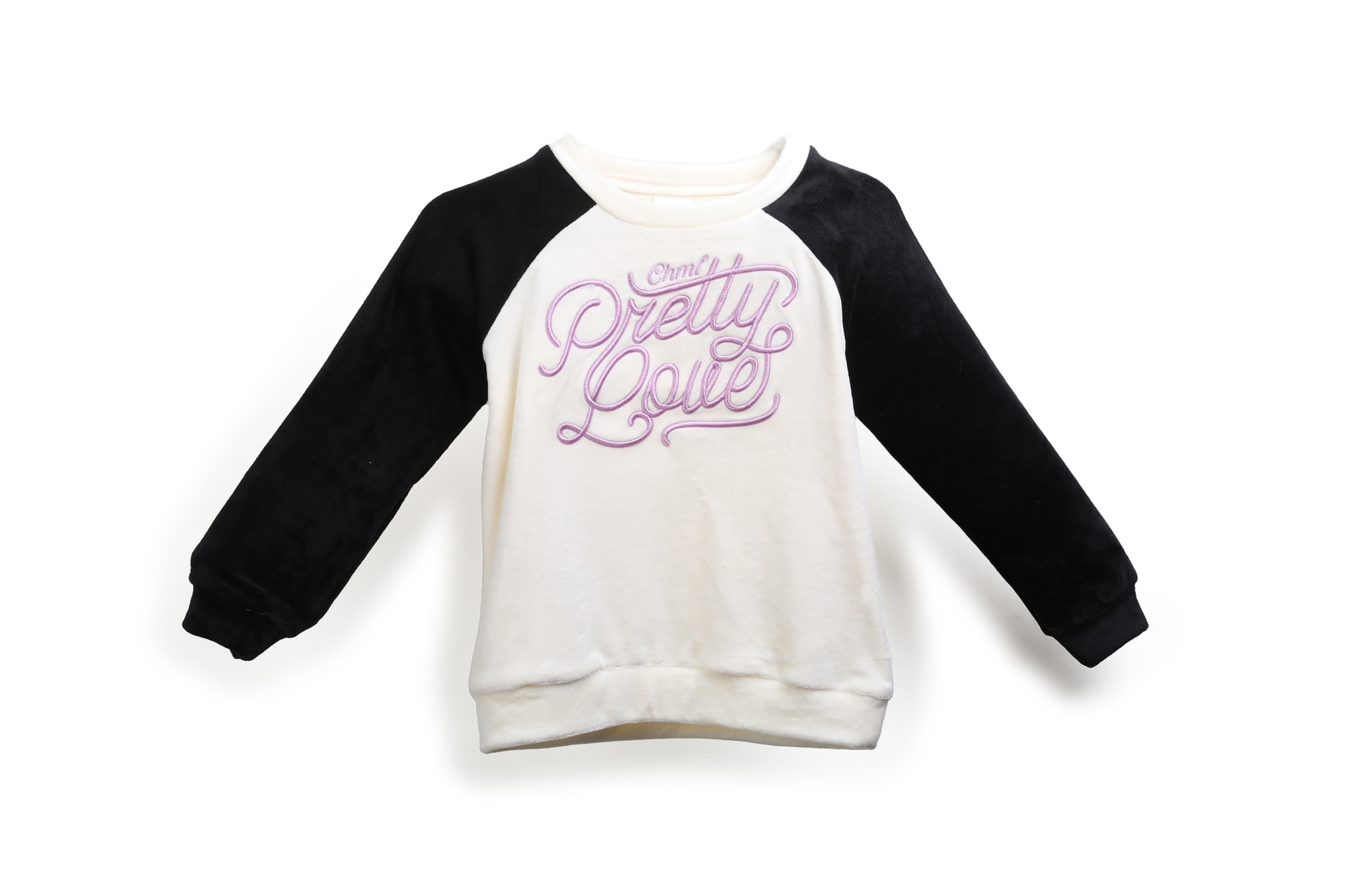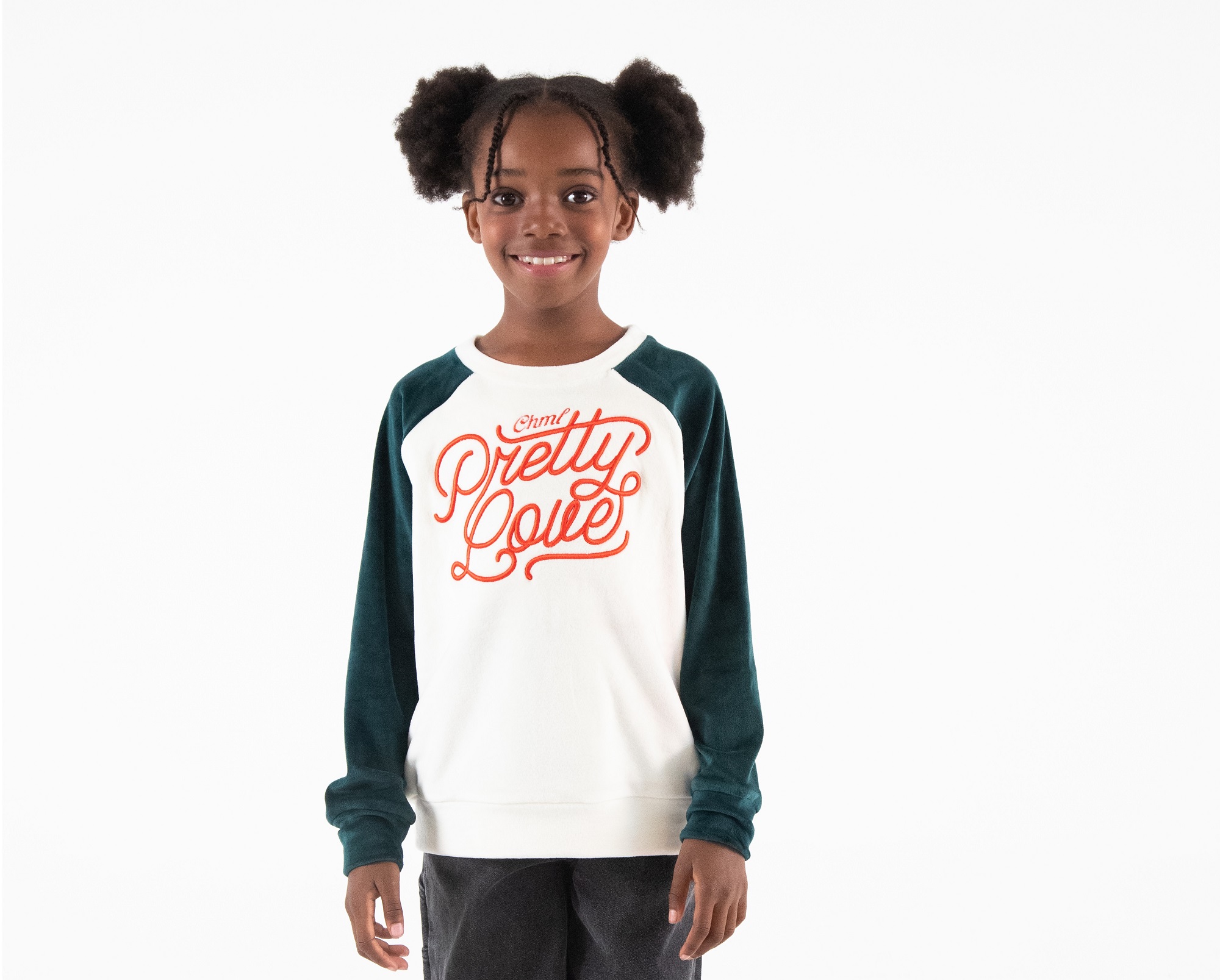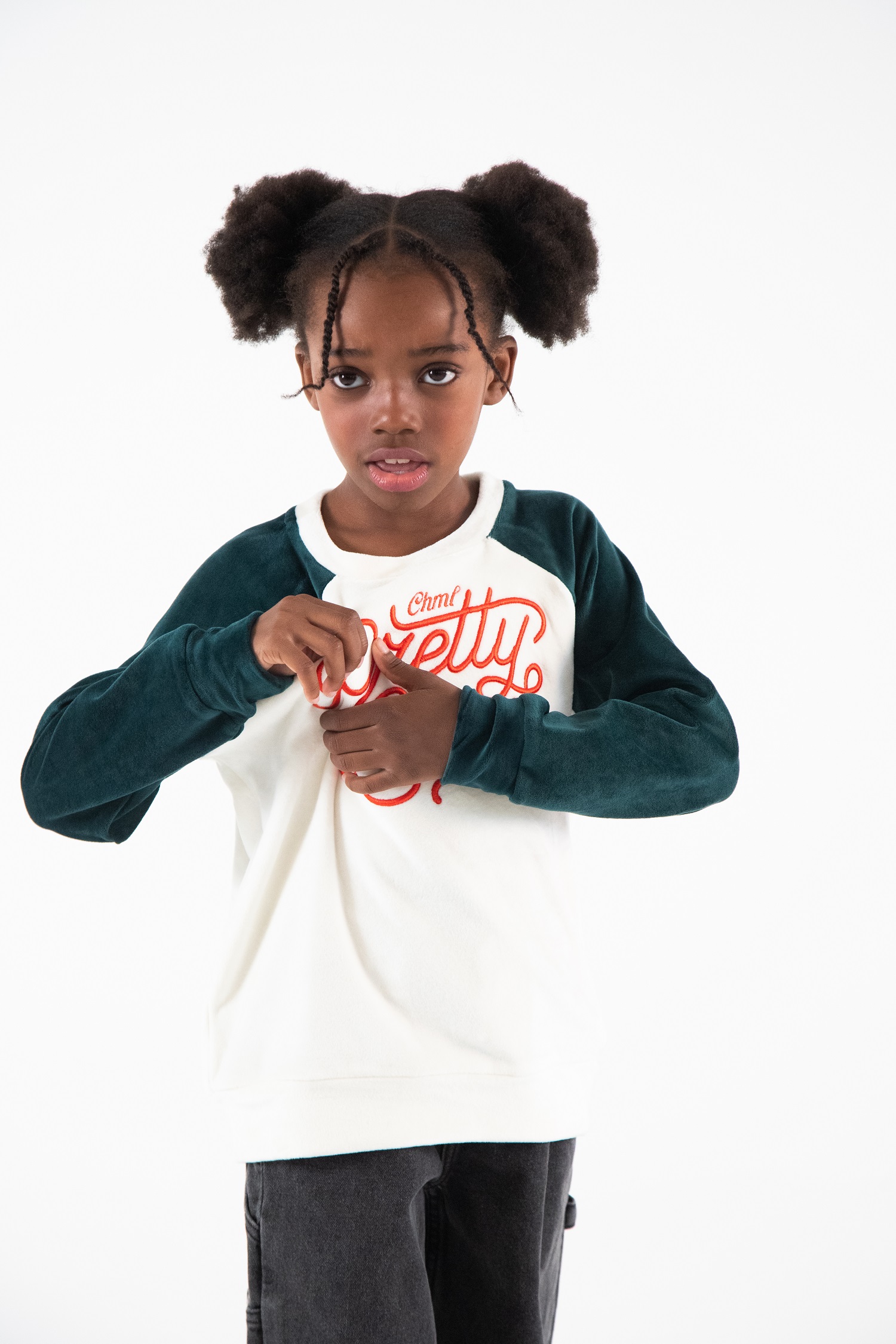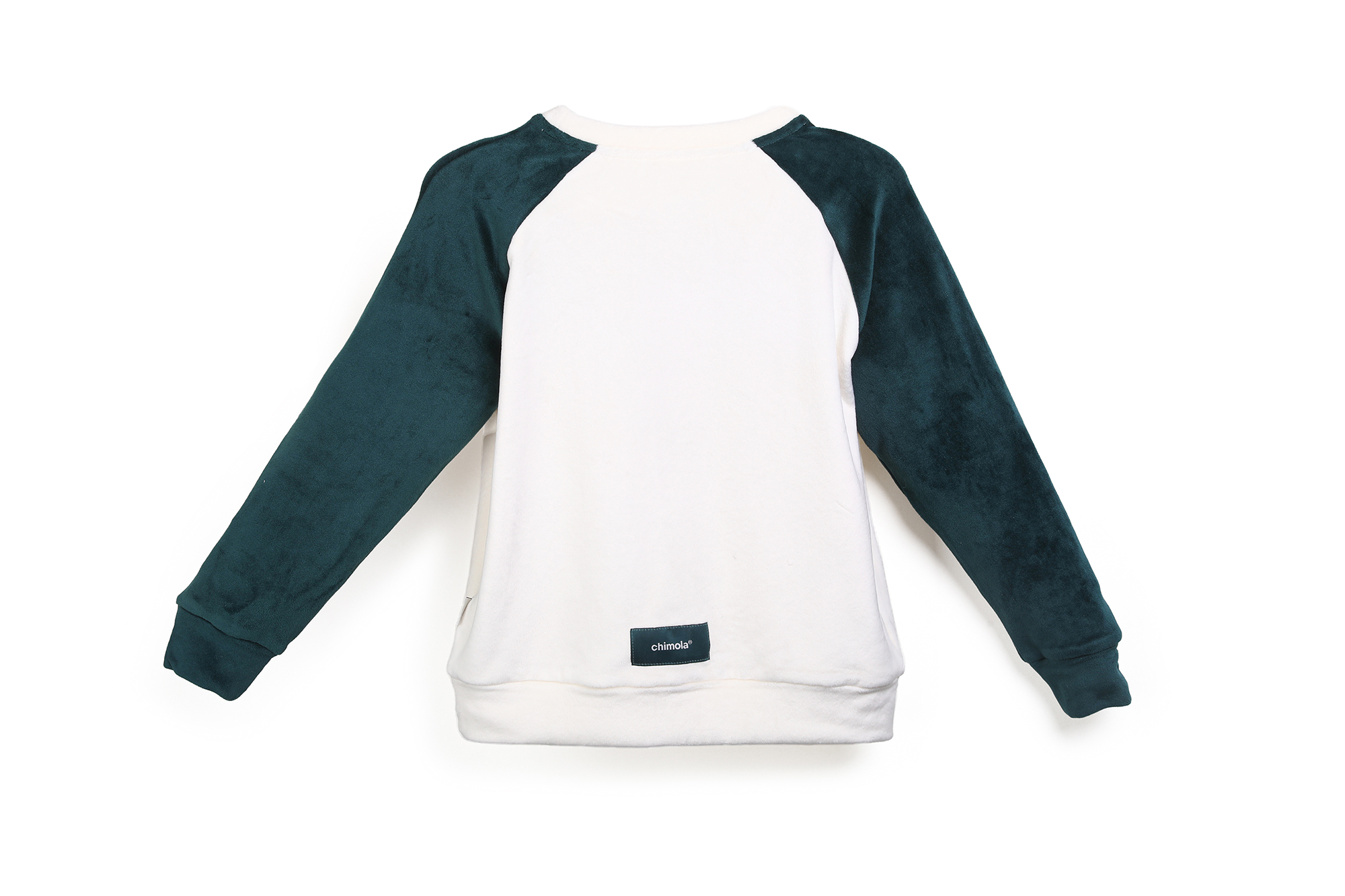 Descripción: "Buzo Plush Kora", con mangas de colores y un tierno bordado delantero. Composición 95% terylene y 5% spandex. Disponible en lila, verde y negro. TABLA DE TALLE: A) Largo Delantero; B) Ancho de Hombros; C) Largo de Manga. *T4: A) 43, C) 46,5 *T6: A) 47, C) 49,5 *T8: A) 50,5 , C) 53,5 *T10: A) 54, C) 57,5 *T12: A) 57,5 , C) 61,5