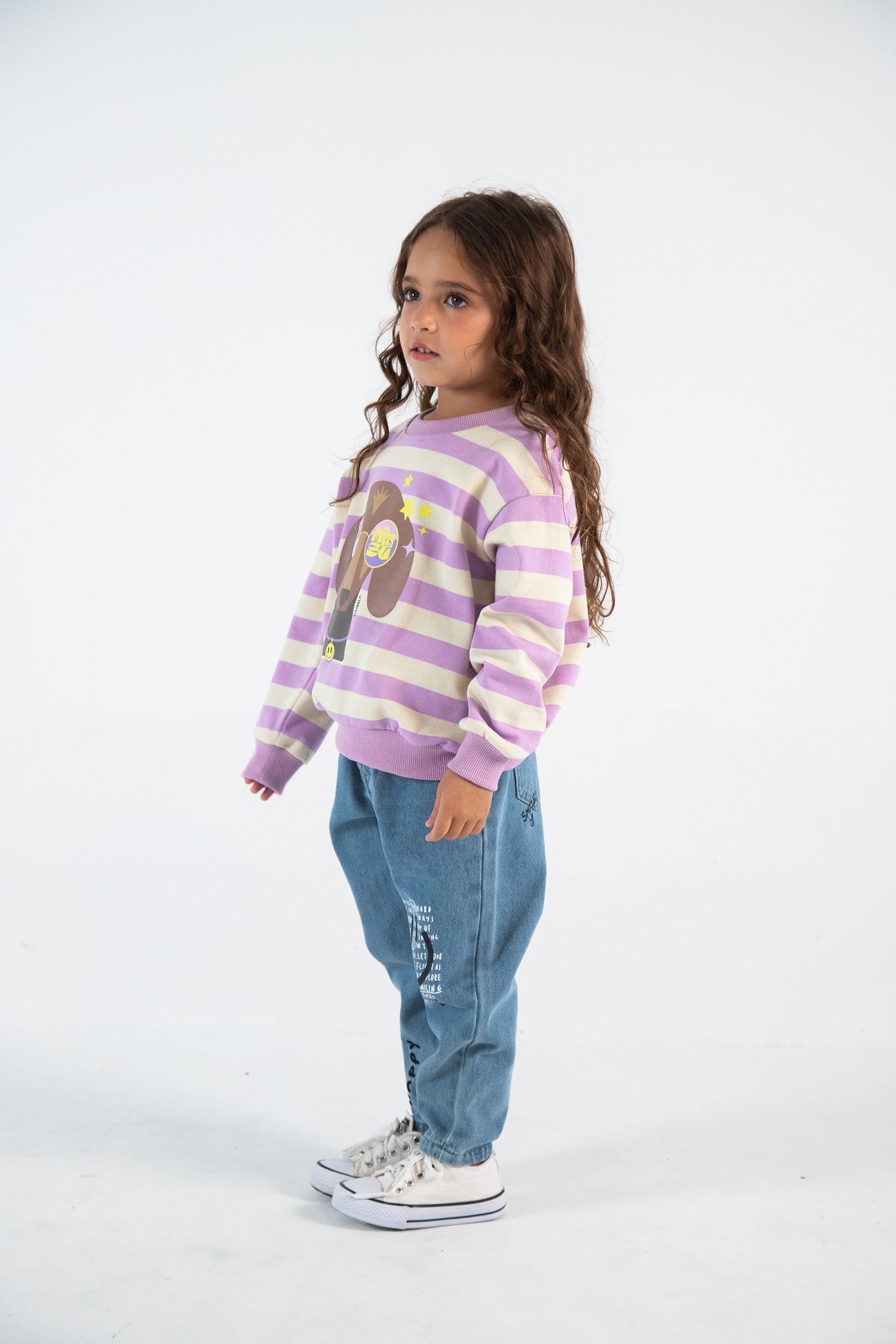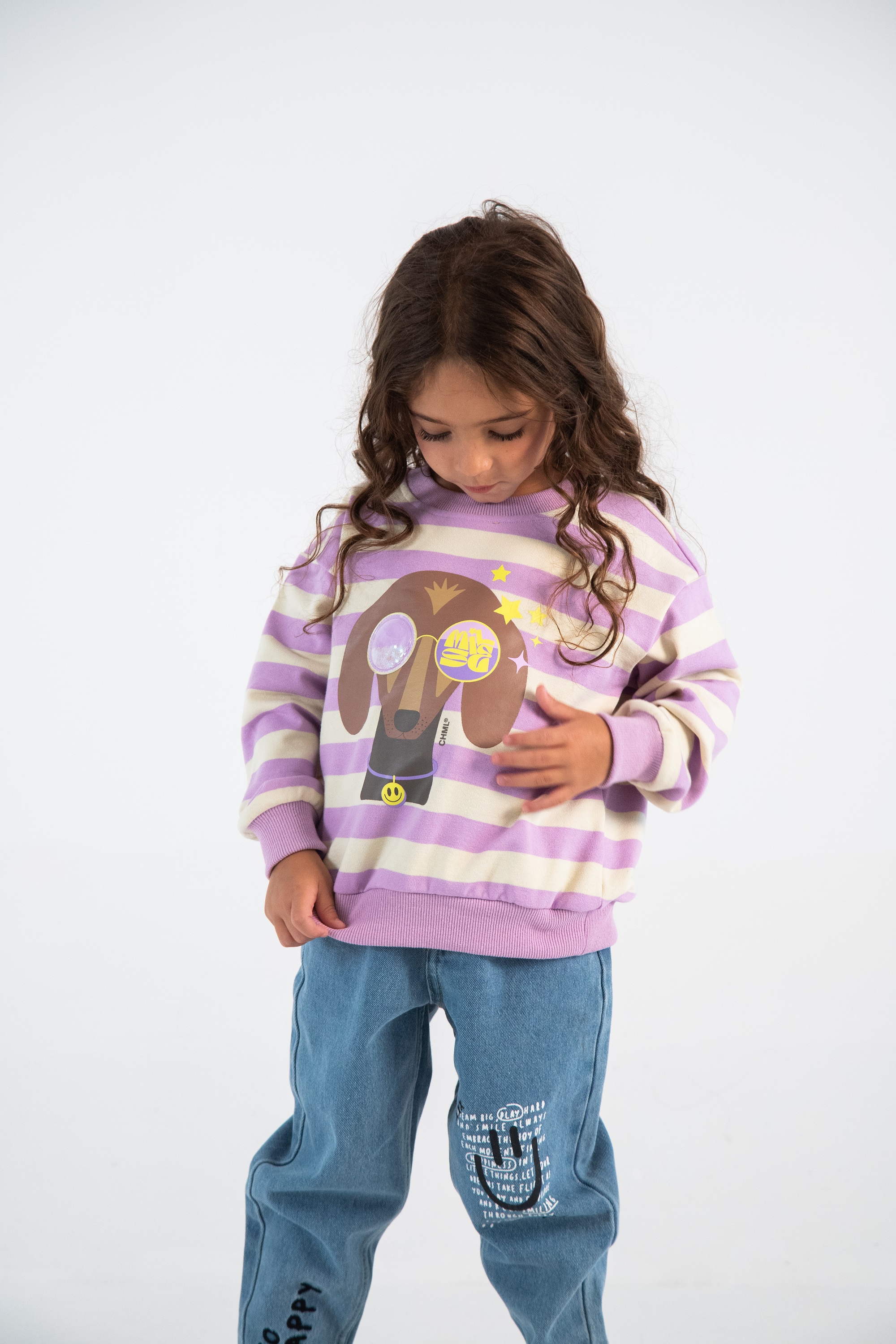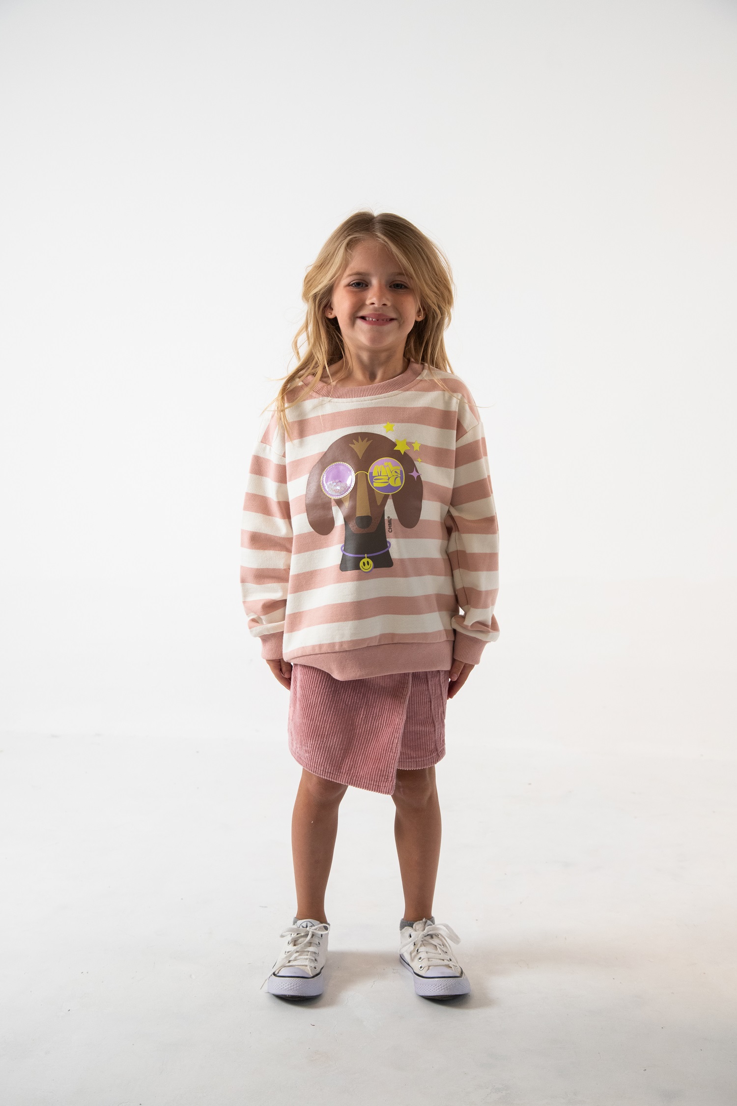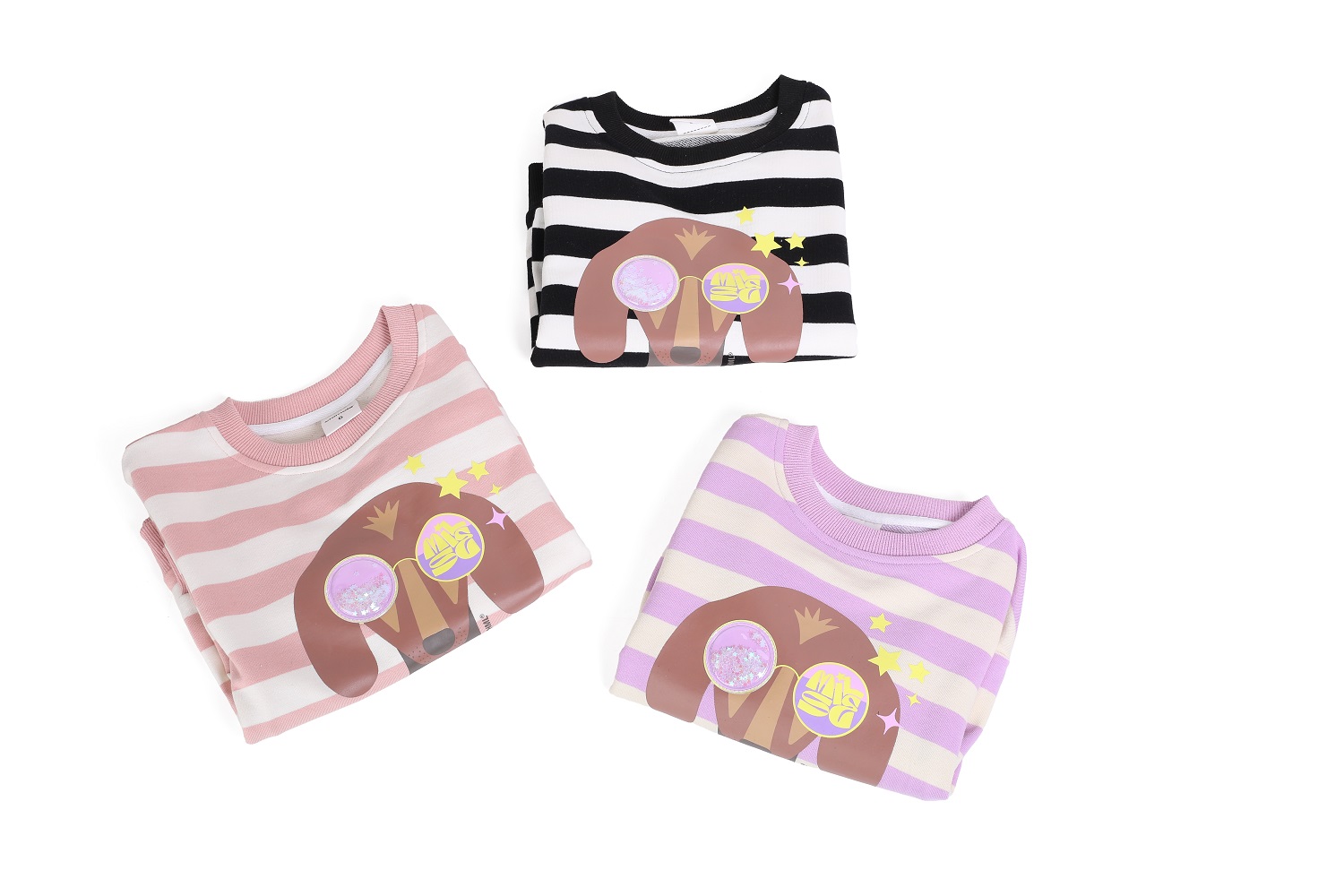 Descripción: Para lxs más alocados y extrovertidos, el "Buzo Jamie" es la opción acertada! Cuenta con unas hermosas rayas anchas, por sobre las cuales se luce un tierno perro salchicha con gafas lúdicas. Cuello redondo, elástico en sus puños y cintura; y un pequeño detalle de goma en su espalda. Compuesto en 70% algodón, 25% terylene y 5% spandex. Disponible en 3 colores: rosa, lila y negro. TABLA DE TALLE: A) Largo Delantero; B) Ancho de Hombros; C) Largo de Manga. *T4: A) 43, B) 39, C) 34,5 *T6: A) 47, B) 41, C) 37,5