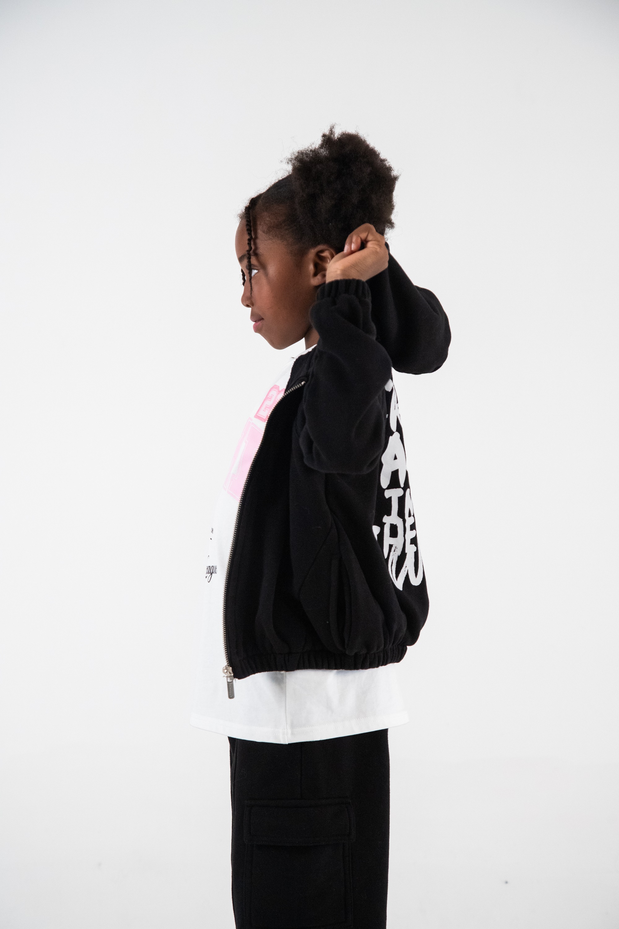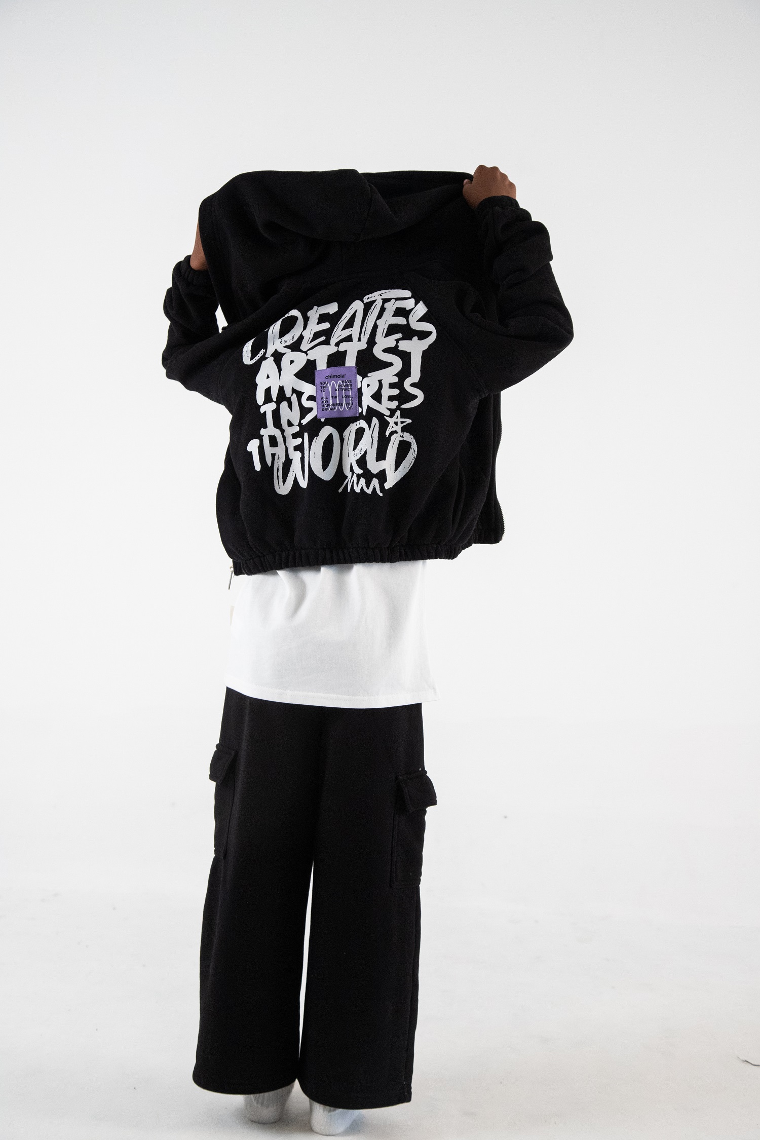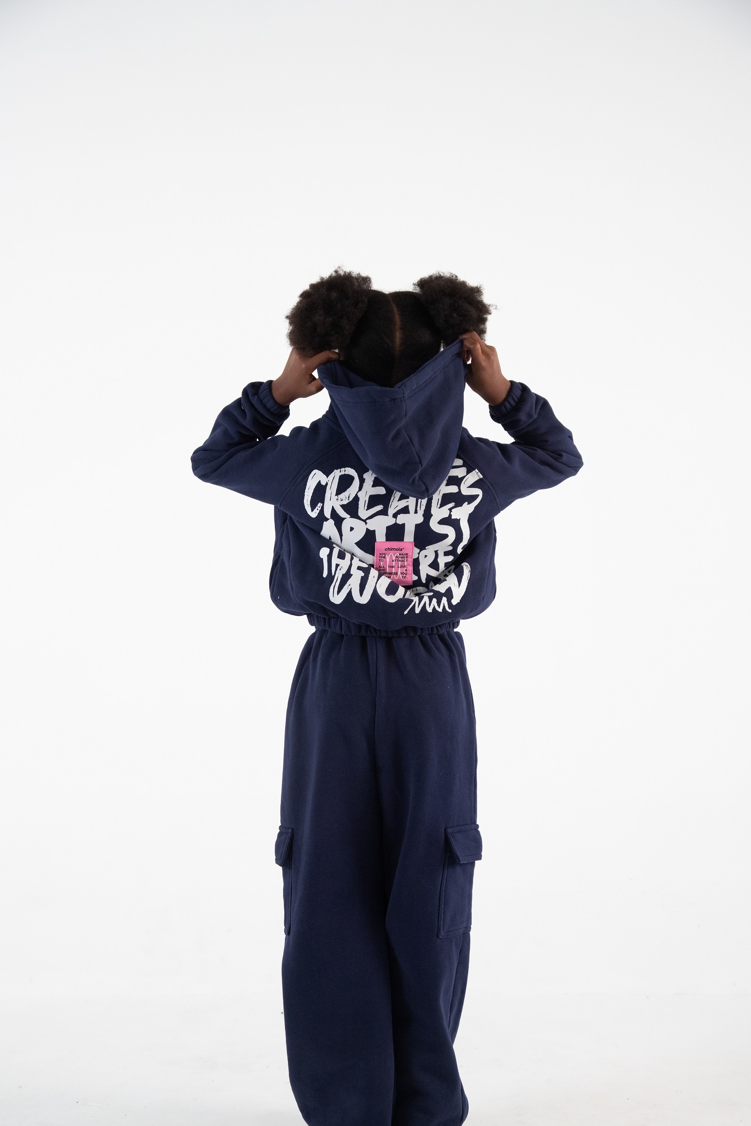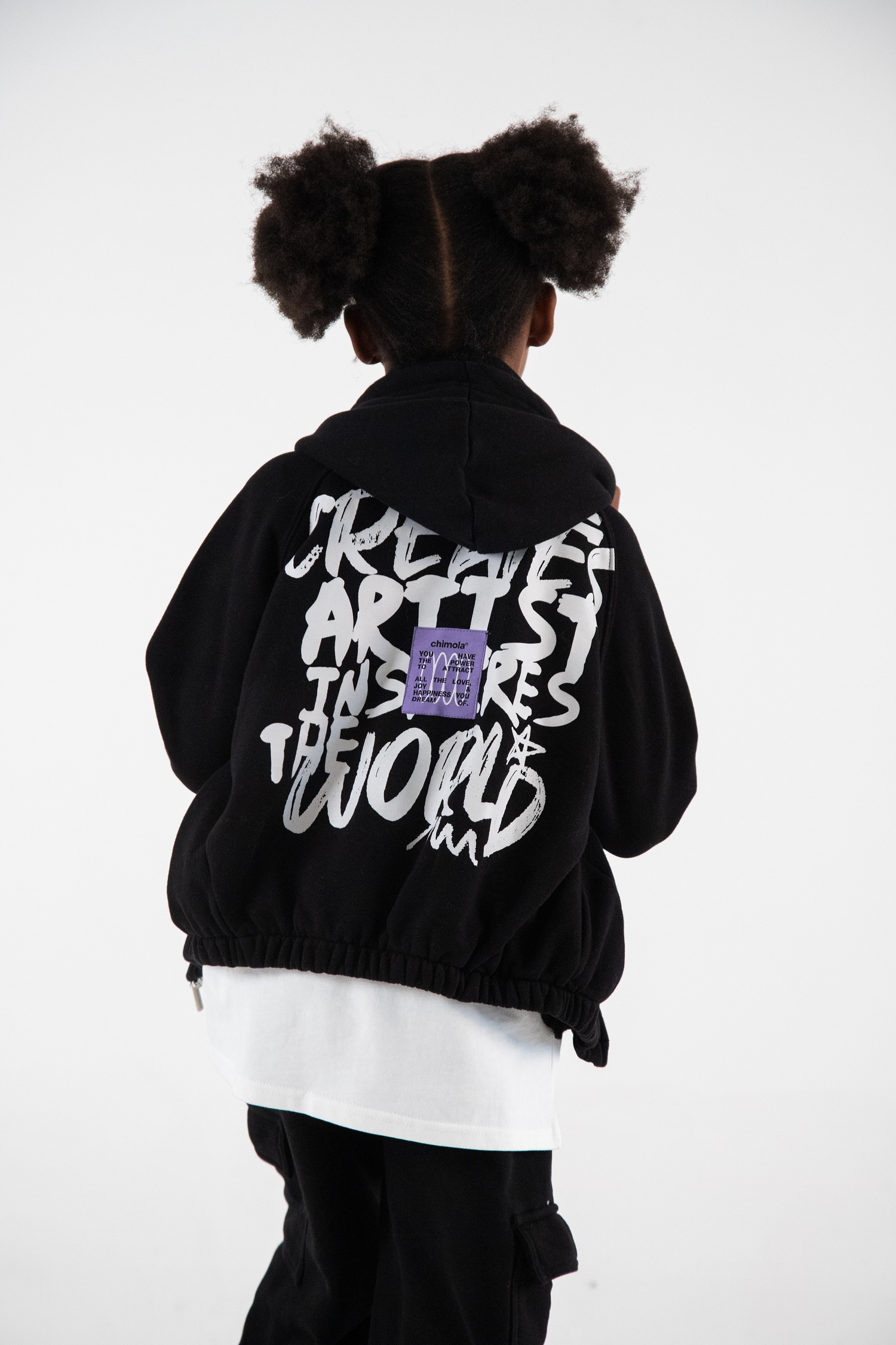 Descripción: "Buzo Dana", cómodo, abrigado y muy canchero. Con una increíble estampa gráfica en su espalda, y un pequeño detalle en el frente. Capucha y elástico en sus puños y cintura. Compuesto 100% en algodón. Lo encontrás en negro y azul. TABLA DE TALLE: A) Largo Delantero; B) Ancho de Hombros; C) Largo de Manga. *T4: A) 38, C) 50 *T6: A) 40, C) 53 *T8: A) 43,5, C) 57 *T10: A) 47, C) 61 *T12: A) 50,5, C) 65 *T14: A) 54, C) 69