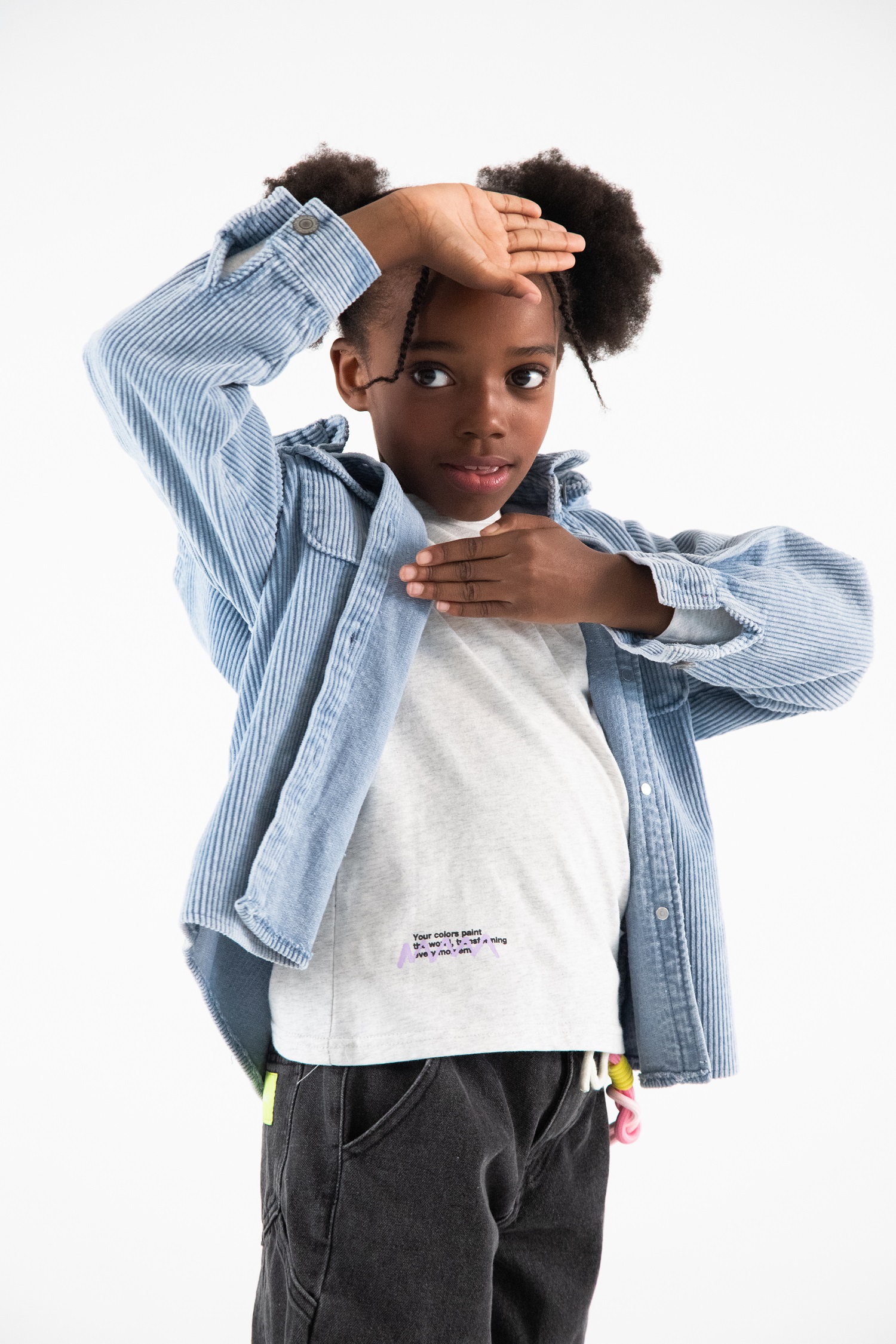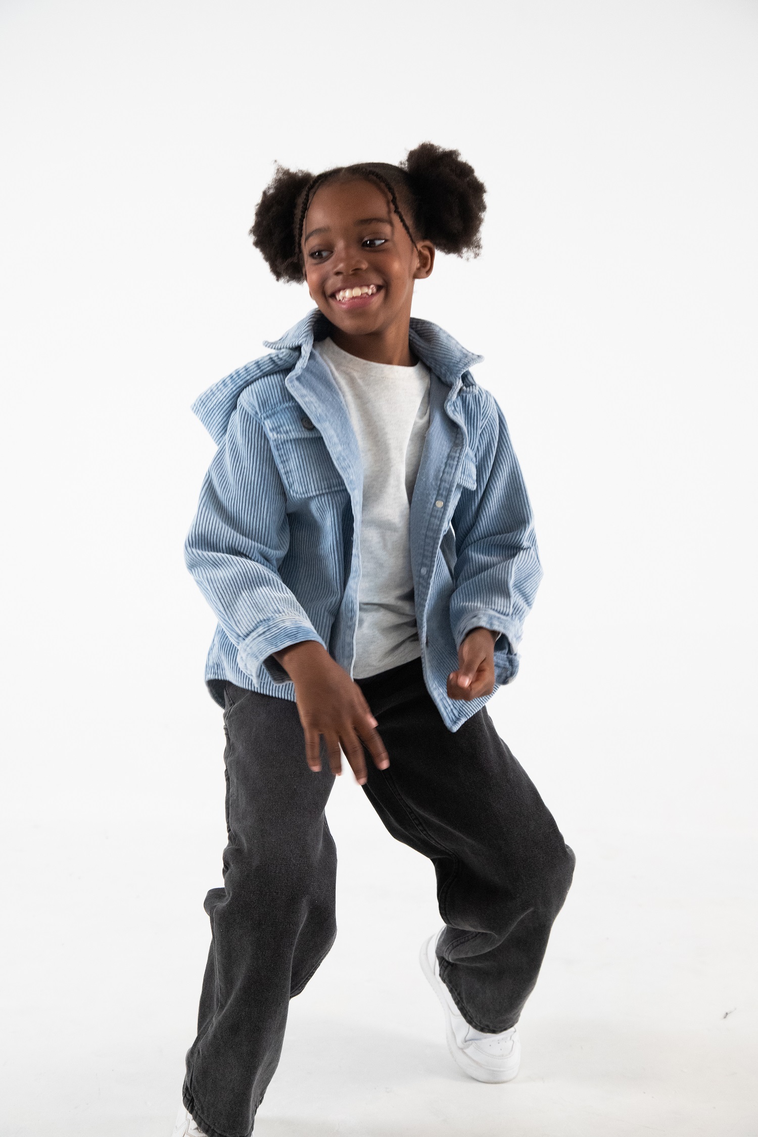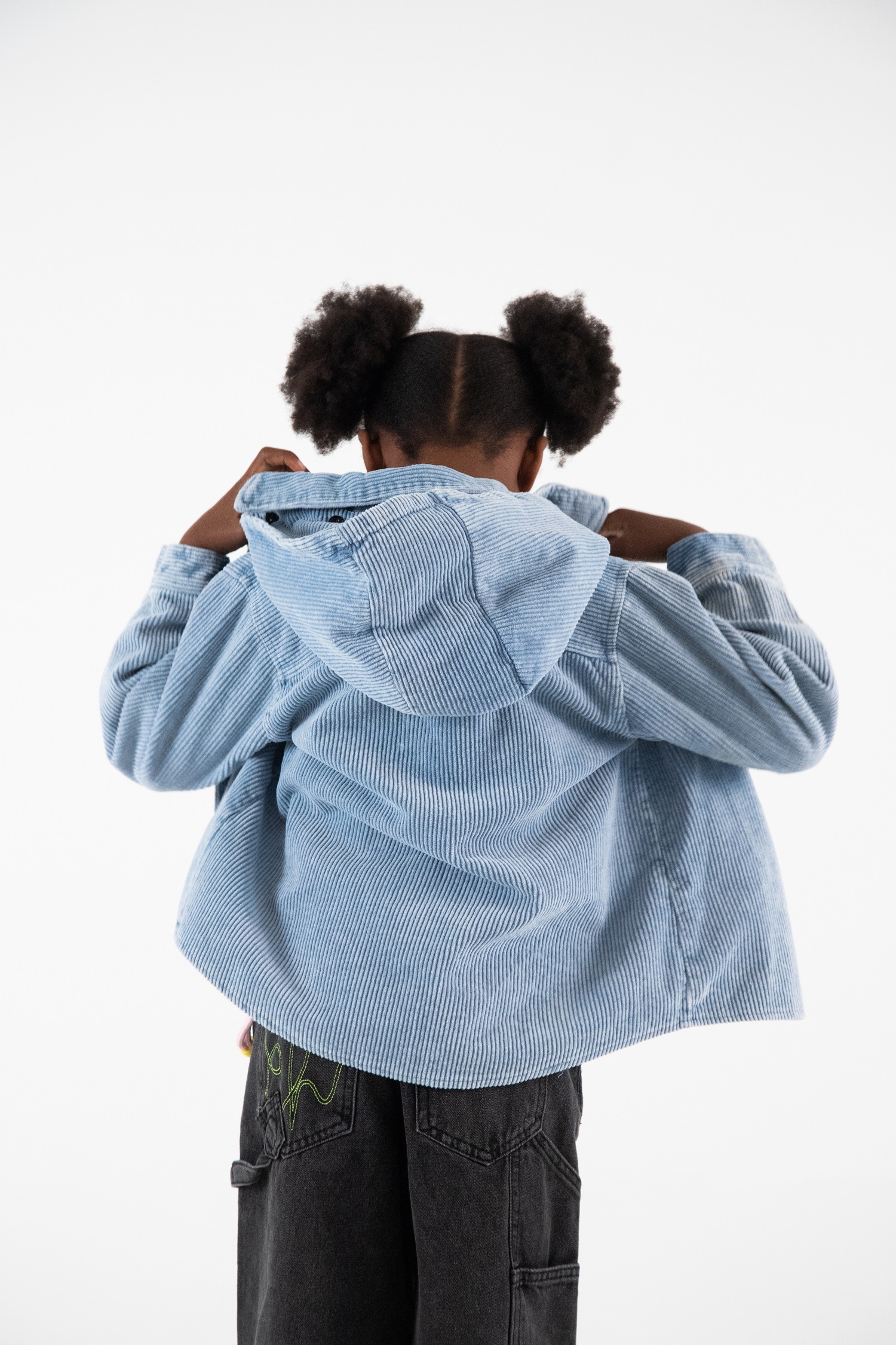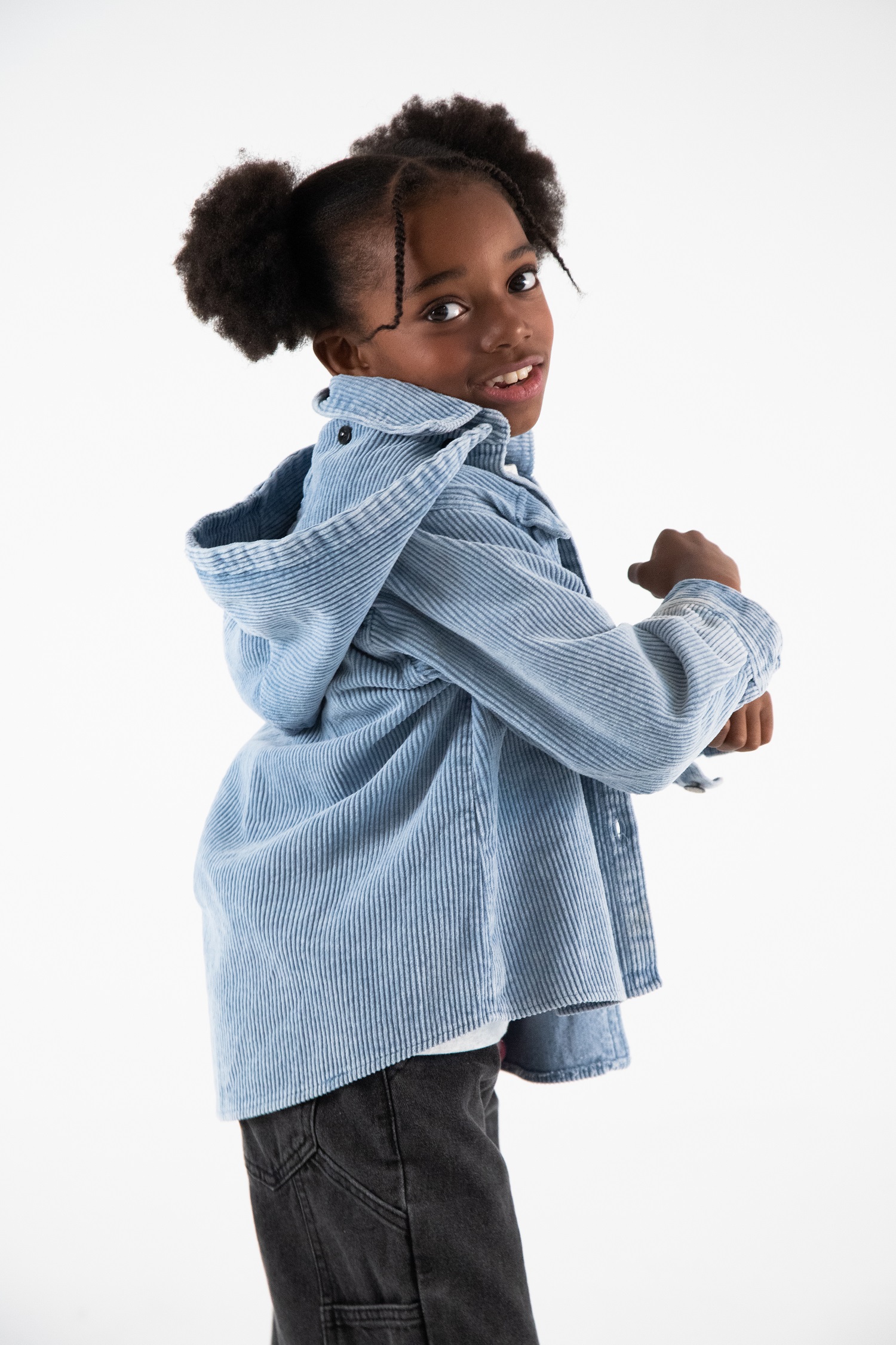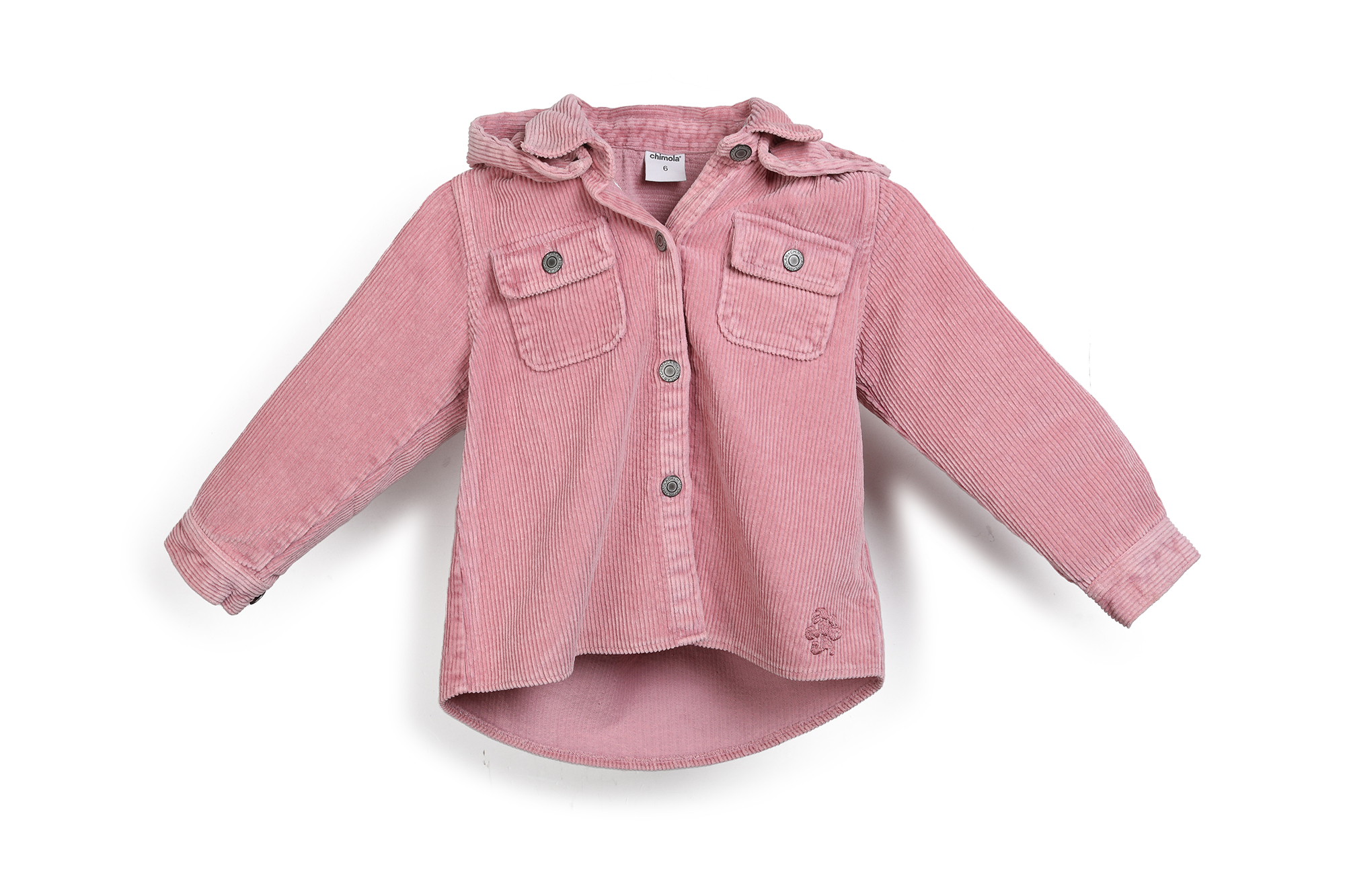 Descripción: "Camisaco Corderoy Elisa", con un tierno borado delantero y una increíble capucha desmontable. Compuesto en algodón y fiber. Disponible en rosa, azul y negro. TABLA DE TALLE: A) Largo Delantero; B) Ancho de Hombros; C) Largo de Mangas. *T4: A) 46, B) 32, C) 39 *T6: A) 50, B) 34, C) 42 *T8: A) 54, B) 36, C) 46 *T10: A) 58, B) 38, C) 50 *T12: A) 62, B) 40, C) 54