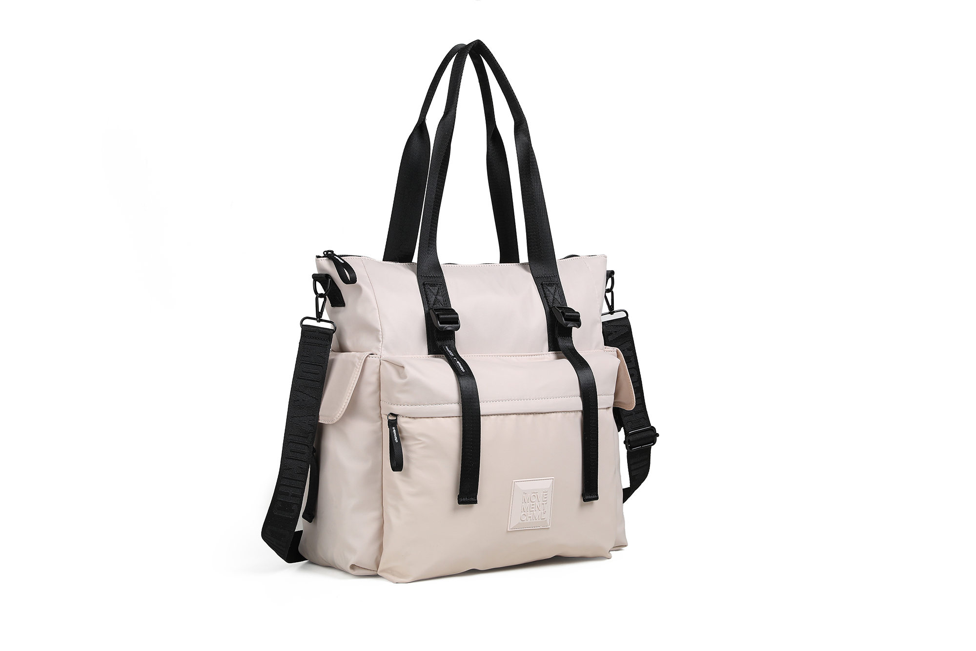 Descripción: Representando el ritmo y el movimiento de la ciudad, nuestra tote CITY va a permitirte llevar todo lo que quieras con vos. Además, con sus bolsillos tanto internos como externos, vas a poder organizar todo como más te guste. Encontrala en todas sus variantes de color; nude, visón, pale pink y black. Material: Nylon y PU. Medidas: Ancho en cm: 41.5. Alto en cm: 41. Pofundidad en cm: 17.