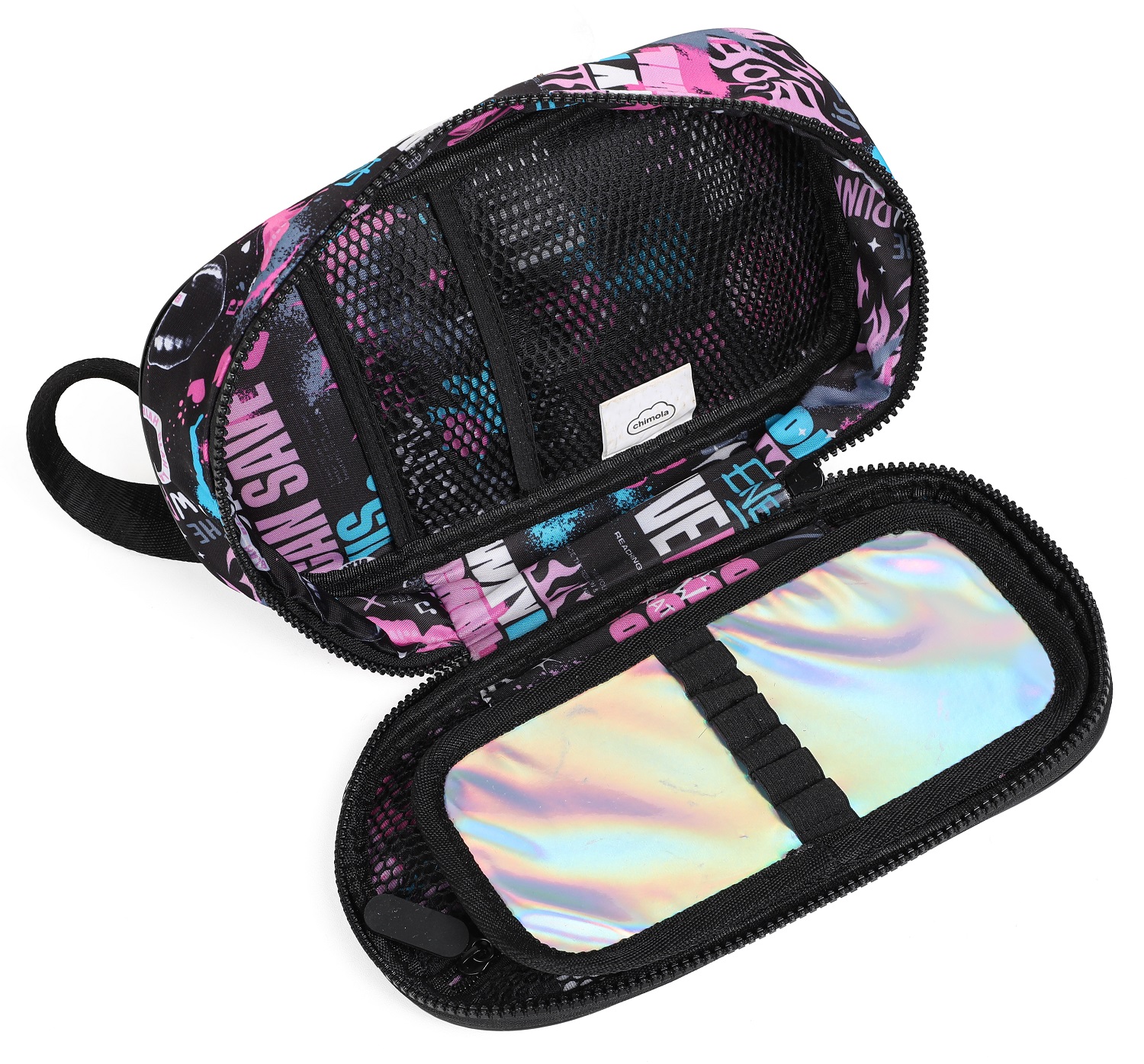Descripción: ¡Tenemos nuevo formato! Con un espíritu rebelde y una estampa muy Punk esta cartuchera llegó para conquistarte. Su mix de materiales vinílicos y holográficos van a convertir tu vuelta al cole en un momento súper cool. Además, con su forma de mini-mochila y una correa regulable ¡Vas a poder llevarla a todos lados! Nuestra cartu no sólo tiene un diseño estético sino también uno funcional; Este modelo cuenta con un compartimiento grande lleno de bolsillos y organizadores internos, para que tengas siempre todo la vista. ¡Podés tener todo ordenado! Medidas: Ancho: 12.5cm. Alto: 24cm. Profundidad: 8cm.