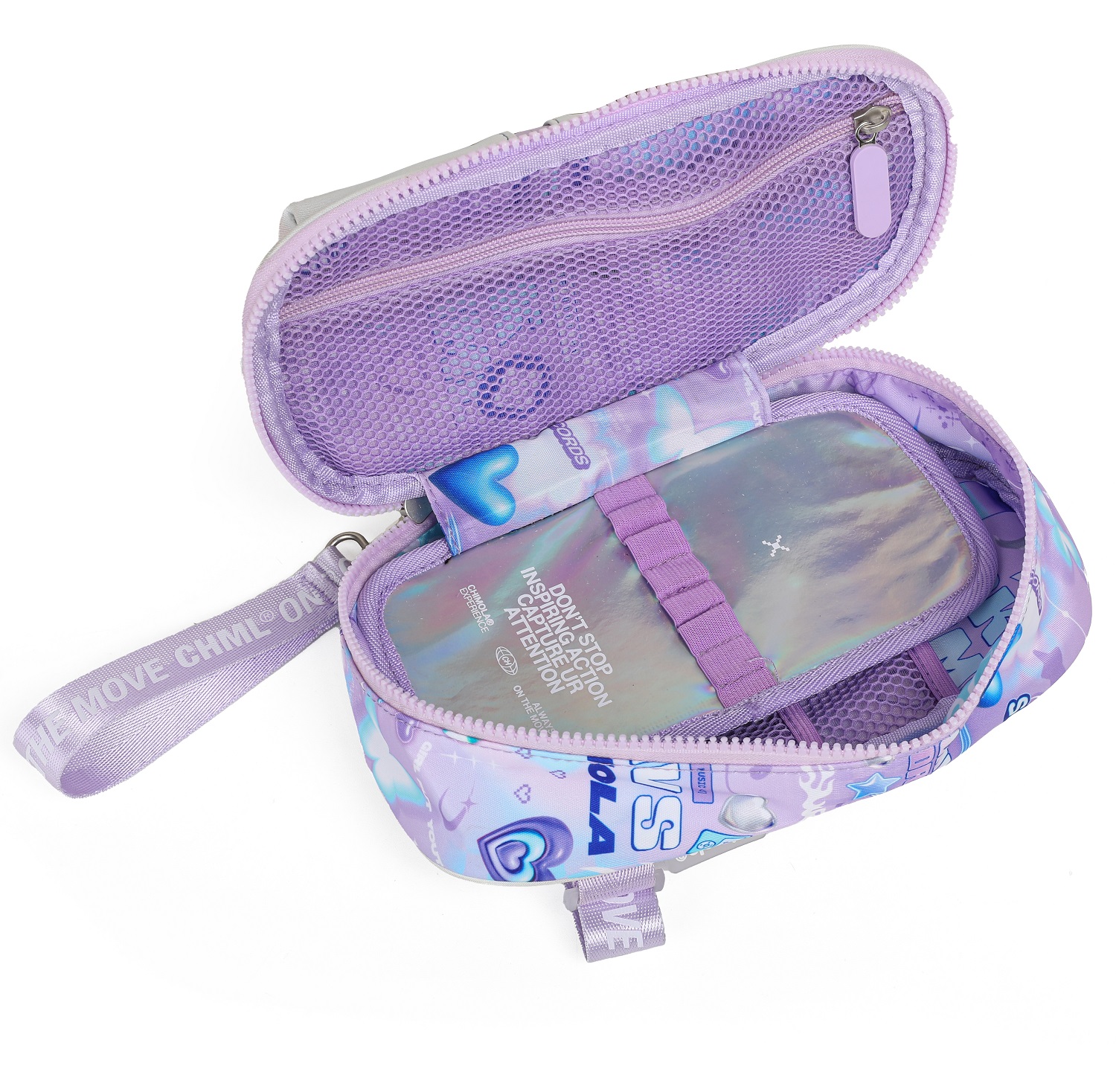 Descripción: Chimola Cartuchera Mini backpack Pop light purple TR160 ¡Tenemos nuevo formato! Combinando lo mejor del universo Y2K con la esencia vibrante del POP esta cartuchera va a ser tu mejor aliado para llevar todos tus útiles. Además, con una forma de mini-mochila y su correa regulable se transforma en un accesorio súper cool para la vuelta al cole. Sus materiales holográficos, estampas degradé y detalles se combinan a la perfección con su funcionalidad; Este modelo cuenta con un compartimiento grande lleno de bolsillos y organizadores internos, para que tengas siempre todo la vista. ¿Qué estás esperando? Encontrala también en su color Pink. Medidas Ancho: 12.5cm Alto: 24cm Profundidad: 8cm.