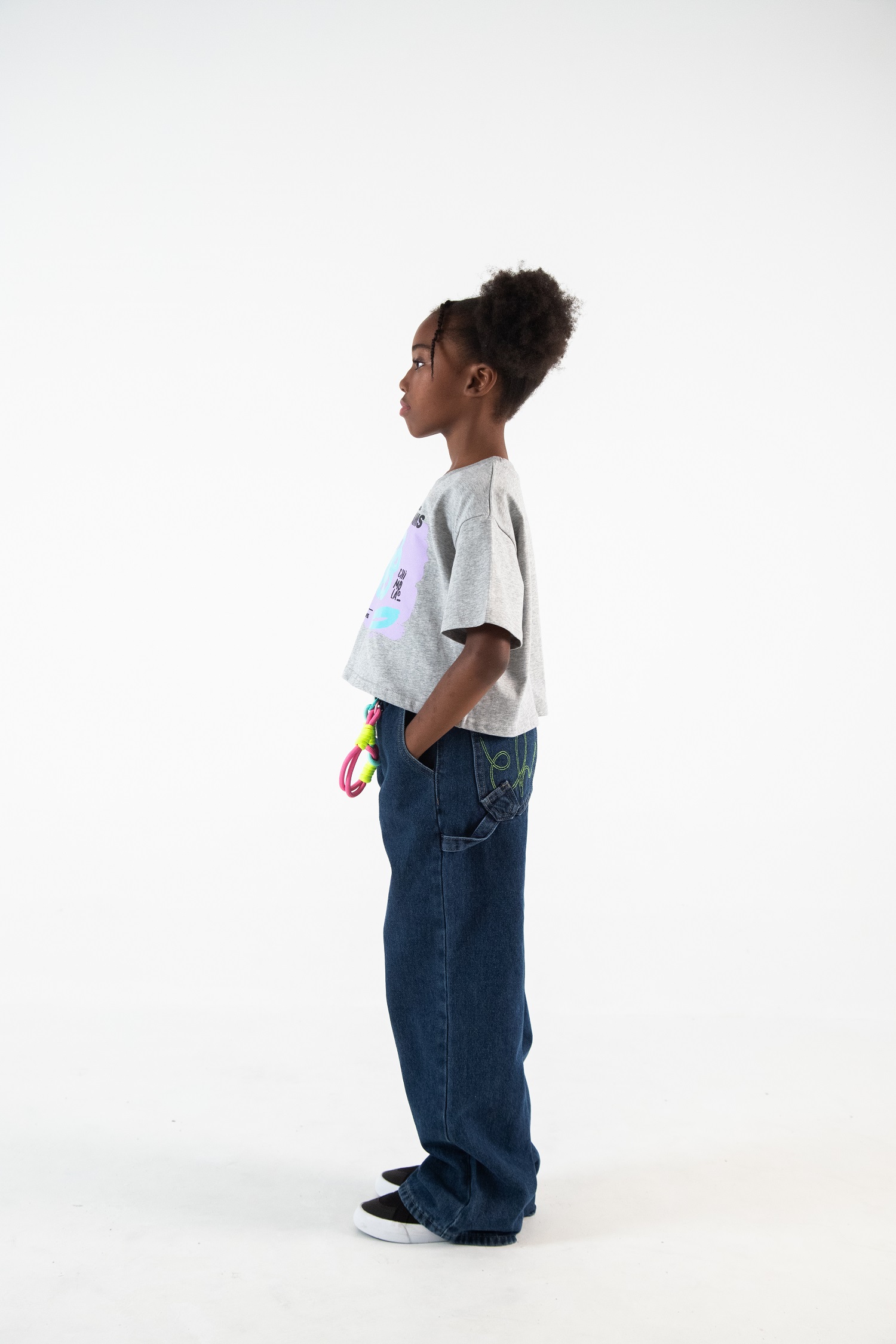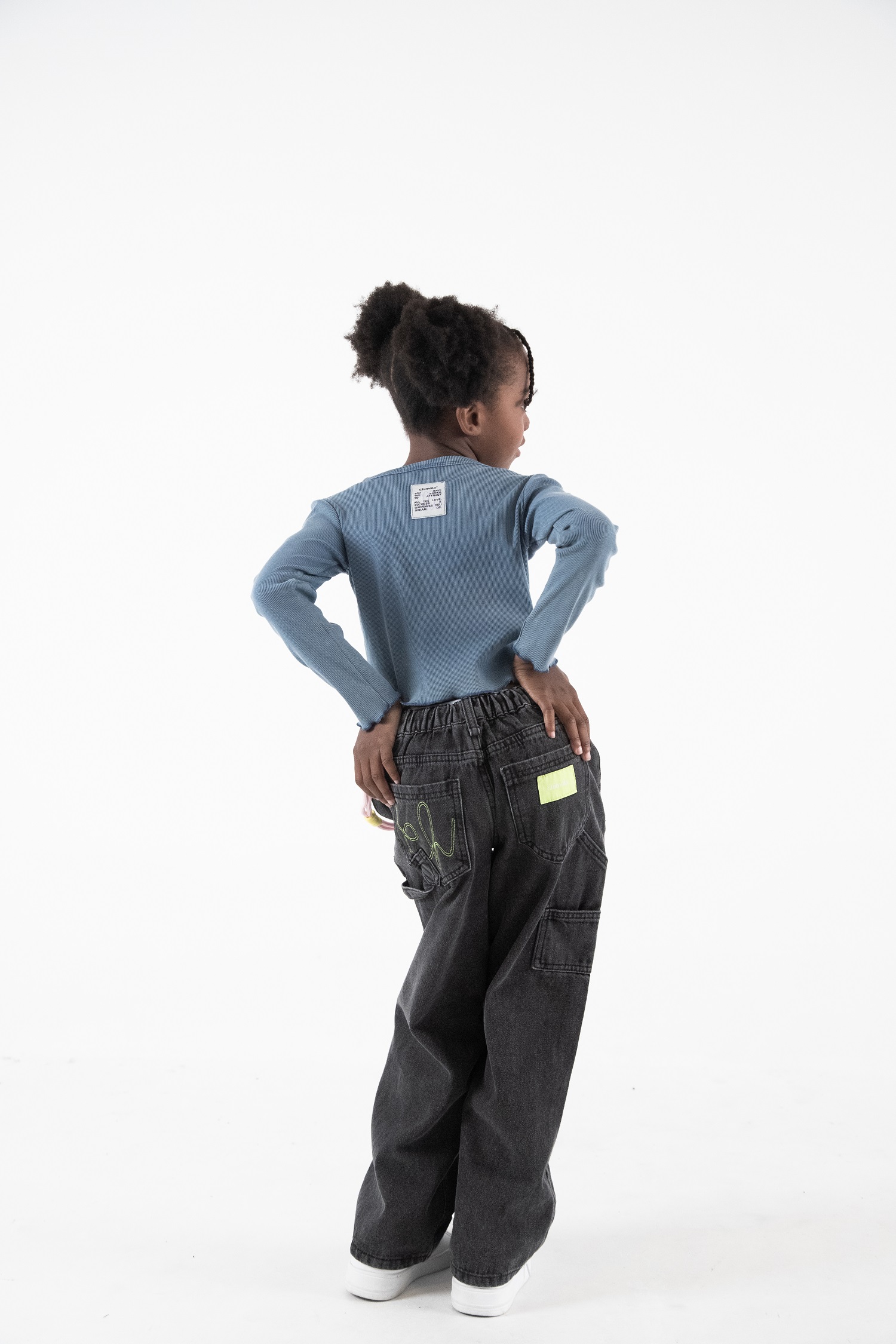 Descripción: Denim "Irish", con apliques colgantes desmontables de colores. Llená de color y alegría esta temporada de frío! Compuesto 75% en algodón, 5% fibra de viscosa y 20% poliester. Podes elegirlo en dark blue o light blue o negro. TABLA DE TALLE: A) Largo Total, B) Ancho de Cintura Relajada, C) Ancho de Cintura Estirada , D) Ancho de Cadera. *T4: A) 64, B) 21, C) 30, D) 35 *T6: A) 72, B) 24, C) 33, D) 38 *T8: A) 80, B) 26, C) 35, D) 40 *T10: A) 88, B) 28, C) 37, D) 42 *T12: A) 96, B) 30, C) 39, D) 44