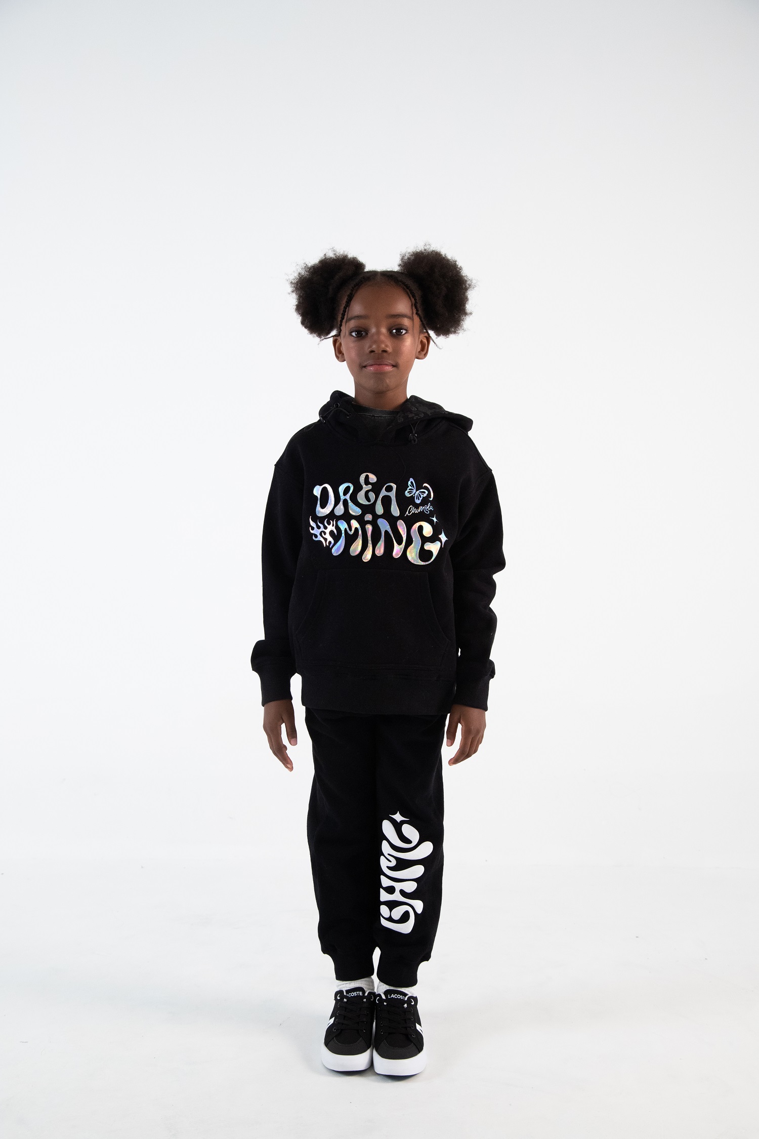 Descripción: "Jogging Alanis", cuenta con un bolsillo trasero y una estampa volumétrica en la parte delantera. Además cintura elástica ajustable y bolsillos frontales. Composición 81% algodón, 19% polyester. Disponible en rosa, negro y lila . TABLA DE TALLE: A) Largo Total, B) Ancho de Cintura Relajada, C) Ancho de Cintura Estirada , D) Ancho de Cadera. *T4: A) 59, B) 21, C) 29, D) 35 *T6: A) 67, B) 24, C) 32, D) 38 *T8: A) 75, B) 26, C) 34, D) 40 *T10: A) 83, B) 28, C) 36, D) 42 *T12: A) 91, B) 30, C) 38, D) 44