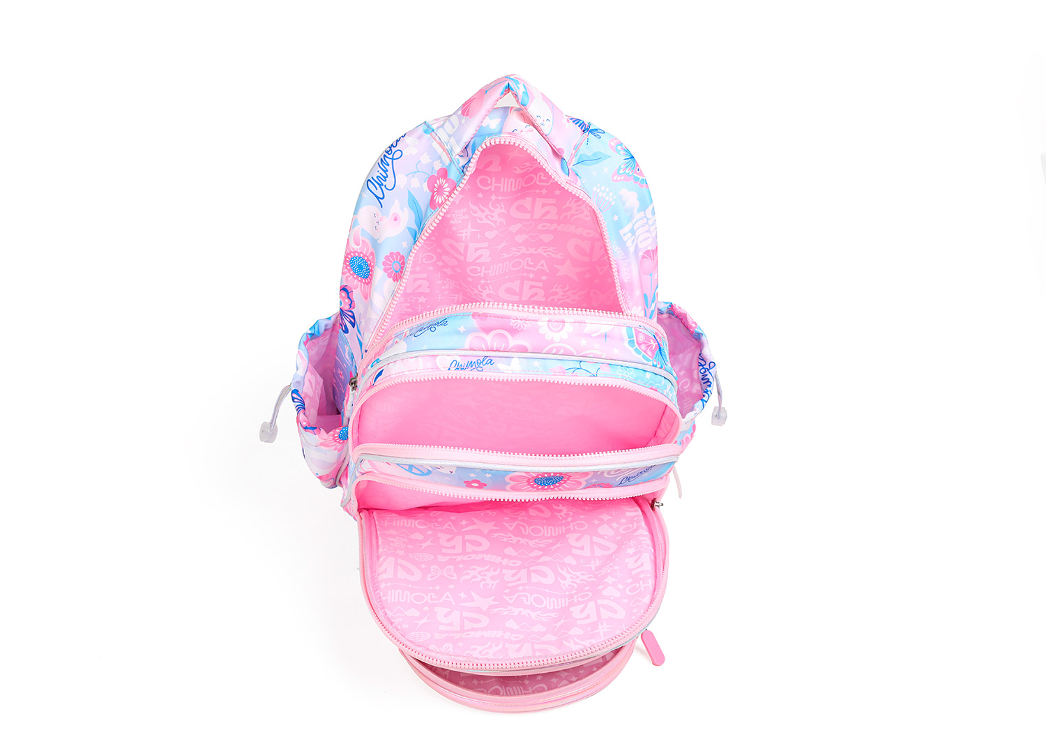 Descripción: Medidas: 30x40,5x18,5 cm . bolsillo con aplique de goma . tela impermeable . tiracierres de goma y soga . bolsillos laterales ajustables . cartuchera desmontable Composición: Body: 100% Nylon Lining:100% Polyester