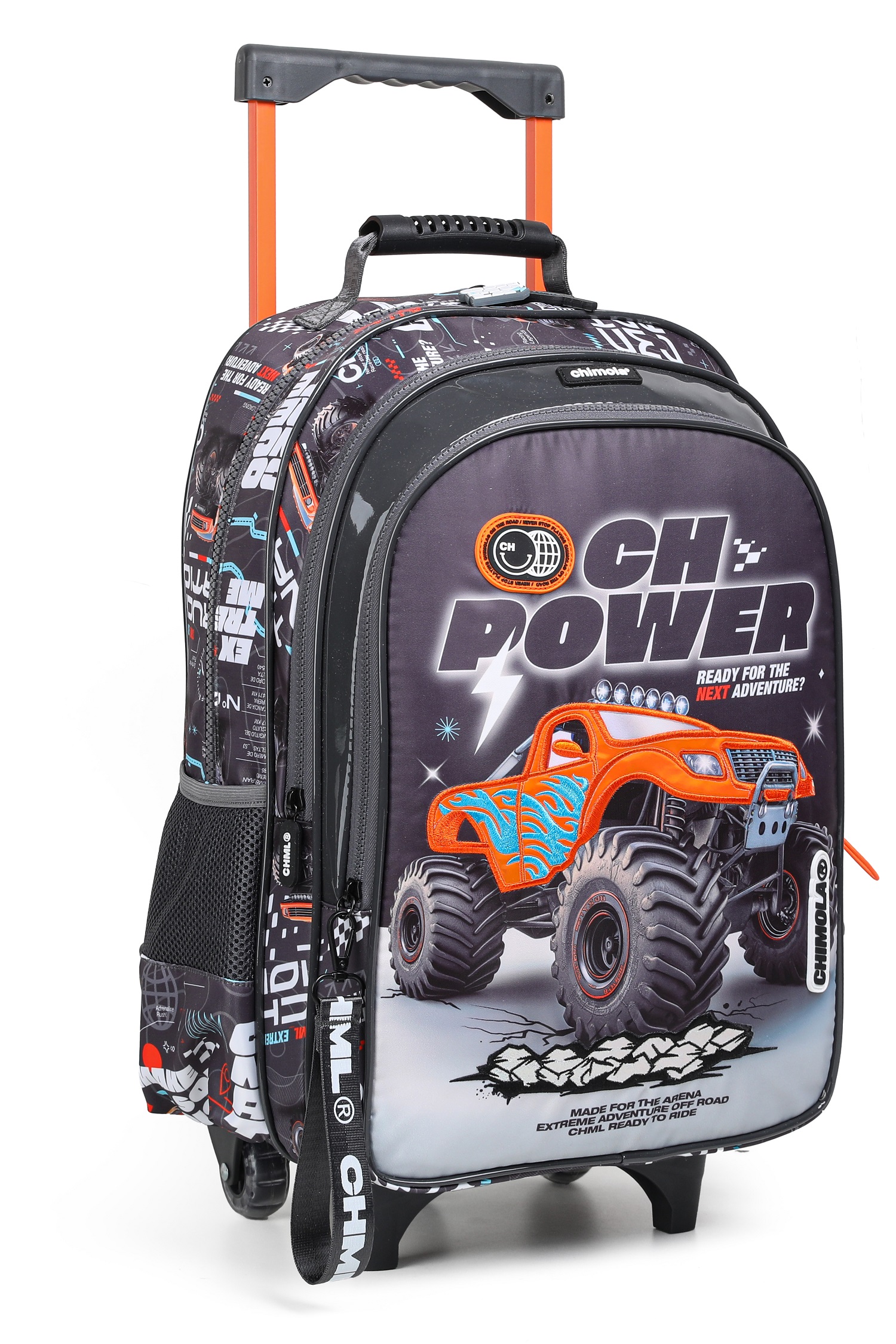 Descripción: ¡Preparate para vivir una experiencia al límite! Diseñada para los pequeños aventureros que buscan emociones fuertes, nuestra nueva mochila Truck captura la adrenalina y la potencia de las camionetas Monster Truck. Con estampas de geolocalización que te transportan a terrenos salvajes y desafiantes, cada detalle despierta tu espíritu de aventura y acción. Nuestra mochi de 14" es perfecta para preescolar ya que tiene 1 compartimiento principal grande y 1 compartimiento frontal secundario que permiten organizar todo lo necesario sin perder comodidad para transportar. Además, cuenta con dos bolsillos laterales, uno regulable y otro con red para la botella. Posee un carro reforzado extensible a tono y además cuenta con 3 ruedas de silicona que proporcionan un andar cómodo y ligero.