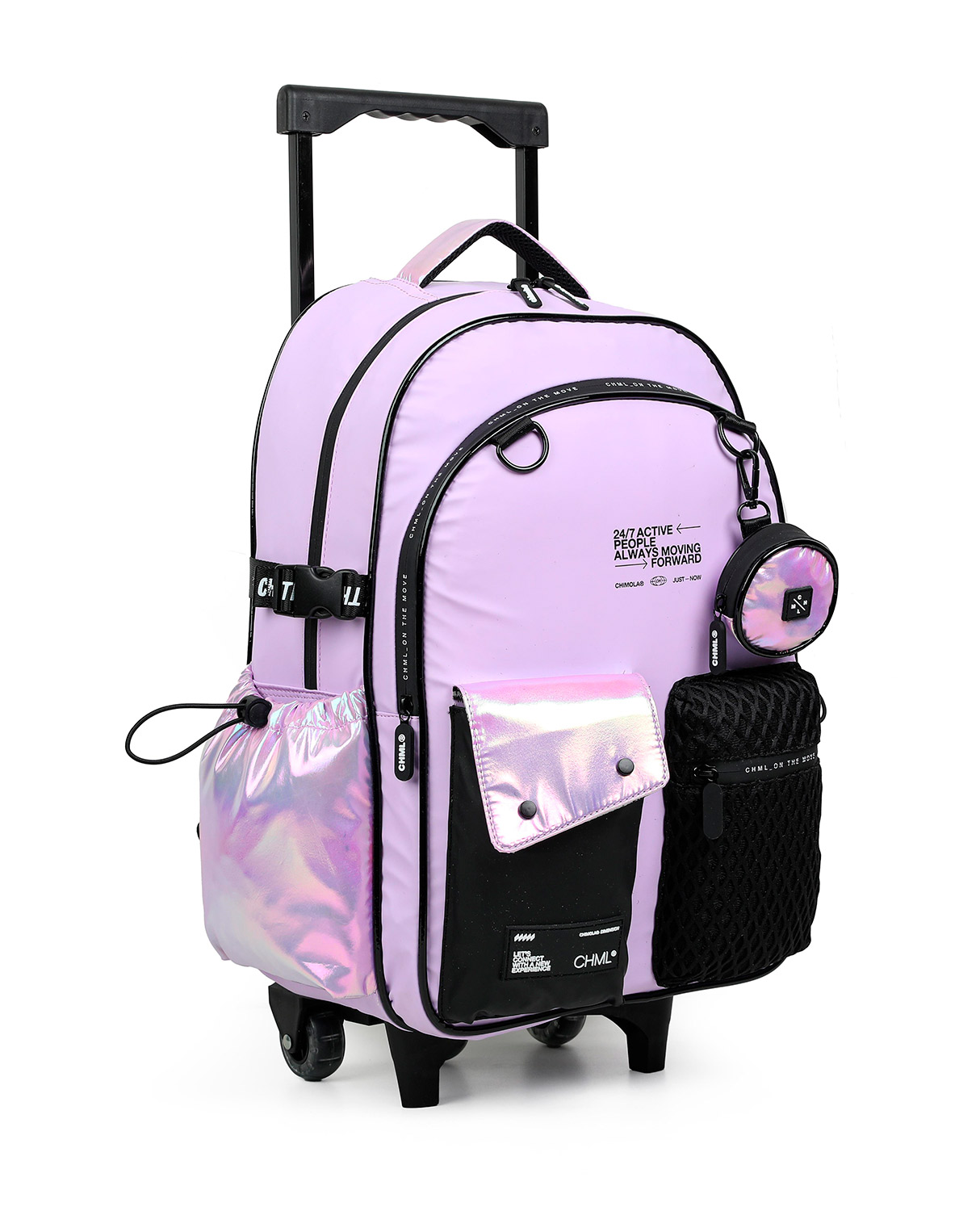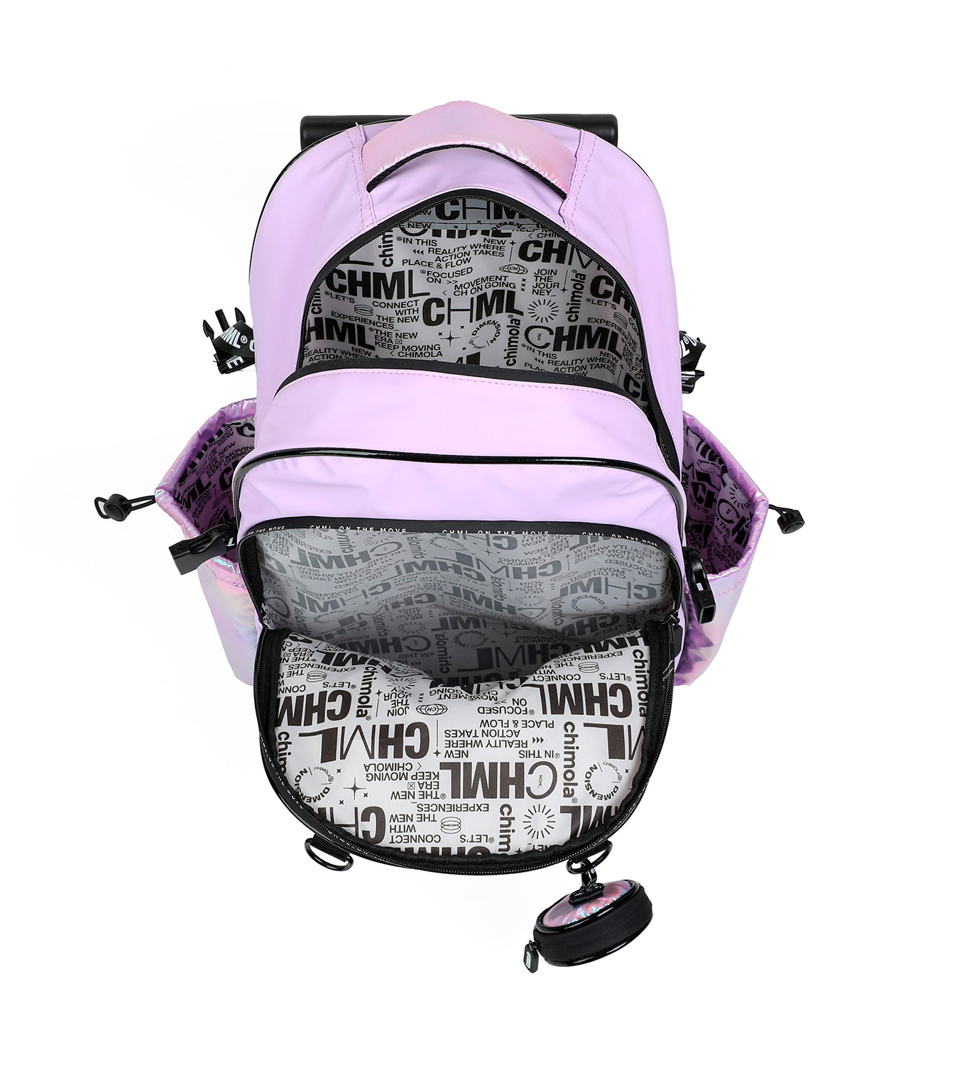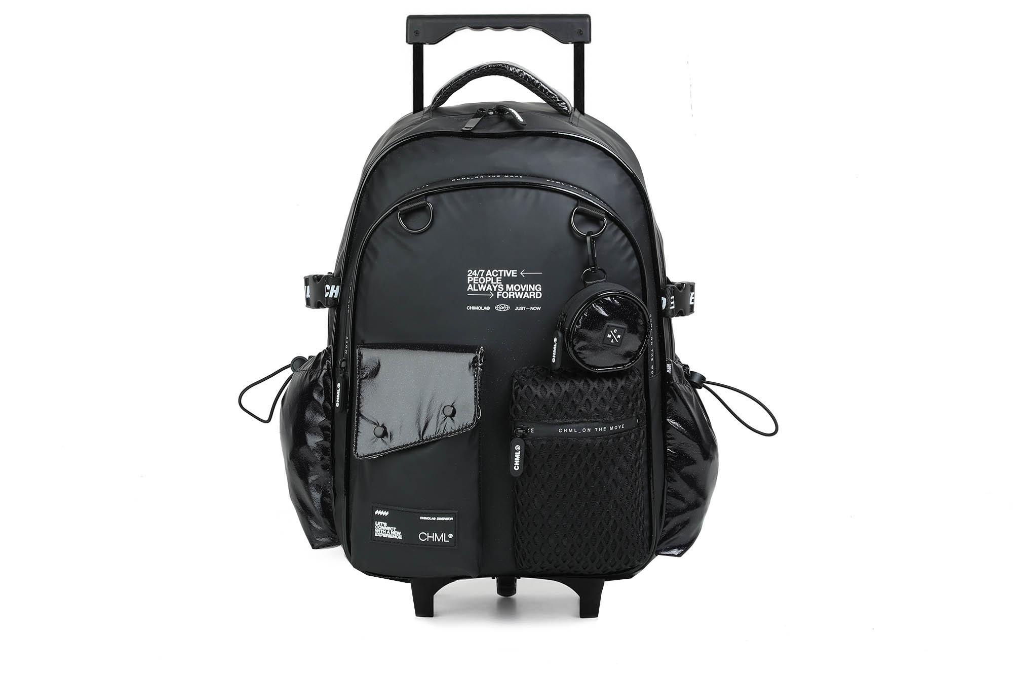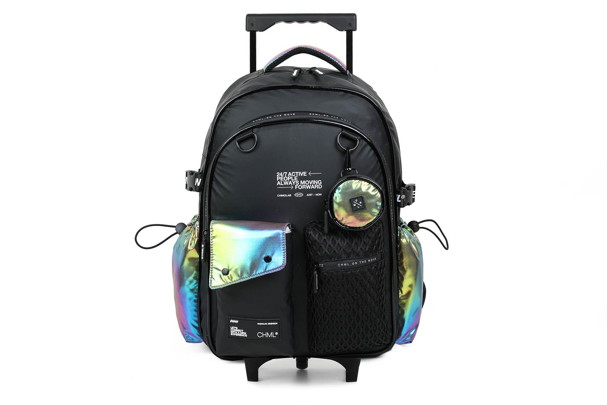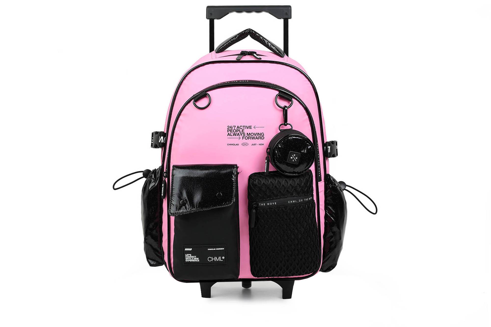 Descripción: Medidas: 32,5x46,5x20 cm . bolsillos frontales . tela impermeable . carro reforzado . tiracierres de goma . bolsillos laterales ajustables . mini pouch Composición: Body: 100% Nylon Lining:100% Polyester