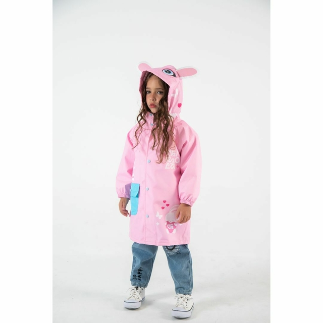 Nuestro encantador piloto rosa con diseño de Bunny pensado en lxs más pequeñxs de la casa, con una capucha que presenta orejitas y una adorable colita que agrega un toque de diversión a cada paso. En la parte trasera, encontrarás un estampado encantador, mientras que en la parte delantera, un pequeño bolsillo con botón añade un toque práctico y lúdico al diseño.