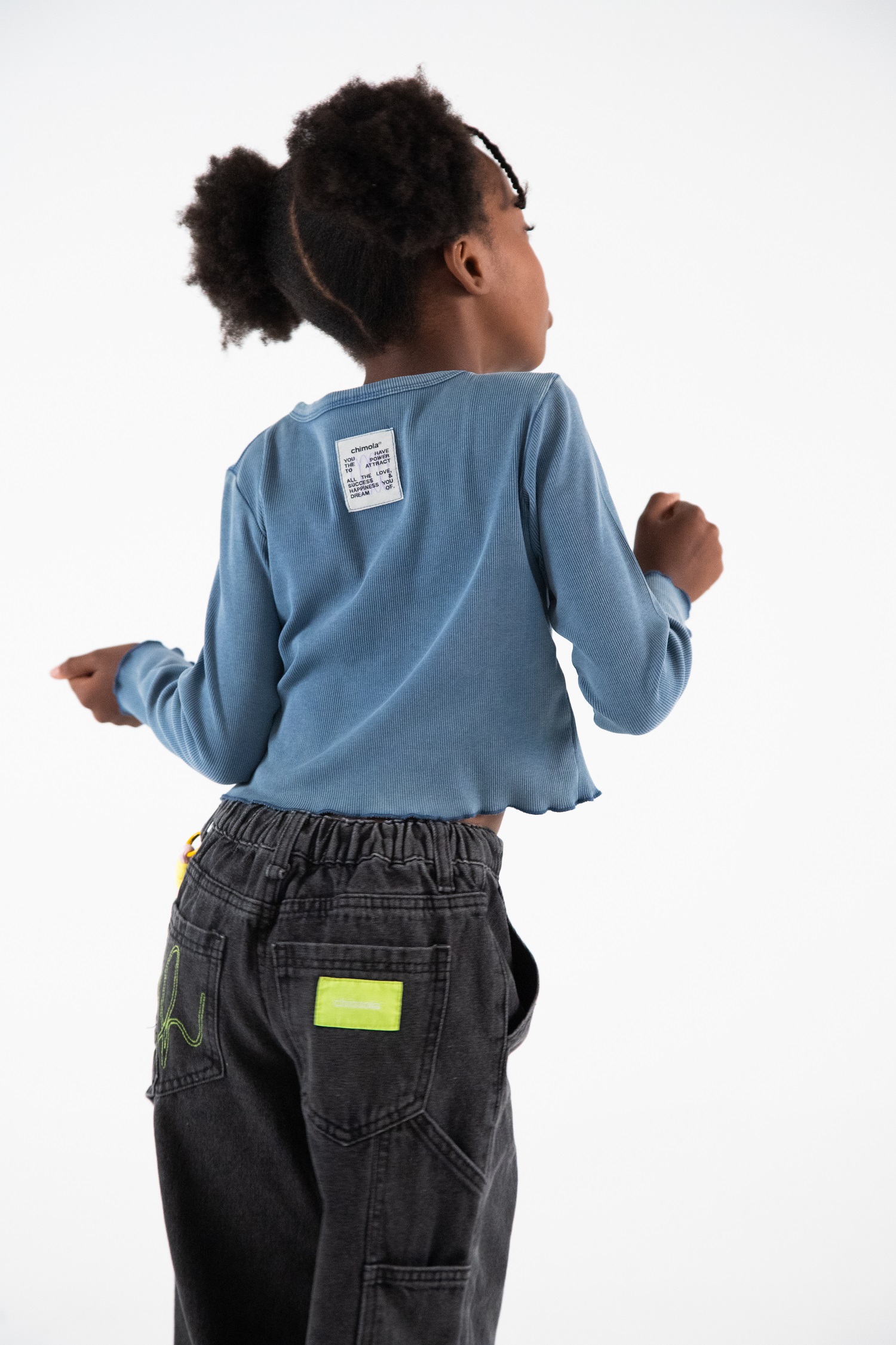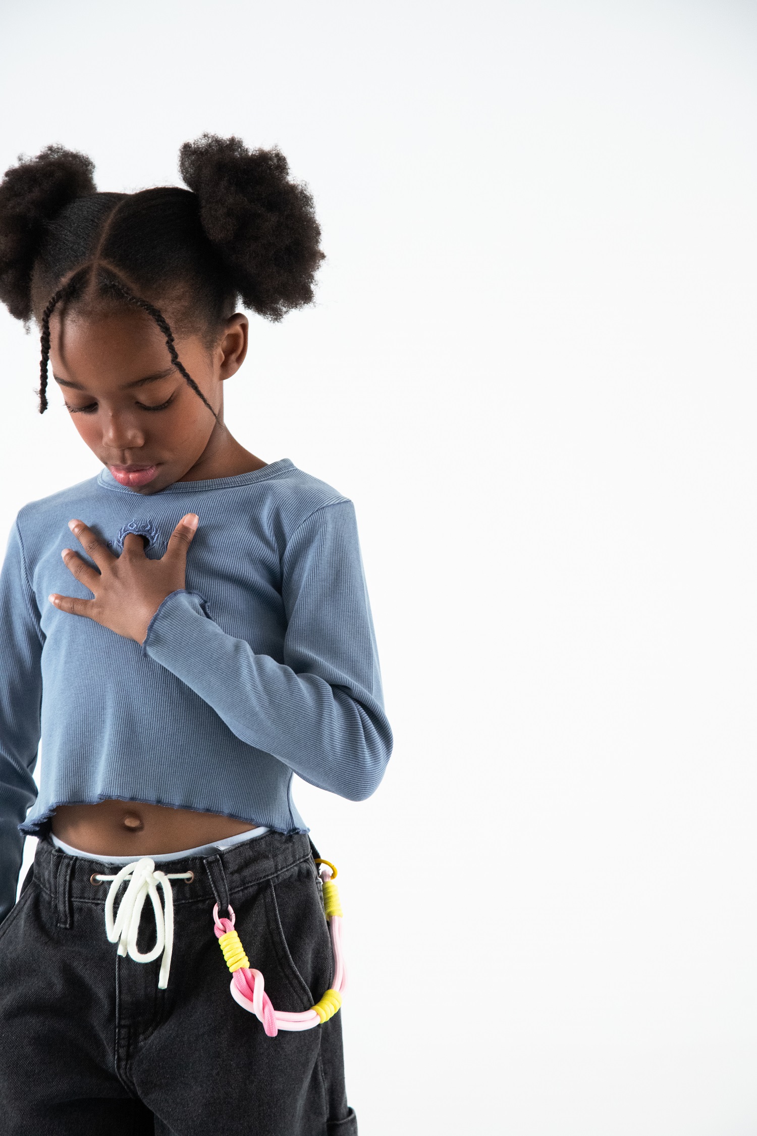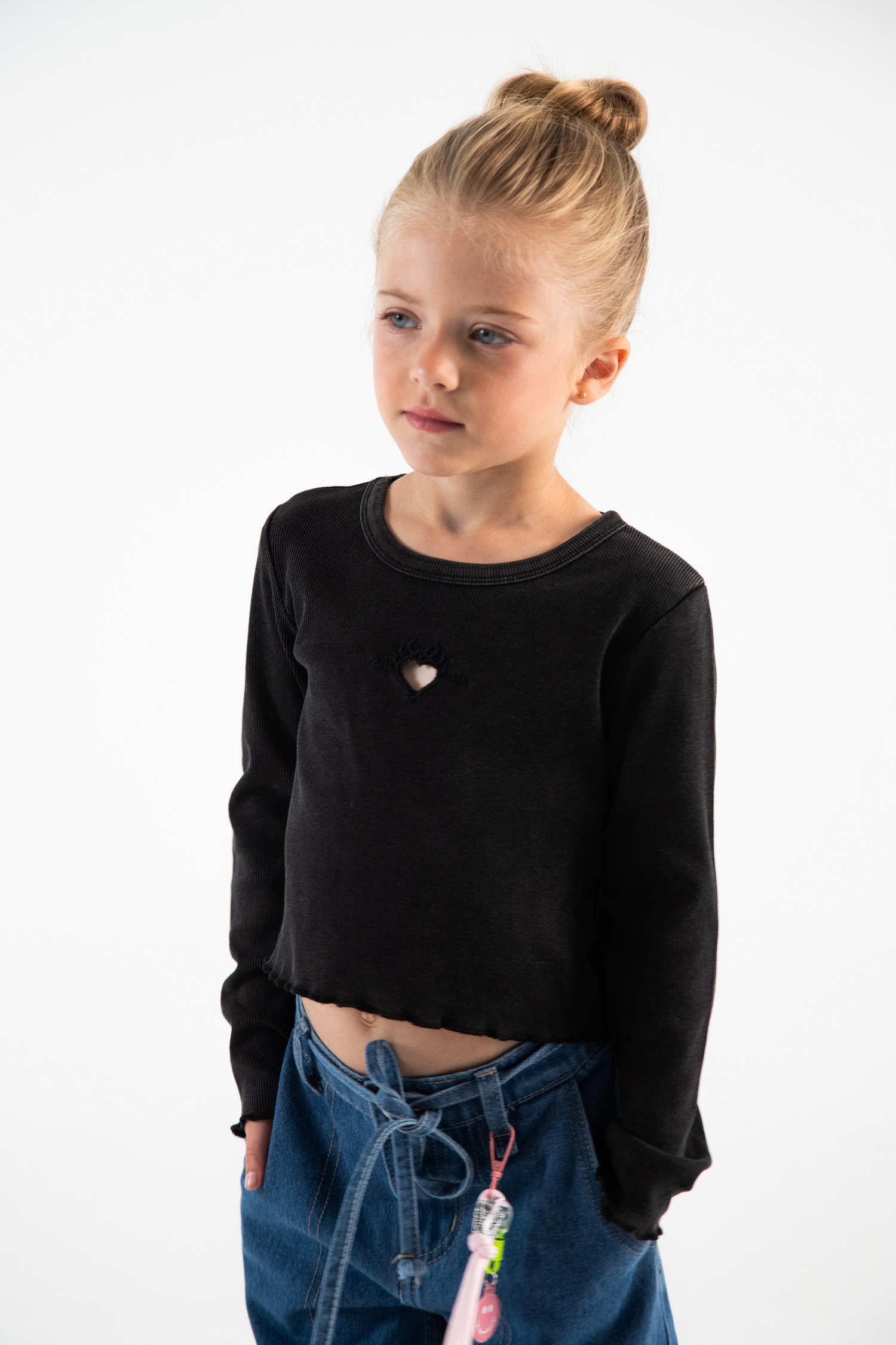 Descripción: La magia sucede en los detalles! "Remera Crop Ash", con un tierno y sutil recorte de corazón en el pecho. Compuesta en 78% algodón, 18% terylene y 4% spandex. Disponible en negro y azul. TABLA DE TALLE: A) Largo Delantero; B) Ancho de Hombros; C) Largo de Manga. *T6: A) 36, B) 26,5, C) 41 *T8: A) 37,5, B) 28, C) 45 *T10: A) 39, B) 29,5, C) 49 *T12: A) 40,5 , B) 31, C) 53 *T14: A) 42, B) 32,5, C) 57
