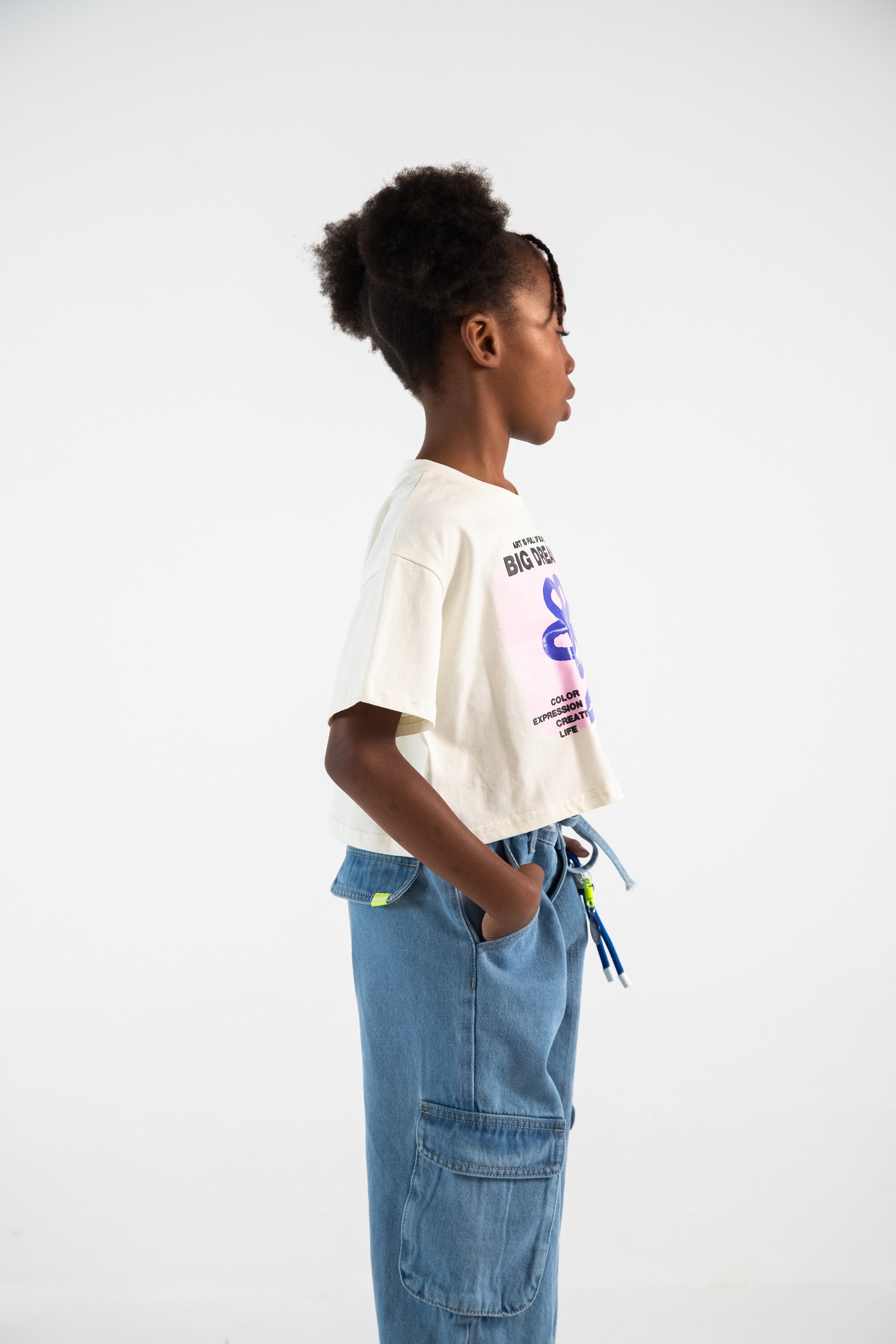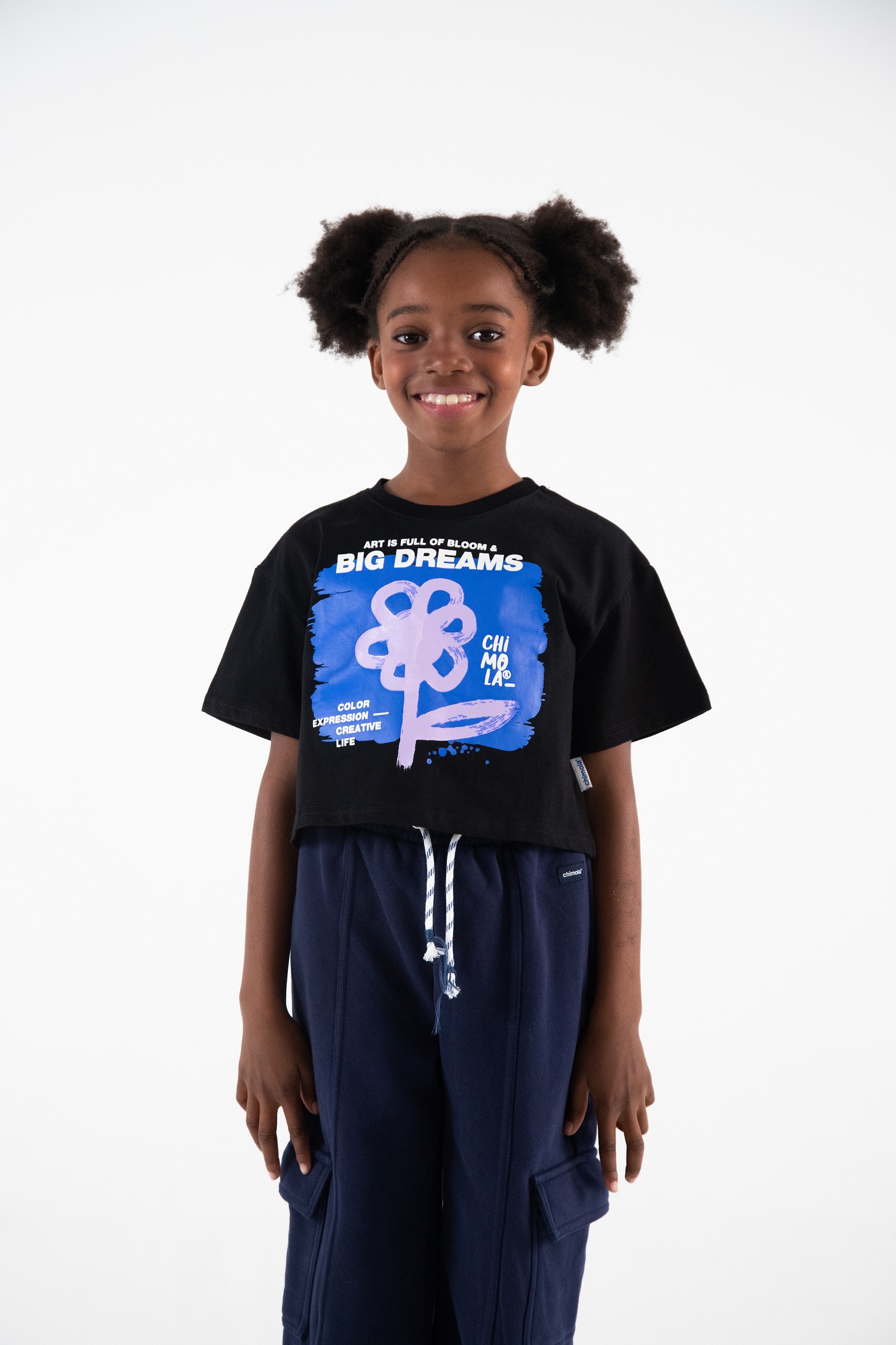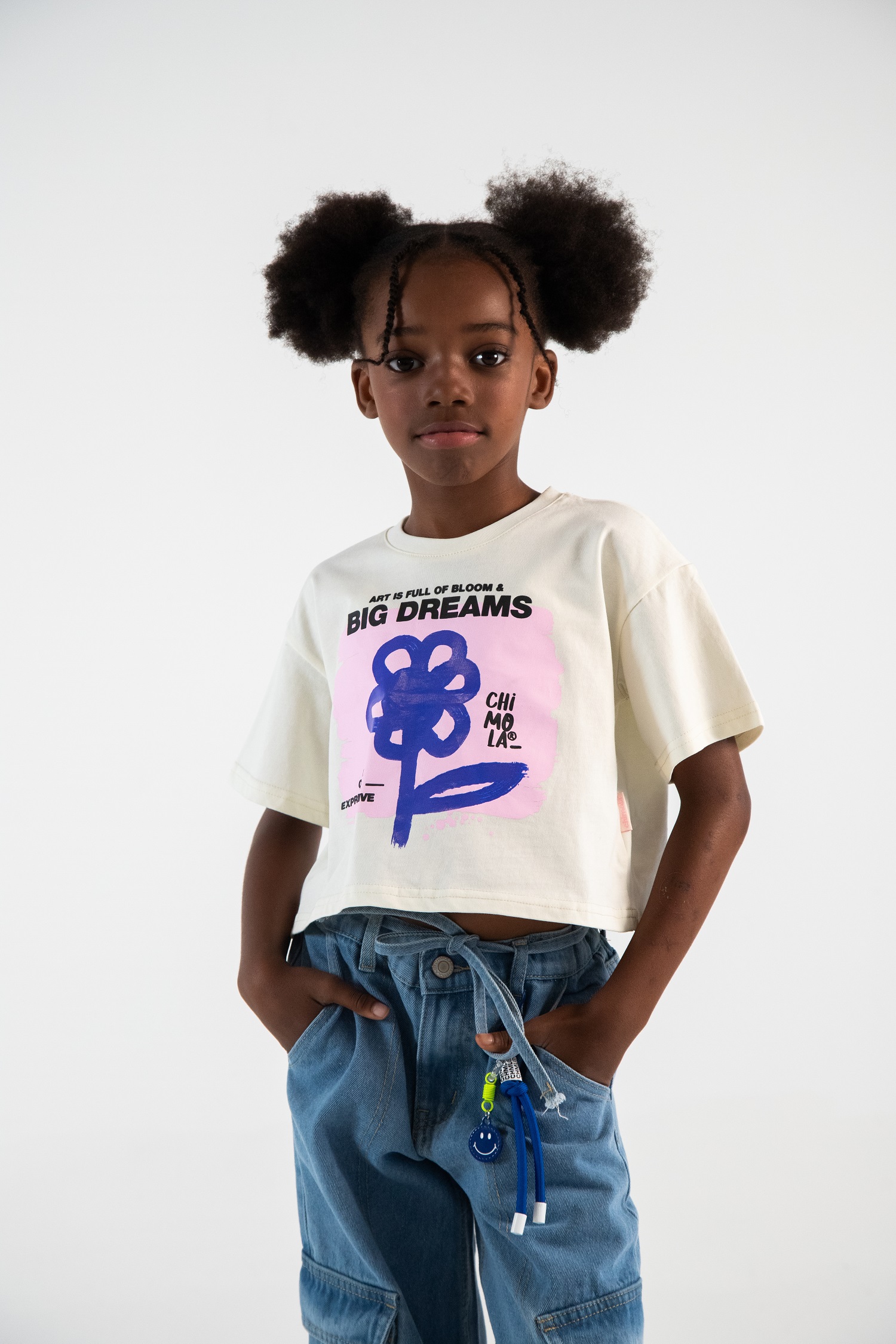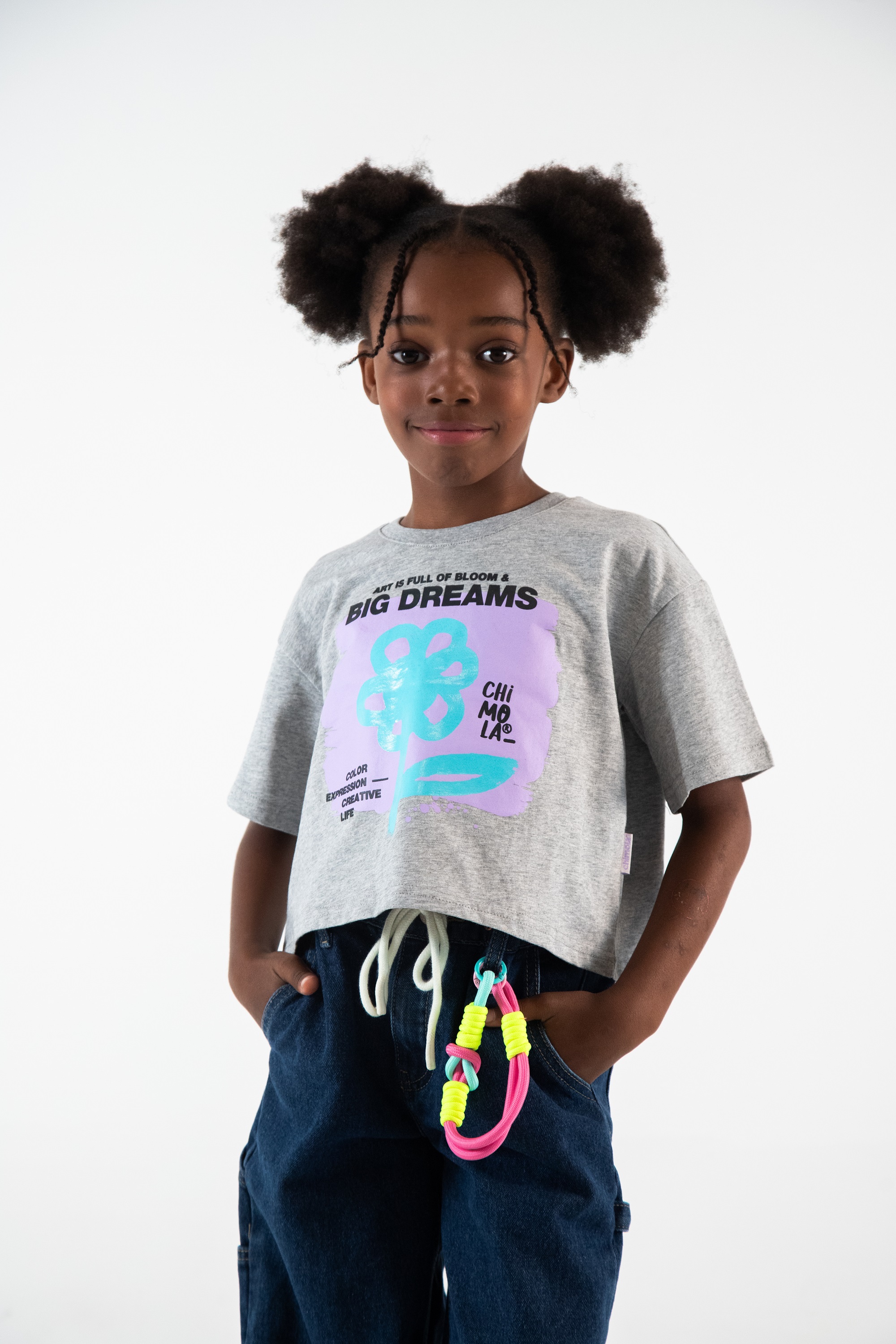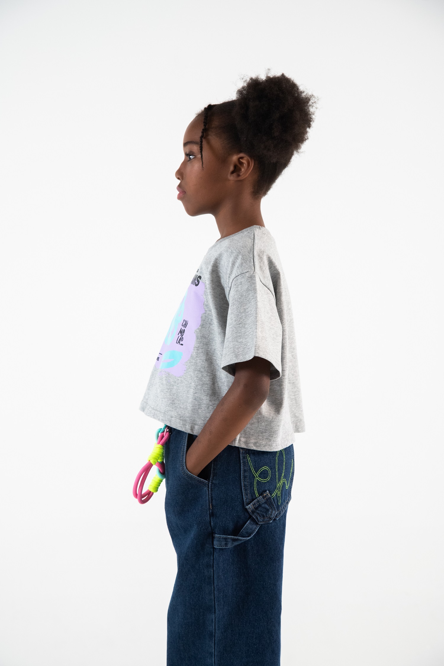 Descripción: "Remera Karly", una estampa creativa y un corte estilo "crop" que te van a hacer sentir a la moda en todo momento. Composición 100% algodón. La encontrás en blanco, gris y negro. TABLA DE TALLE: A) Largo Delantero; B) Ancho de Hombros; C) Largo de Manga. *T6: A) 36, B) 38,5, C) 13 *T8: A) 37,5 ,B) 40, C) 14 *T10: A) 39, B) 41,5, C) 15 *T12: A) 40,5, B) 43, C) 16 *T14: A) 42, B) 44,5, C) 17