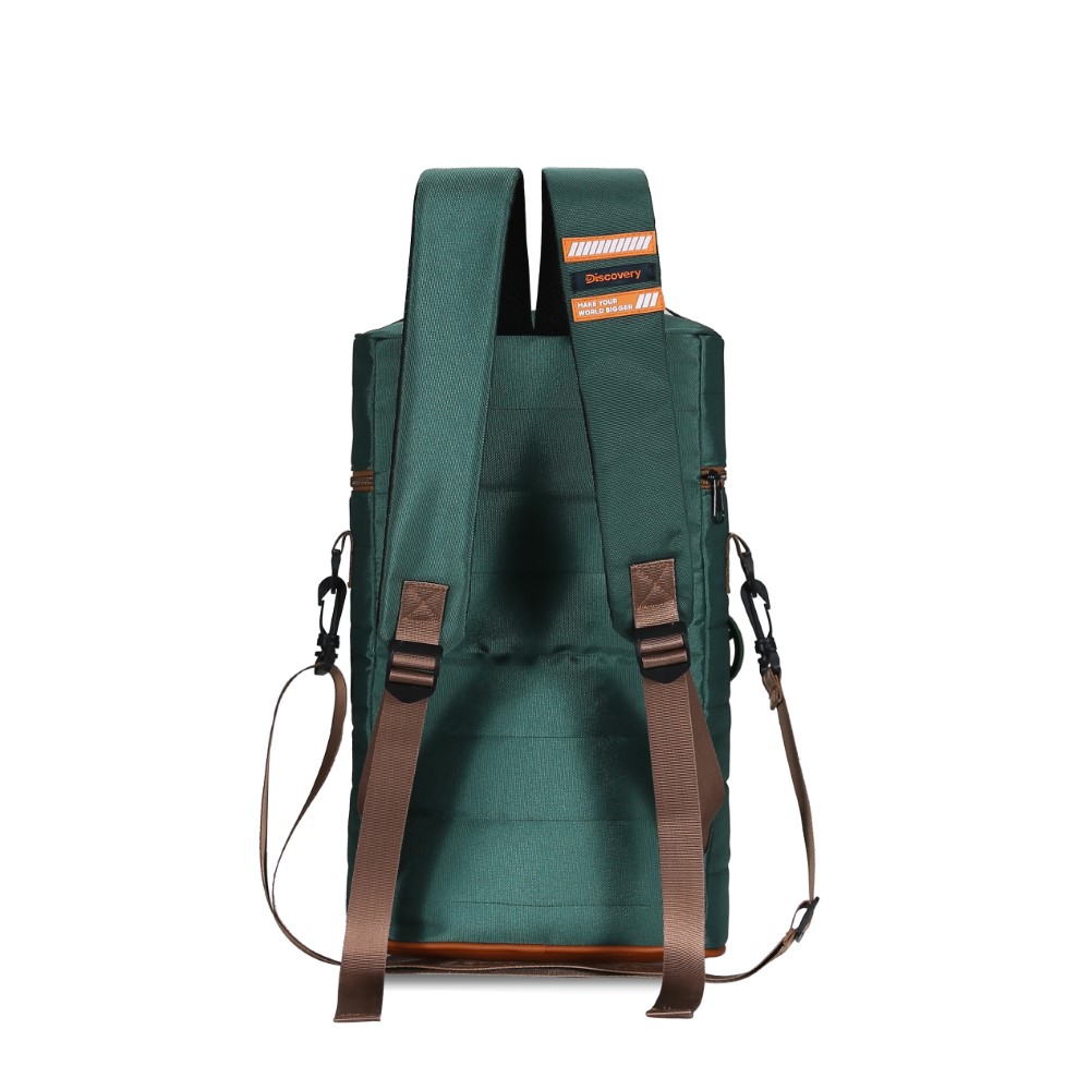 Descripción: - Capacidad para trasladar termos de hasta 1.5 Lts. - Bolsillo frontal mediano. - Confeccionada 100 % poliéster. - Interior Forrado. - Asa para llevar. - Medidas : 38 cm Alto x 24cm Ancho x 11cm Profundidad. - Tiras reforzadas ajustables con red antitranspirante. - Material resistente. - Logo de la marca y detalles en goma. - Incluye tira para llevar cruzado o como morral'.