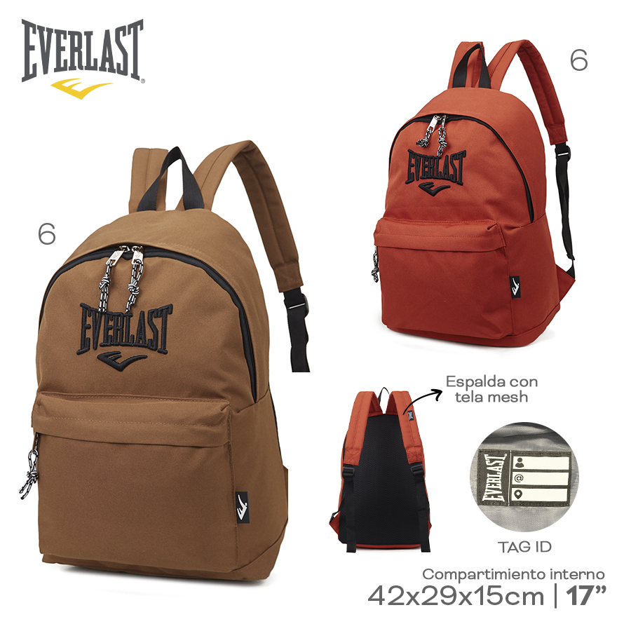 Descripción: Modelo: 22389. Material: 100% Poliester. Dimensiones (alto X ancho X profundidad) 42 X 29 X 15 cm. *Un asa de transporte. *Un bolsillo frontal. *Interior forrado con el logo de la marca. *Tiras y espalda acolchadas Air Mesh. *Dos bolsillos laterales.