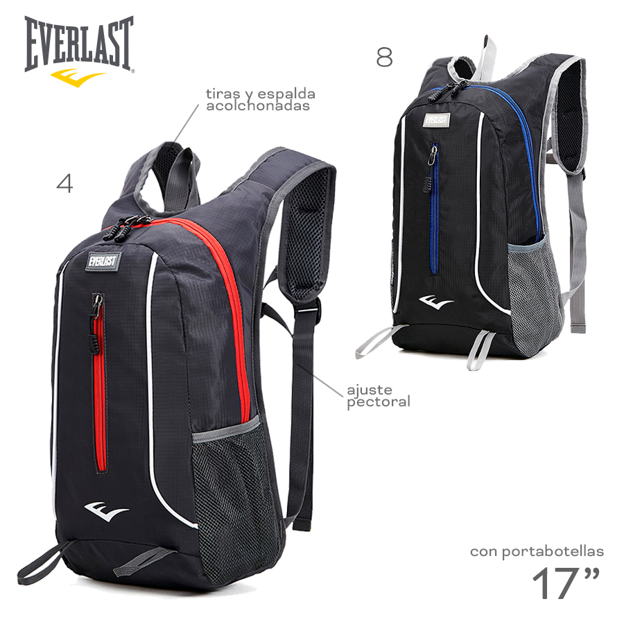 Descripción: MOCHILA RUNNING EVERLAST. · Amplio compartimiento principal. · Bolsillos frontales con Cierre. · Tiras y espalda acolchadas Air Mesh. · Bolsillos Laterales de Red. Modelo Ultra Liviano y fácil de transportar - Espalda y tiras Acolchadas Air Mesh, para el cuidado de tus hombros y espalda - Ajuste . Pectoral ¡Ideal para tus viajes o paseos!. Liviana para correr y llevar artículos indispensables. · Asa Reforzada. · Sistema Molle. · Semi-Impermeable . · Cierres doble Abertura. · Con cincha de ajuste Pectoral. · Detalle Refractario frontal. · Sistema Air Fluid. Capacidad de la mochila: 12 L.