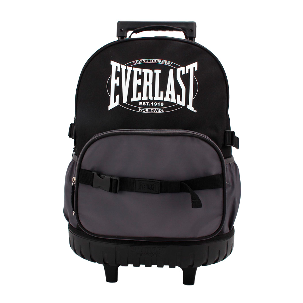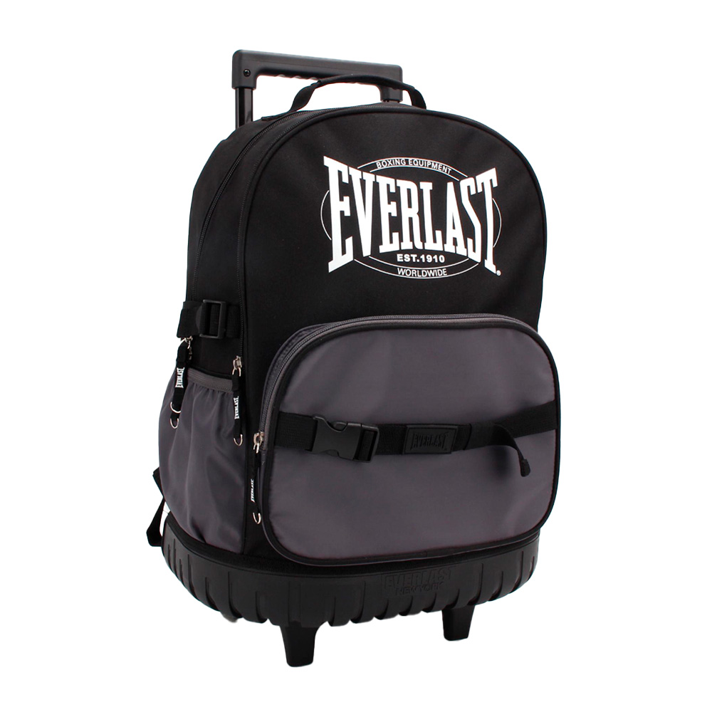 Descripción: · Doble compartimiento principal. · Confeccionado en Poliéster. · Dos ruedas de silicona reforzadas. Diseño Escolar Infantil confeccionado en materiales de primera calidad. Modelo Ultra Liviano y fácil de transportar - Tiras acolchadas para el cuidado los hombros - Confeccionado en Tela reforzada Anti Desgarre ¡Ideal para la escuela, viajes o paseos! Lleva tus cosas protegidas ¡La mochila más Cómoda! · Mochila Carro Everlast. · Bolsillo frontal con cierre. · Bolsillos Laterales de red porta botella. · Material reforzado anti desgarre. · Asa superior reforzada. · Manija regulable en altura para usar como carro. · Base rígida. · Logo Frontal Everlast. · Interior forrado. · Cierres reforzados. · Medidas 28064: Alto 45cm x Ancho 35cm x Prof. 23cm.