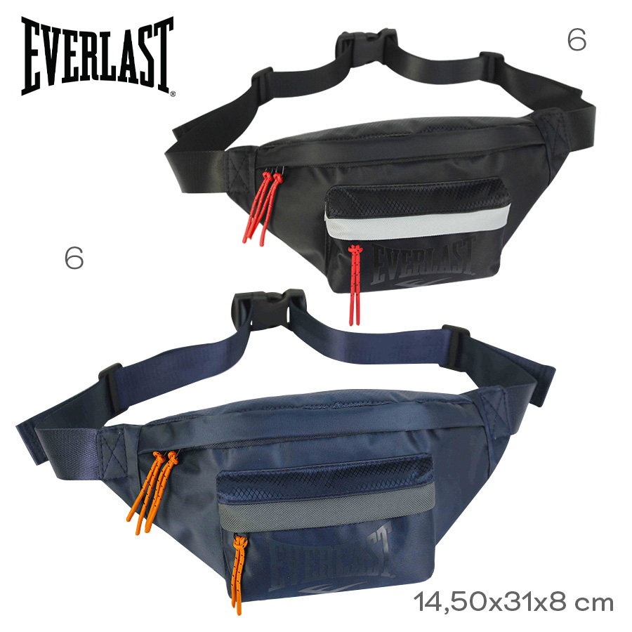 Descripción: Riñonera Everlast 27270. -Material: 100% Poliéster. -Medidas: 14.5 cm alto x 31 cm ancho x 8 cm profundidad. -Contiene: Un bolsillo principal, un bolsillo frontal, tira ajustable hasta 120 cm. -Interior forrado con el logo de la marca.