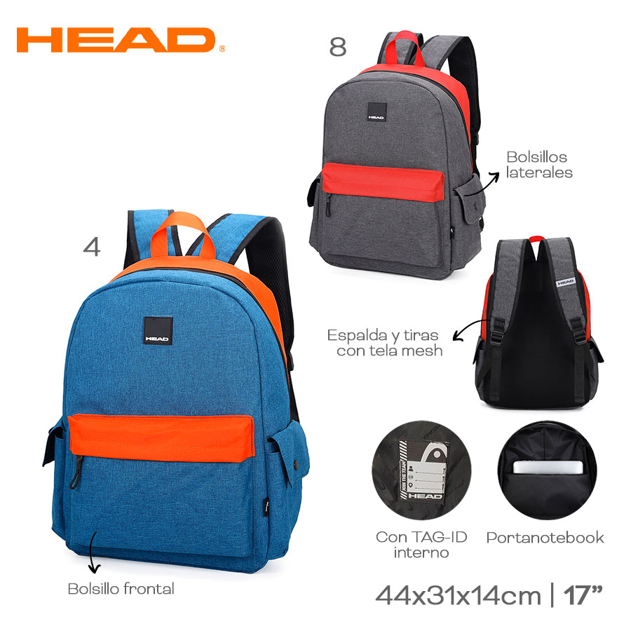 Descripción: La mochila Head Original Notebook Urbana Escolar 21959 combina estilo y funcionalidad, ideal para estudiantes y profesionales. Con una capacidad de 17 litros, ofrece espacio suficiente para libros, cuadernos y accesorios. Fabricada en nylon y polyester, es resistente y duradera. Su diseño urbano y escolar la hace versátil, e incluye un compartimento acolchado para notebook, brindando protección adicional. Con medidas de 44 x 31 x 14 cm y un peso de 1 kg, es ligera y cómoda de llevar. Además, cuenta con un bolsillo para botella para mayor practicidad. Aunque no es impermeable, su resistencia la hace confiable en cualquier clima.
