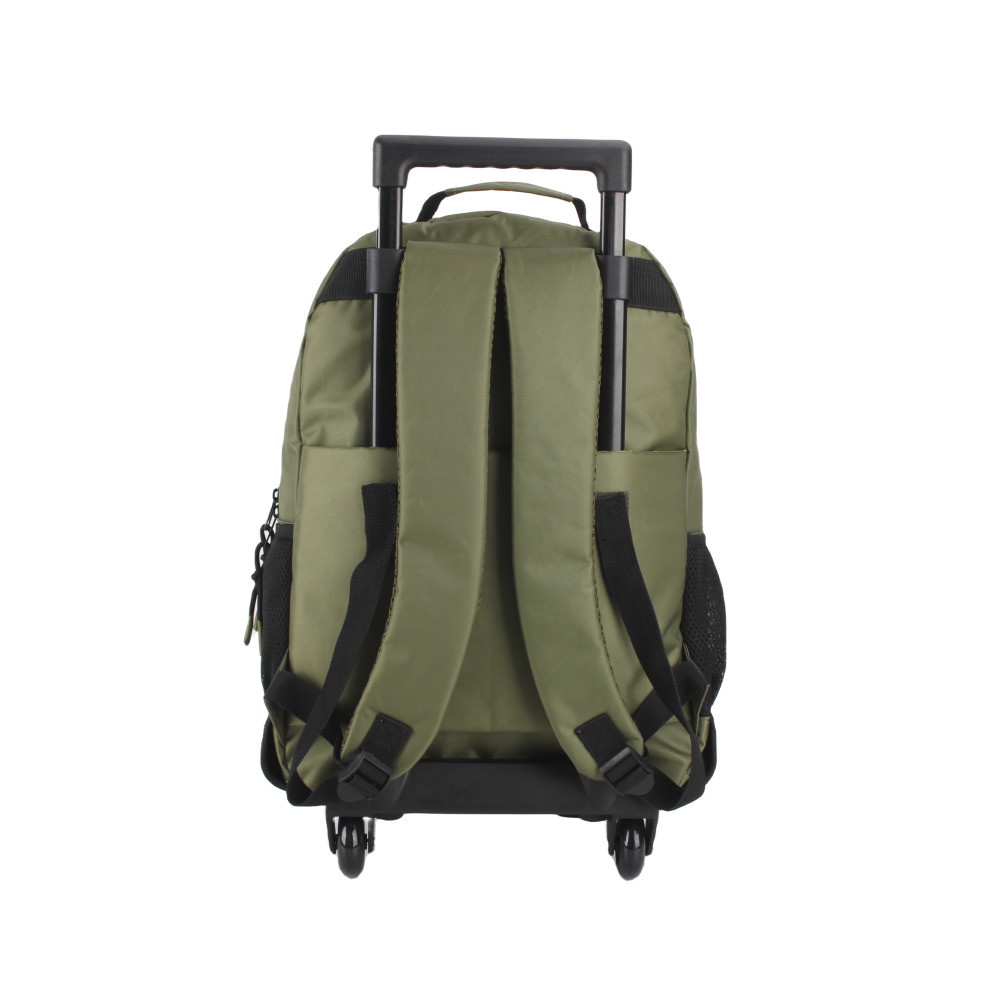 Descripción: La Mochila Con Carro Head es la compañera ideal para la rutina escolar. Diseñada con un espacioso interior, cuenta con 2 divisiones principales que permiten organizar los libros y cuadernos de manera eficiente. Además, posee 2 bolsillos laterales de red perfectos para llevar botellas de agua o pequeños accesorios. El bolsillo largo frontal es ideal para guardar objetos que requieren acceso rápido. Su base rígida asegura una estructura firme, mientras que las ruedas de silicona facilitan su transporte sin esfuerzo. Las tiras con Air Mesh proporcionan comodidad al llevarla en la espalda. Fabricada en poliéster, esta mochila verde modelo 27702 no es a prueba de agua, pero su diseño y funcionalidad la hacen perfecta para el día a día escolar. Con unas medidas aproximadas de alto 42 cm, ancho 32 cm y profundidad 17 cm, es una opción práctica y duradera para estudiantes de todas las edades.