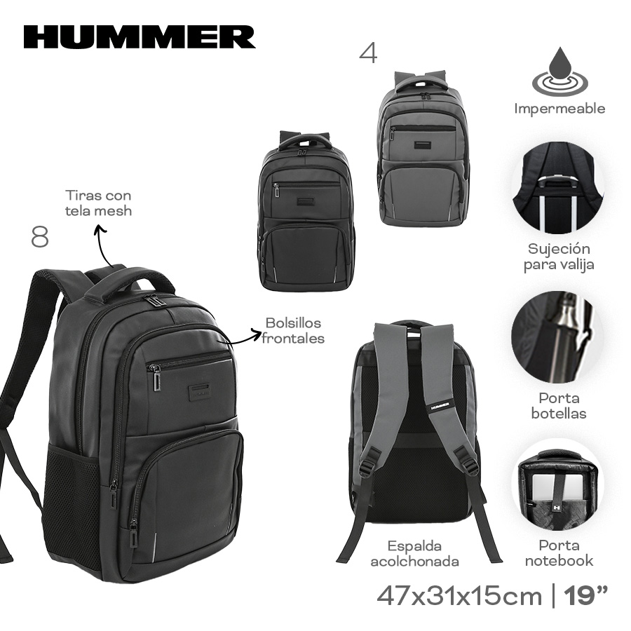 Descripción: Cuenta con 2 compartimientos grandes y un espacio para tu notebook, para mantener todo organizado. Tiene 2 bolsillos frontales pequeños y 2 bolsillos para botellas. Su espalda con sistema Airmesh ofrece mayor comodidad y ventilación. Incluye faja para valija para facilitar viajes. Medidas aproximadas: 47 cm de alto, 31 cm de ancho y 15 cm de profundidad.