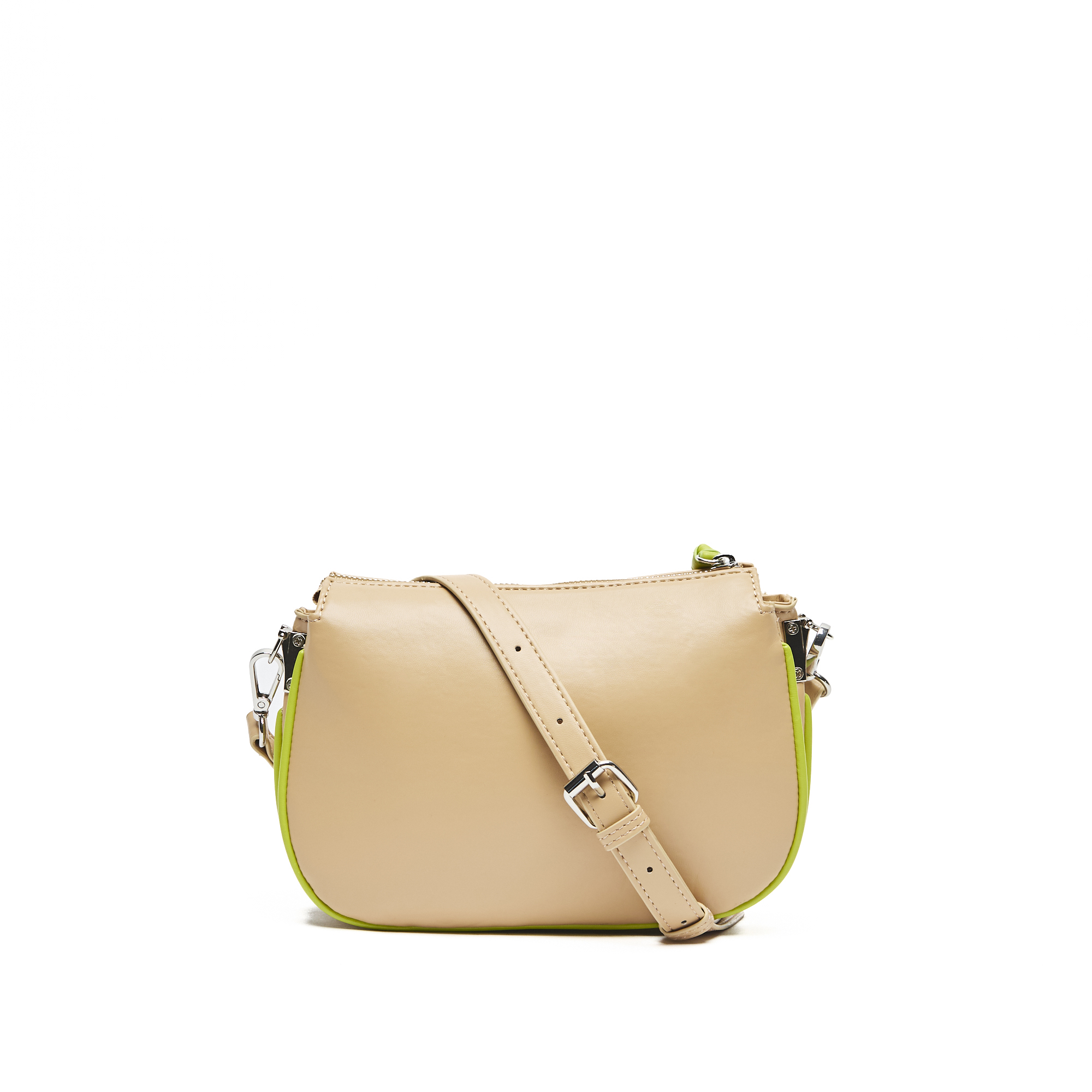 Descripción: Bandolera de PU liso con vivos y tiracierre a contratono. Cuenta con 3 divisiones y correa larga regulable.