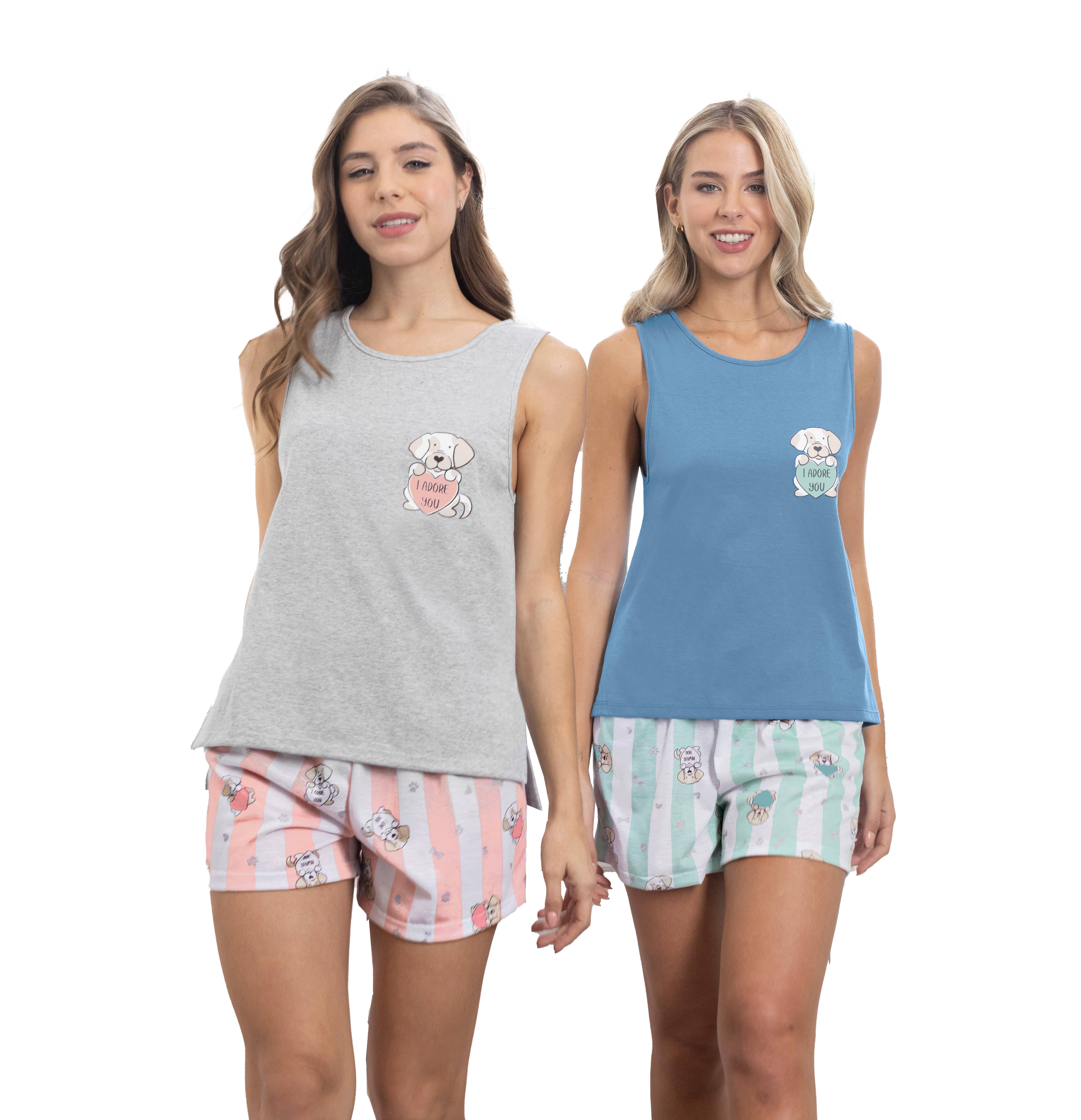 Conjunto de musculosa y short confeccionado en suave algodón estampado perritos, brindando un look juvenil y encantador.