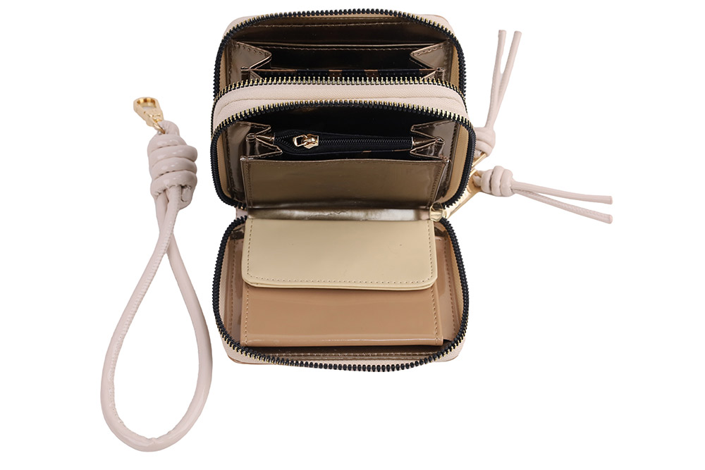 Descripción: Brillo, diseño y funcionalidad en un solo accesorio. La billetera chica Sienna, confeccionada en ecocuero con efecto charol, aporta un toque moderno y sofisticado a cualquier look. Su estructura rígida y los recortes geométricos en tres colores perfectamente combinados la convierten en una pieza única que no pasa desapercibida. Con doble compartimento, te permite organizar todo lo que necesitás de manera práctica y elegante. ¡Un must-have para quienes buscan estilo sin esfuerzo! MEDIDAS: 12 x 3,5 x 10,5 MATERIAL: CUERPO: 100% PU FORRERIA: 20% ALGODÓN / 80% POLYESTER