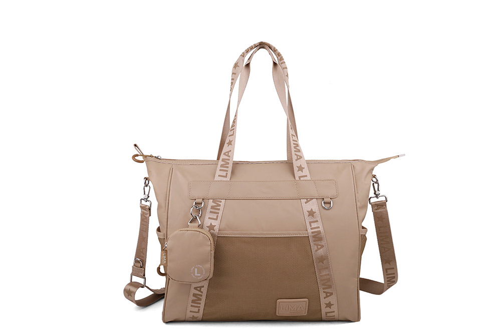 Descripción: El bolso Nova de nuestra línea Active será el aliado perfecto de quien tiene una vida muy activa, necesita estar organizada y siempre arreglada pero con mucho estilo por su diseño juvenil, versátil y funcional. Confeccionado en Nylon súper resistente estilo Uniqlo. Cuenta con un compartimento interior acolchado y seguro, ideal para llevar lo que necesites y varios bolsillos exteriores de "Mesh" que le permitirán respirar y mantener sus pertenencias siempre secas. Ideal para llevar al gimnasio, un paseo de fin de semana o para el día a día. Ademas cuenta con un llavero y una minibag que te permite tener tus llaves siempre a mano. ¡No esperes más y consigue el tuyo ahora! Medidas: 40x13x36.5 Materiales: CUERPO: 100% NYLON, FORRERIA: 100% ALGODÓN