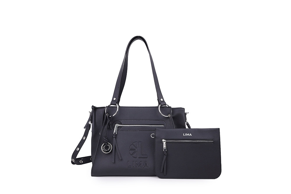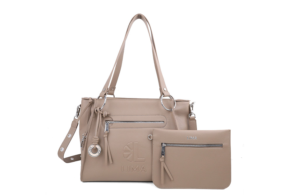 Descripción: Este shopper de PU de efecto graneado es clásico, liviano y de diseño geometico y minimalista, destacando el logo de la marca en embossed" y jugando con tachas planas que le dan un toque único y llamativo es el accesorio perfecto para complementar cualquier outfit. Su tamaño XL es ideal para quién tiene que llevar muchas cosas en su día a día y busca combinar estilo y funcionalidad en un sólo producto. El bolsillo principal cuenta con cierre, proporcionando un espacio amplio para guardar tus objetos personales de forma segura. En el interior, encontrarás un bolsillo pequeño para tener un acceso seguro a tus cosas más importantes. Además, cuenta con un bolsillo de seguridad en la parte delantera ideal para guardar tus objetos de valor de forma discreta y protegida. Ya sea para ir al trabajo, de compras o salir con amigos, esta cartera shopper te acompañará en todas tus actividades con estilo y comodidad. MEDIDAS: 34.5 x 18 x 26 cm MATERIALES: CUERPO: 100% PU // FORRERIA: 100% POLYESTER