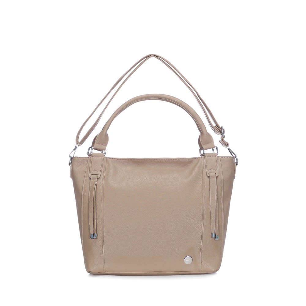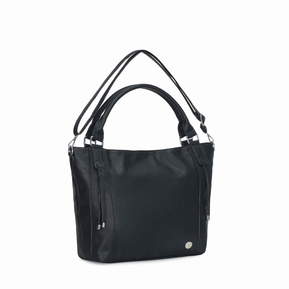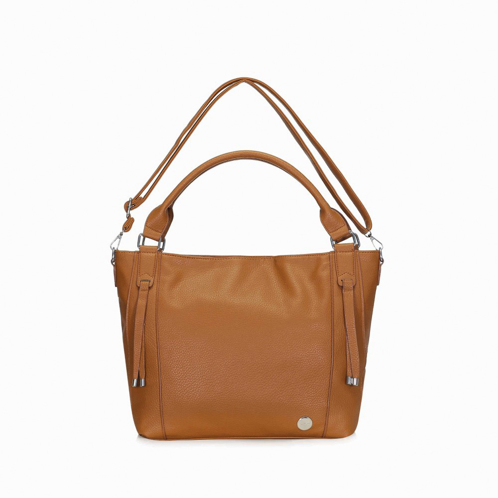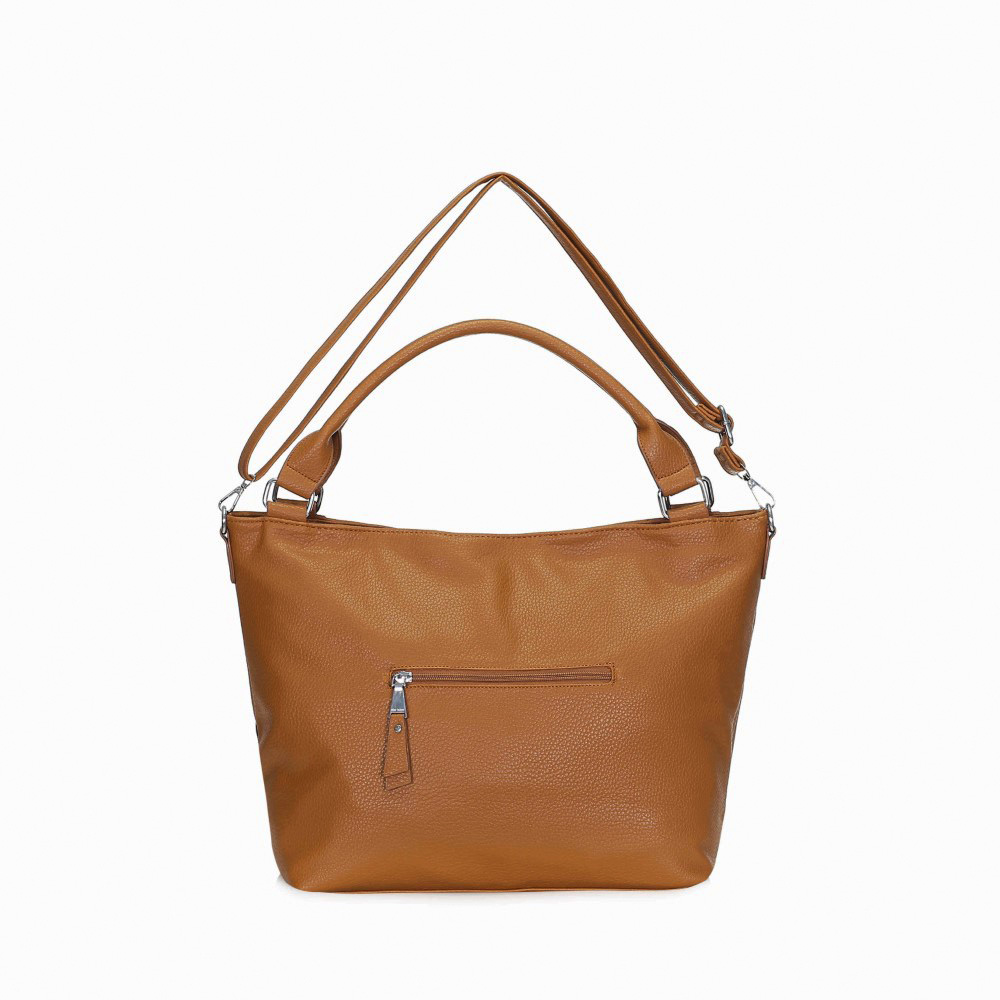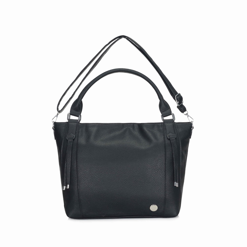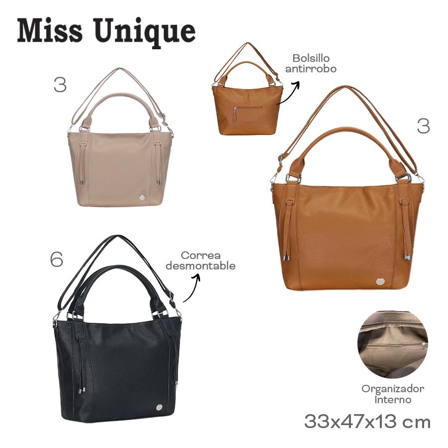 Descripción: Material: 100% PU. Contiene: Un bolsillo principal, un bolsillo interno con cierre, un bolsillo interno organizador, un bolsillo posterior, una tira y dos asas de transporte.