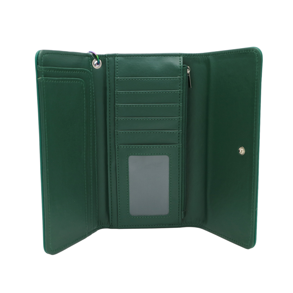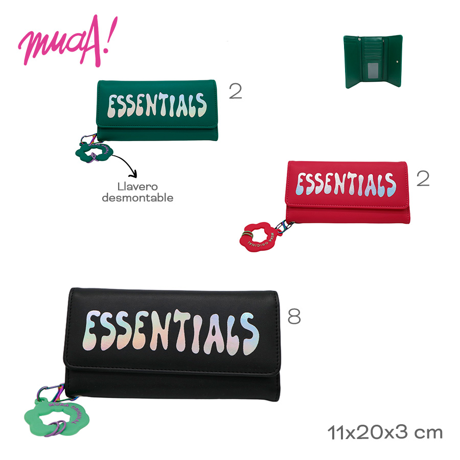 Descripción: Material: 100% PU. -Medidas: 11cm alto x 20cm ancho x 3cm profundidad. -Contiene: Bolsillo interno con cierre, cinco compartimientos organizadores y seis para tarjetas. -Incluye llavero.