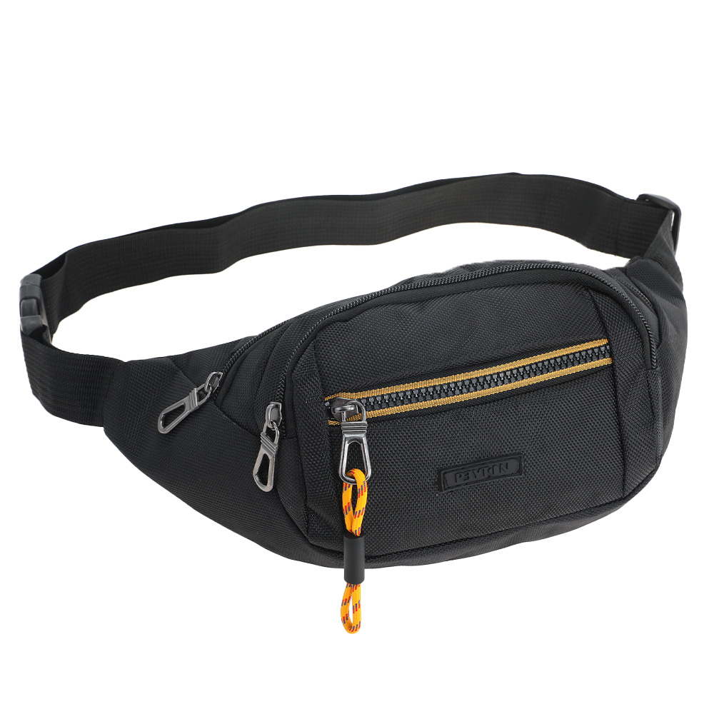 Descripción: -Material: 100% Poliéster. -Medidas: 15 cm de alto x 30 cm de ancho x 4 cm de profundidad. -Contiene: Un bolsillo principal, dos bolsillos frontales, un bolsillo posterior, tira ajustable hasta 110cm aproximadamente.