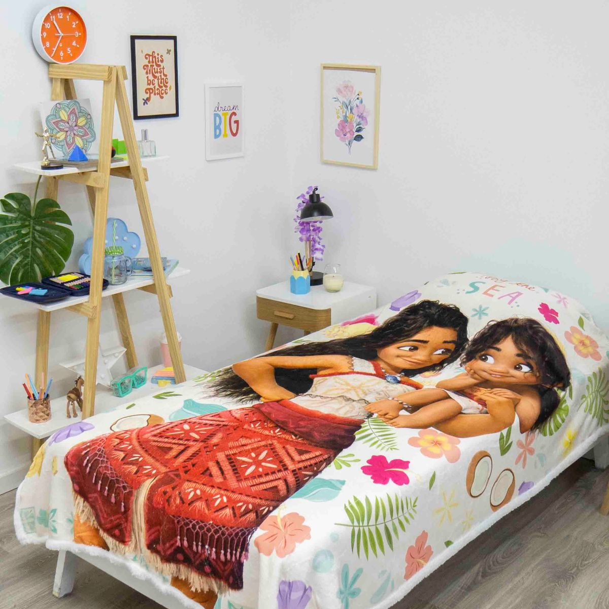 Descripción: Frazada Corderito 1 1/2 plaza Moana 2. Frazada infantil excepcionalmente suave, calentita y acogedora para que los chicos se sientan súper abrigados en las noches más frías con su personaje favoritos de Moana. Máxima suavidad y confort al tacto en el frente y el reverso de corderito que mantiene el calor. Licencia oficial Disney. Medidas: 155 x 220 cm. Para colchón de: Ancho: 90 cm. Largo: 190 cm. Alto: 20 cm. Composición: 100% Poliéster.