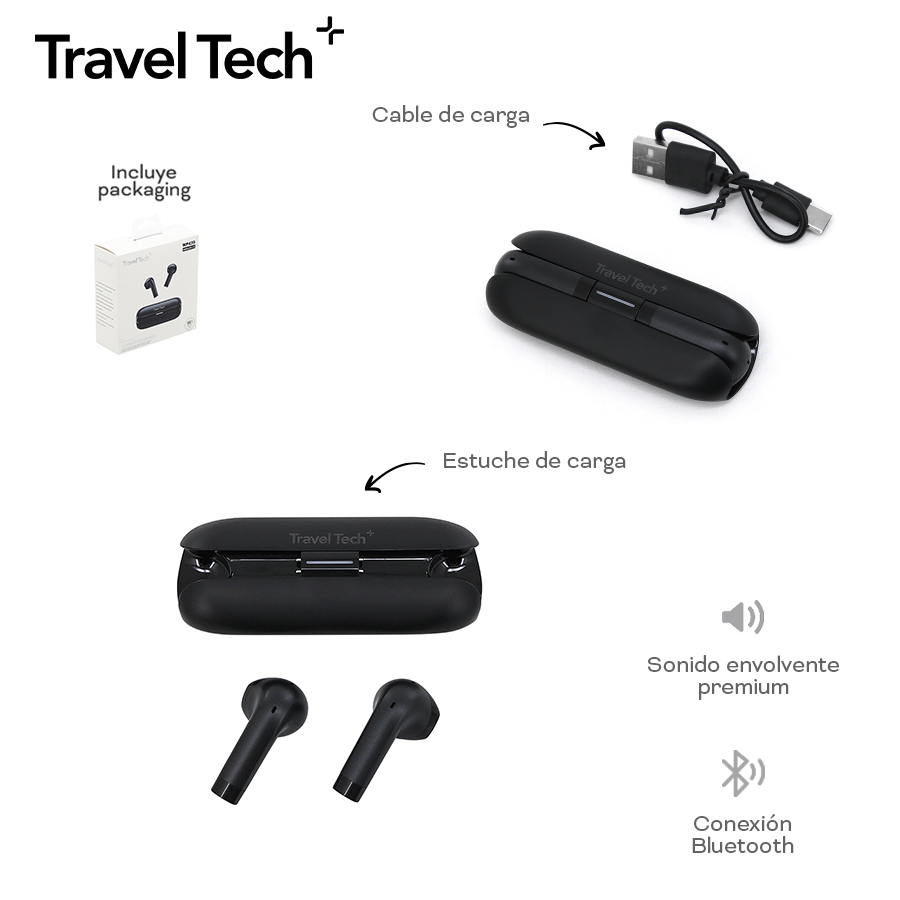 Descripción: Estuche de carga, cable USB-C a USB, Sonido envolvente, conexión bluetooth, incluye packaging. Sonido envolvente estereo premium altavoces metalicos y dinamicos. Decodificador de altura de diafragma para un sonido mas brillante. *Version de Bluetooth 5.3. *Distancia de transmision Menor o igual a 10m. *Capacidad de la bateria de los auricualres 35mAh. *Capacidad de la bateria del compartimiento de carga 200mAh. *Tiempo de funcionamiento 4Hrs. *Temperatura de trabajo -10ºC -55C. *Cordon portable.