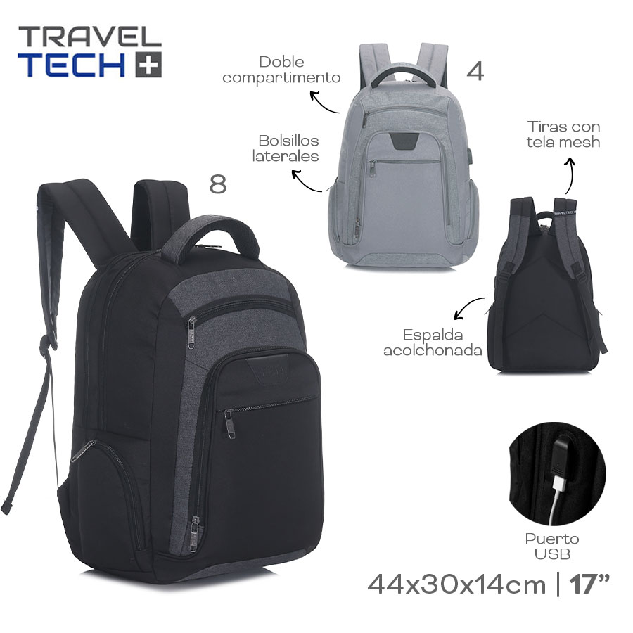 MOCHILA PORTANOTEBOOK 17P REFORZADA Y CON USB DE TRAVEL TECH