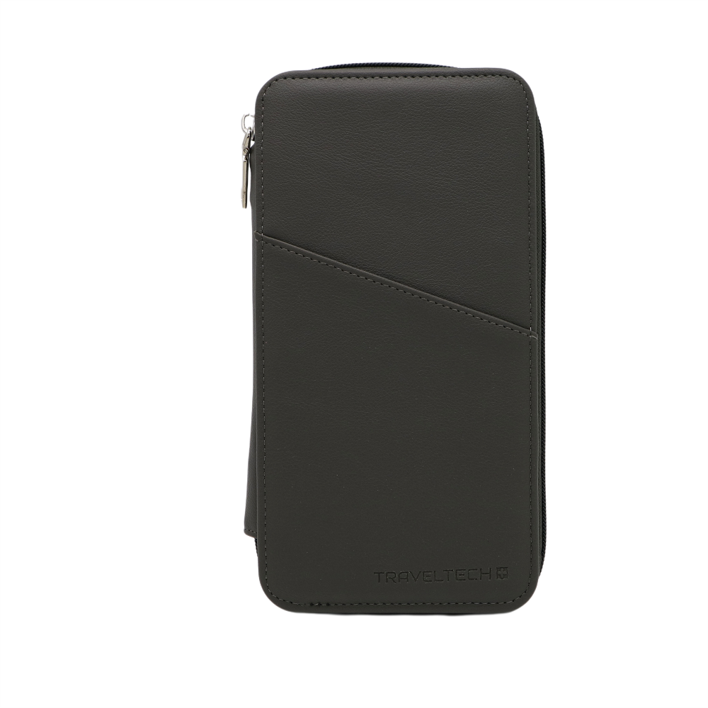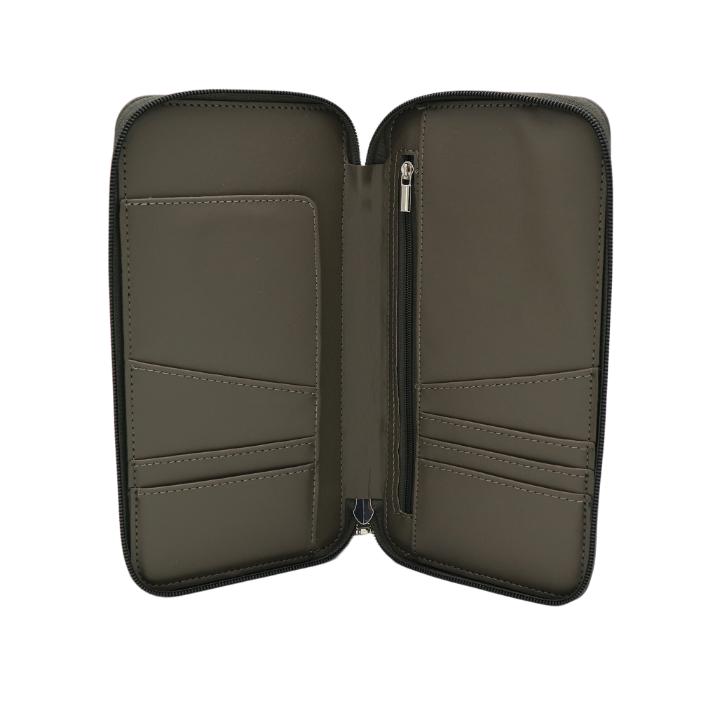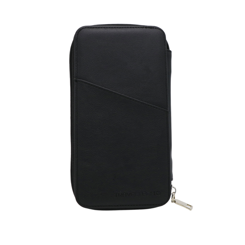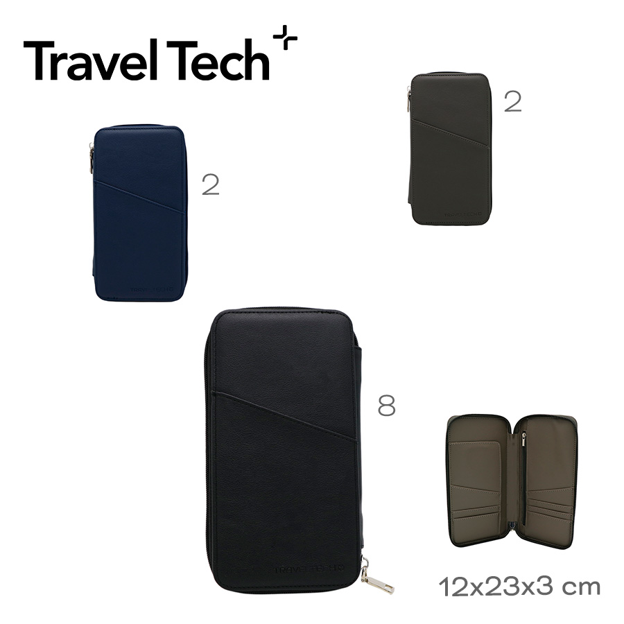 Descripción: Porta Pasaporte Travel Tech 28418. Material: 100% Cuero Pu. Dimensiones (alto x ancho X profundidad) 23 X 12 X 3 cm. *Diez compartimientos varios internos.