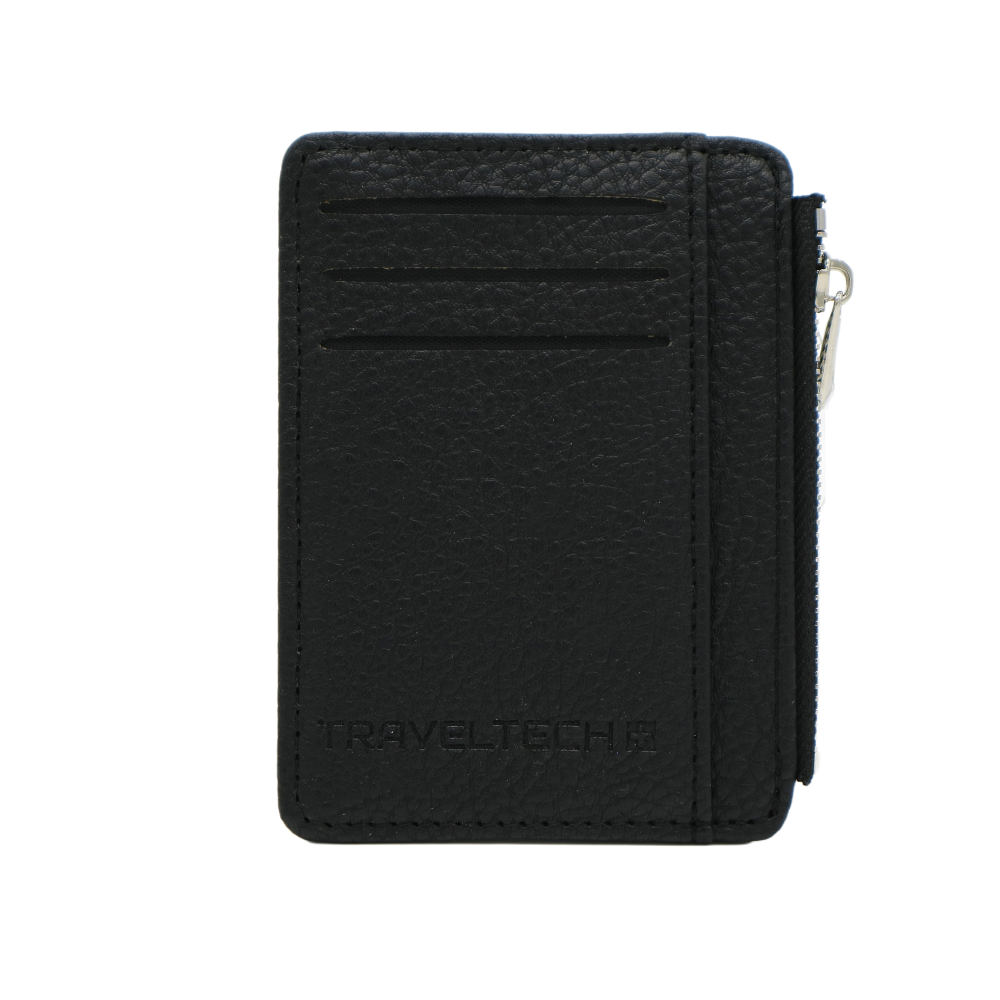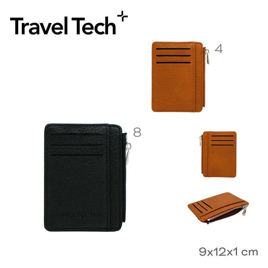 Descripción: Tarjetero Travel Tech 28419. Material: 100% Cuero Pu. Dimensiones (alto x ancho X profundidad) 12 X 9 X 1 cm. *Tres compartimientos en la parte frontal y un compartimiento con cierre.