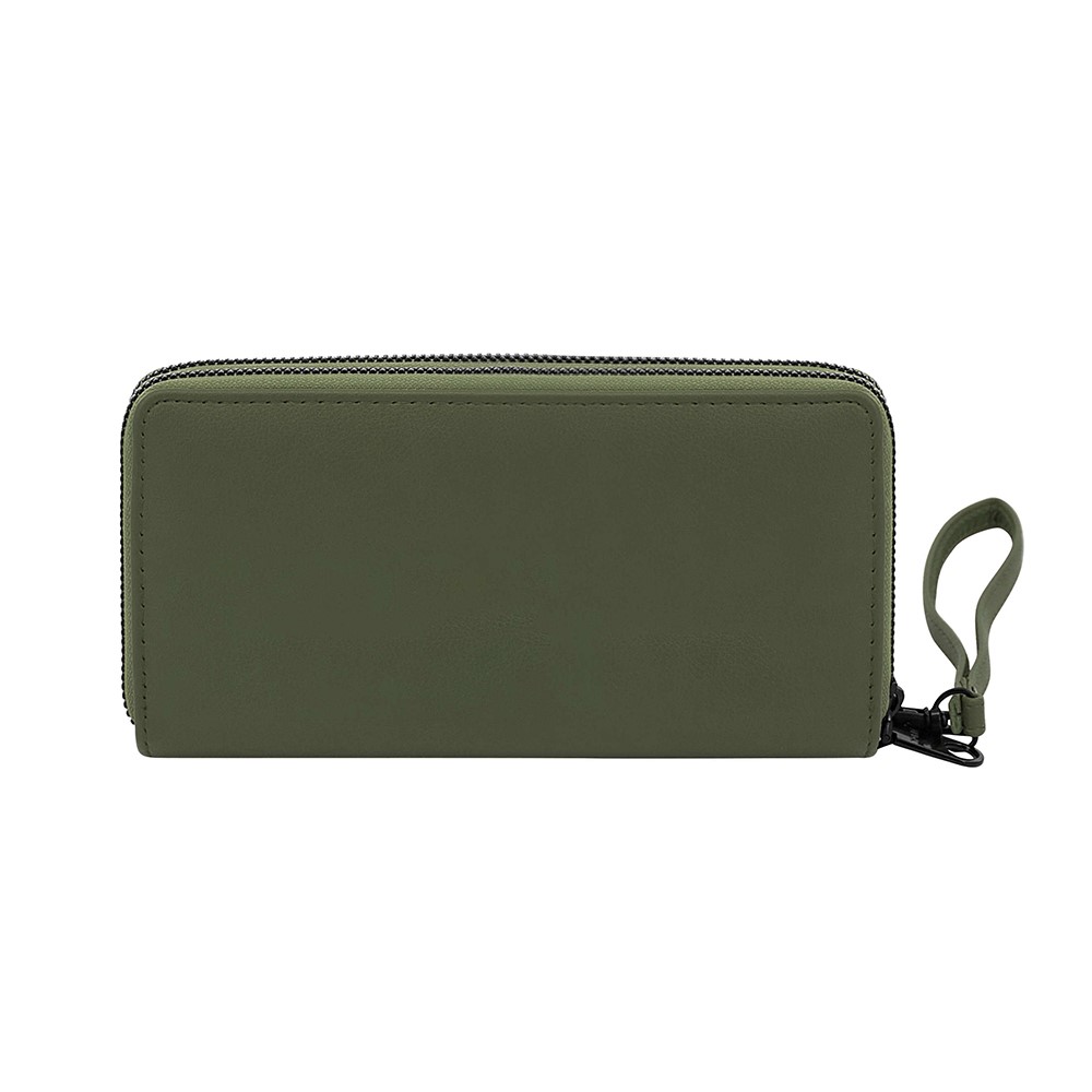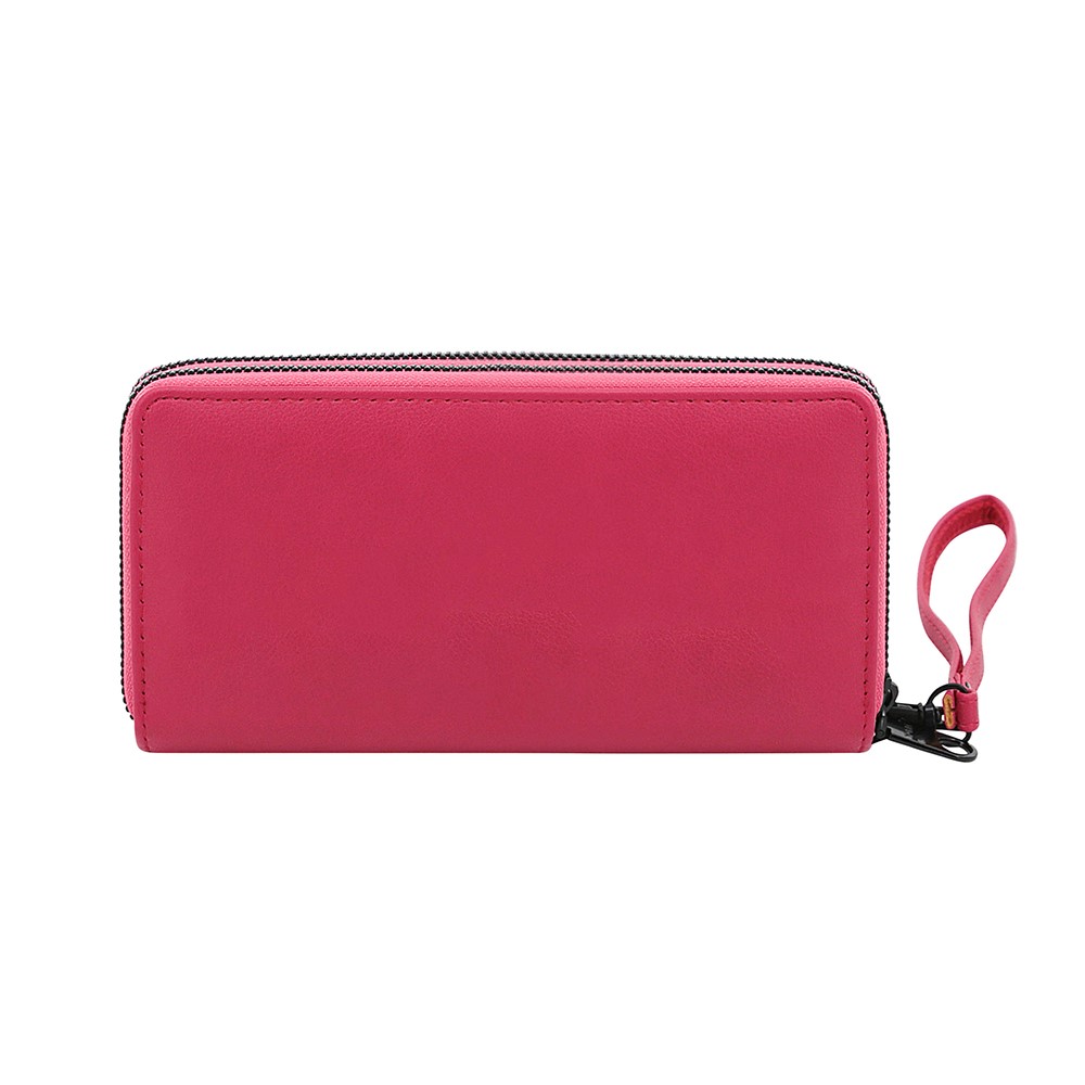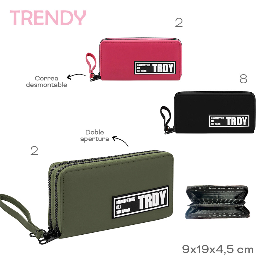 Descripción: -Medidas: 9,5 cm Alto x 19 cm Ancho x 4 cm Profundidad. -Material: 100% PU. -Contiene: Dos bolsillos principales, doce compartimientos para tarjetas, cinco para billetes y/o moneda, tira de transporte.