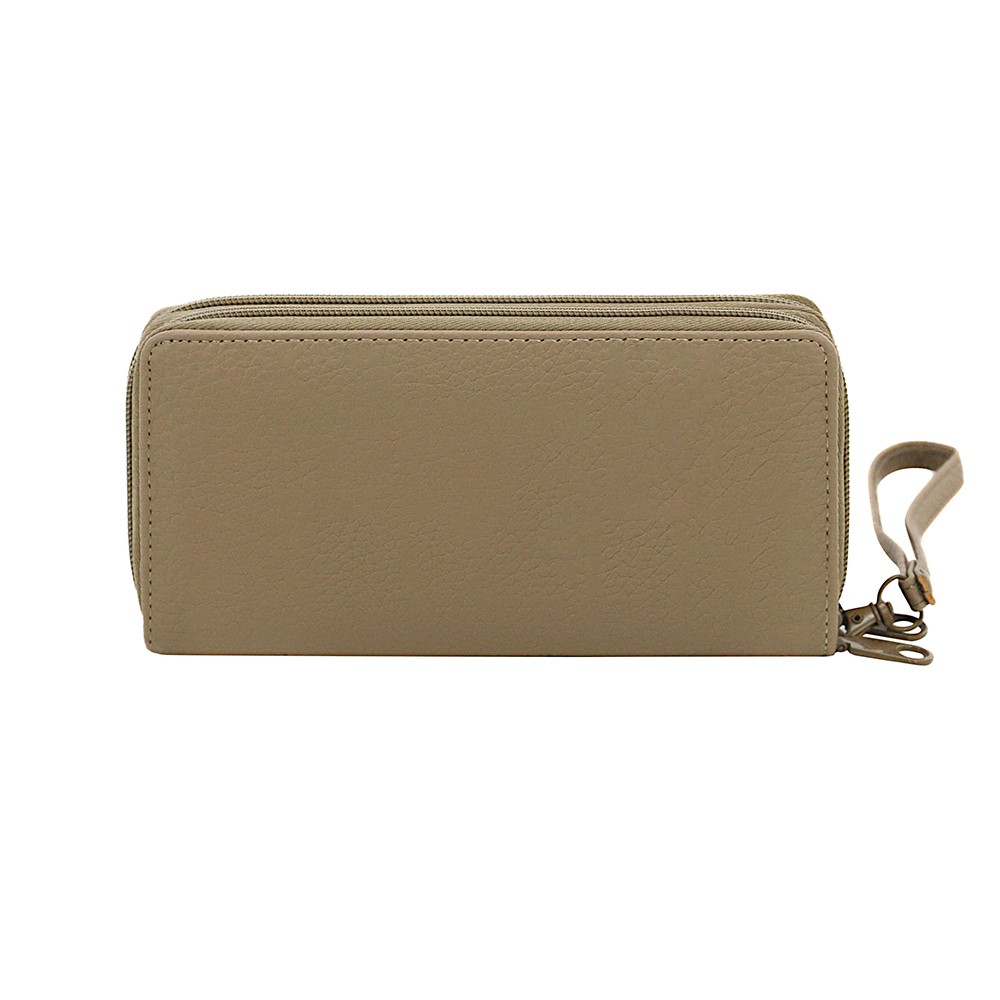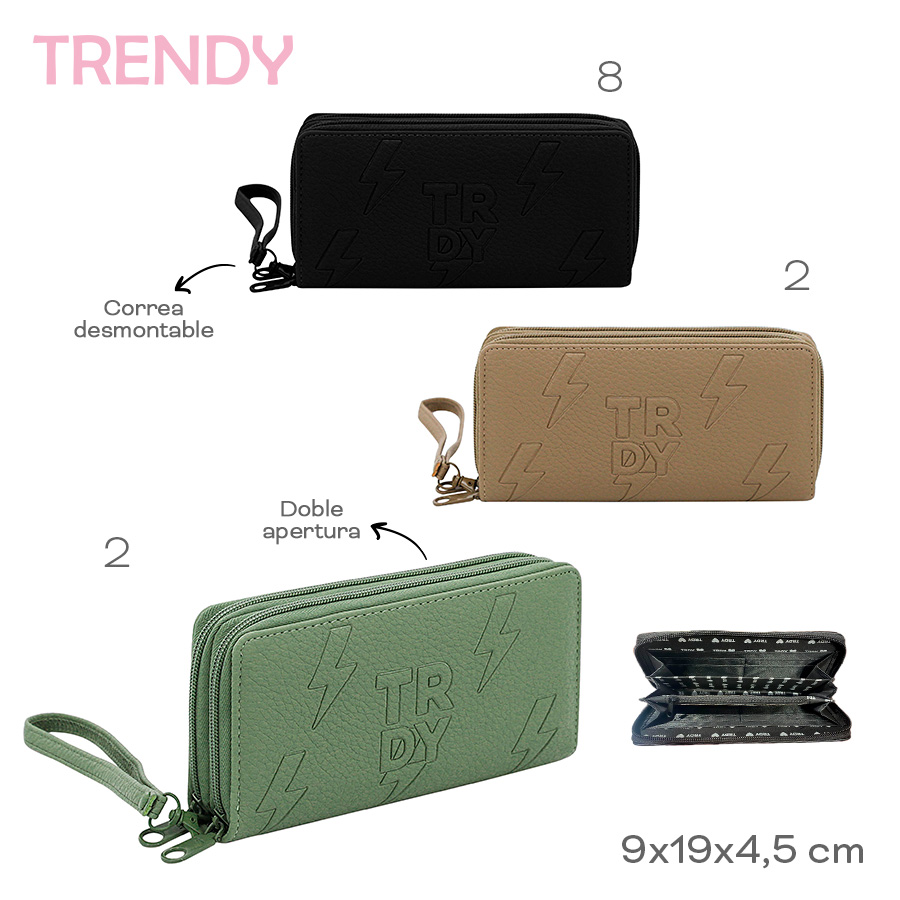 Descripción: Medidas: 9 cm Alto x 19 cm Ancho x 4,5 cm Profundidad. Material: 100% PU. Contiene: Dos bolsillos principales, doce compartimientos para tarjetas, cinco para billetes y/o moneda, tira de transporte.