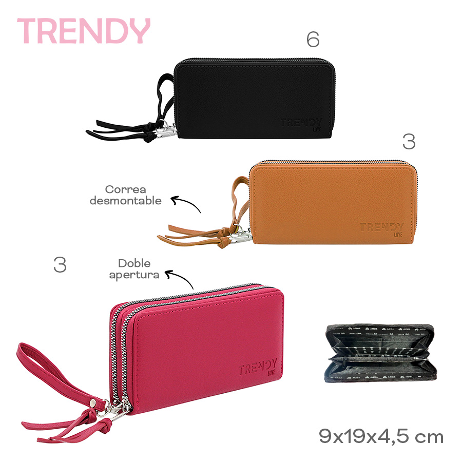 Descripción: Medidas: 9 cm Alto x 13,5 cm Ancho x 2 cm Profundidad. Material: 100% PU. Contiene: Un bolsillo principal, cuatro compartimientos para tarjetas, cuatro para billetes y/o moneda.