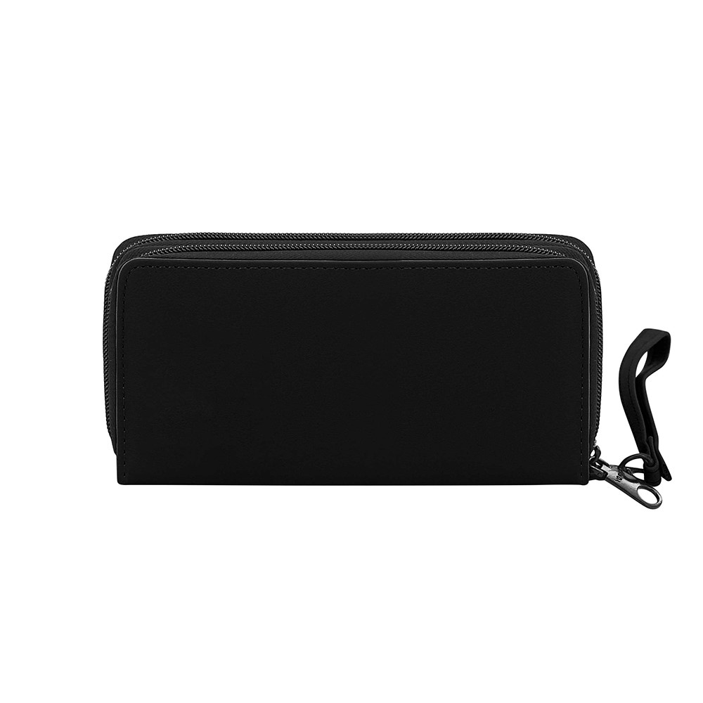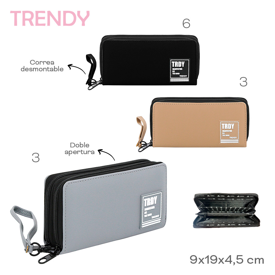 Descripción: -Medidas: 9 cm Alto x 19 cm Ancho x 4,5 cm Profundidad. -Material: 100% PU. -Contiene: Dos bolsillos principales, doce compartimientos para tarjetas, cinco para