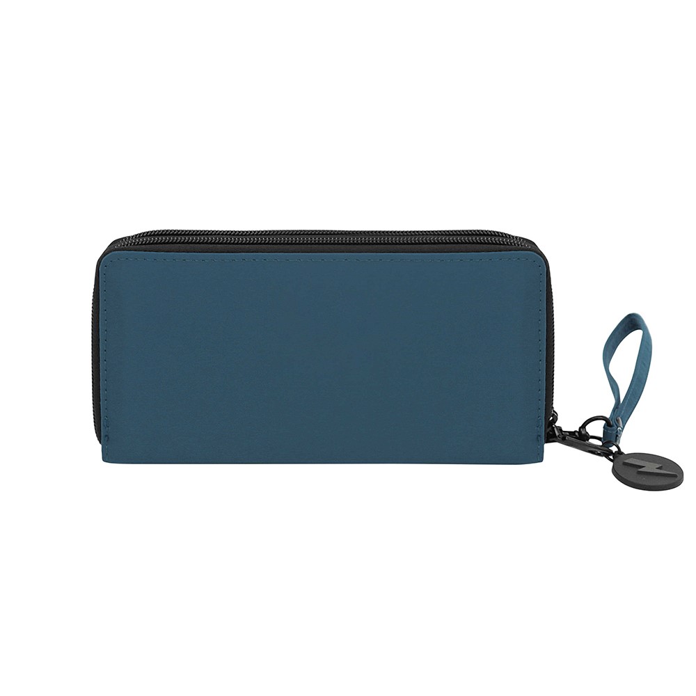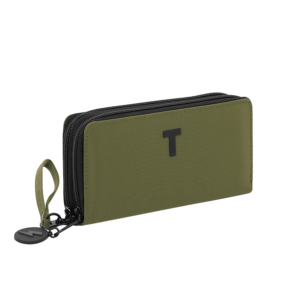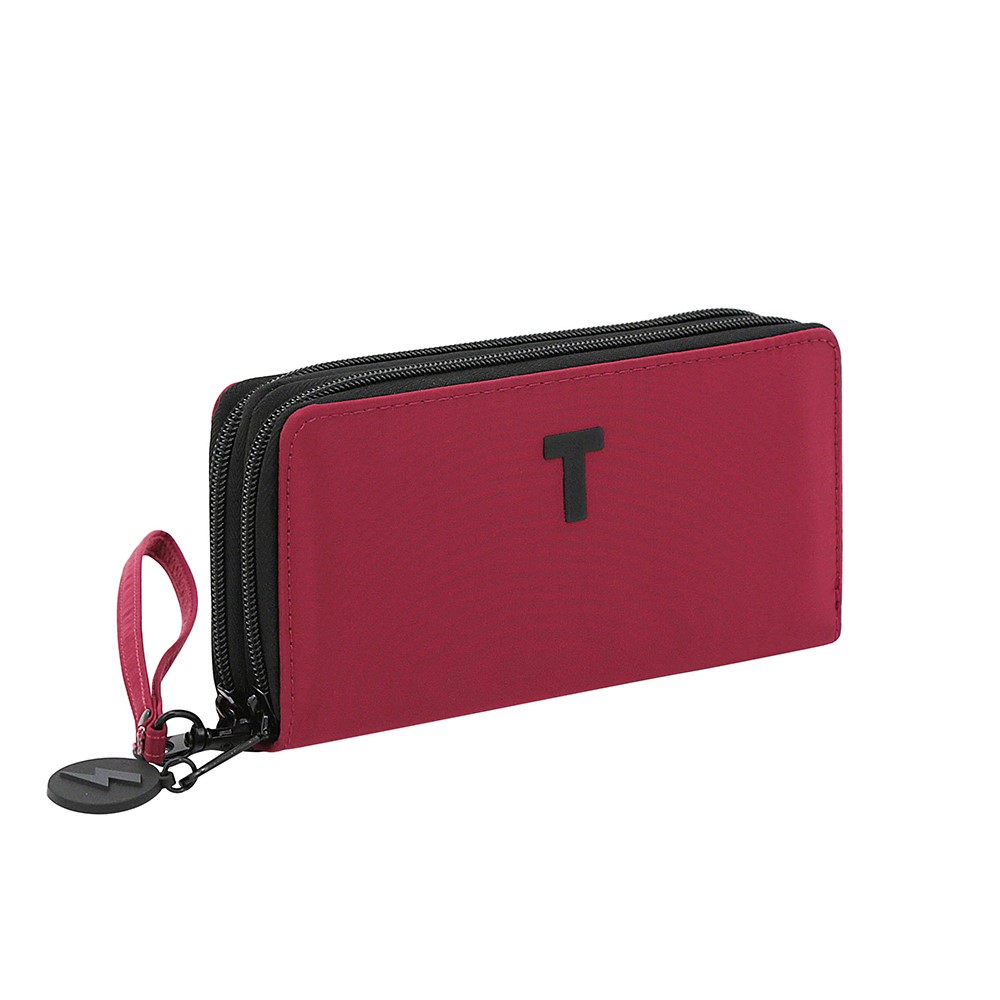 Descripción: Medidas: 9 cm Alto x 19 cm Ancho x 4,5 cm Profundidad. Material: 100% Poliéster. Contiene: Dos bolsillos principales, doce compartimientos para tarjetas, cinco para billetes y/o moneda, tira de transporte.