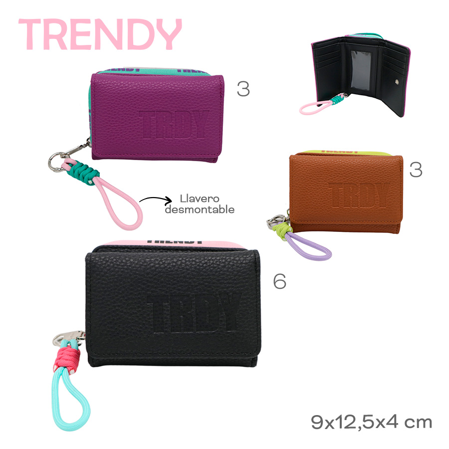 Descripción: Billetera con llavero desmontable. Medidas: 9 cm de alto x 12,5 cm de largo x 4 cm de prof. Marca: TRENDY.