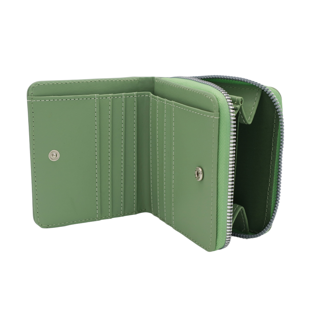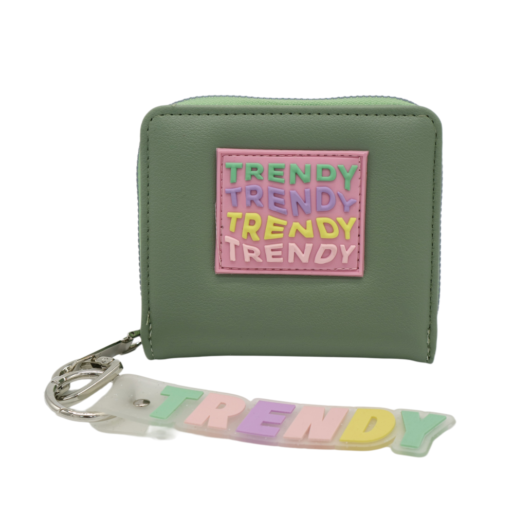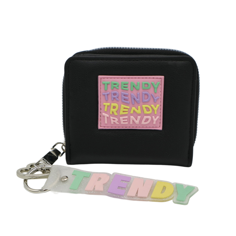 Descripción: Billetera Trendy 28352. -Material: 100% PU. -Medidas: 10 cm Alto x 11 cm Ancho x 3.5 cm Profundidad. -Contiene: Un bolsillo principal de cierre con dos compartimientos organizadores, ocho compartimientos para tarjetas y uno para billetes. -Incluye un llavero.