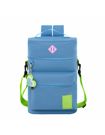 Descripción: Bolsillo frontal, correa desmontable, llavero desmontable, tiras con tela mesh, cap. termos 1,5L 37 cm x 20 cm x 12 cm